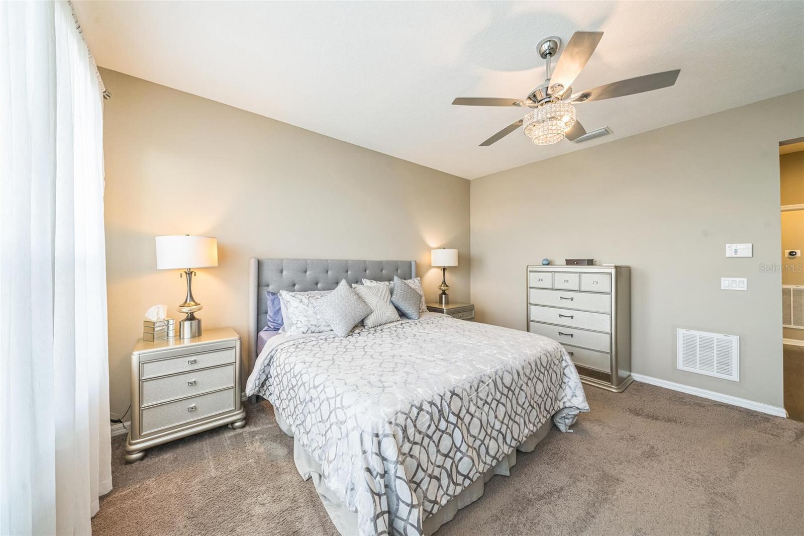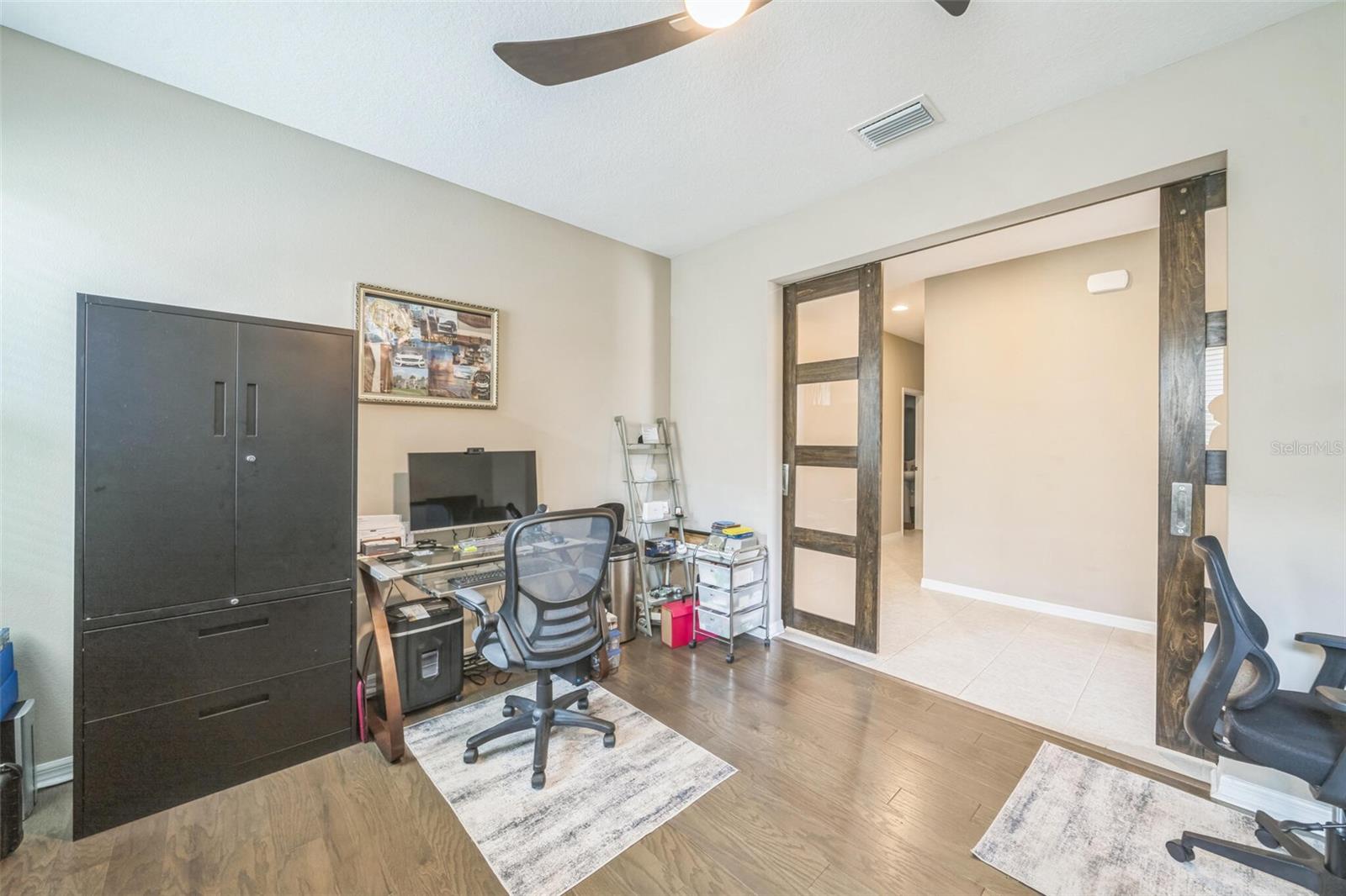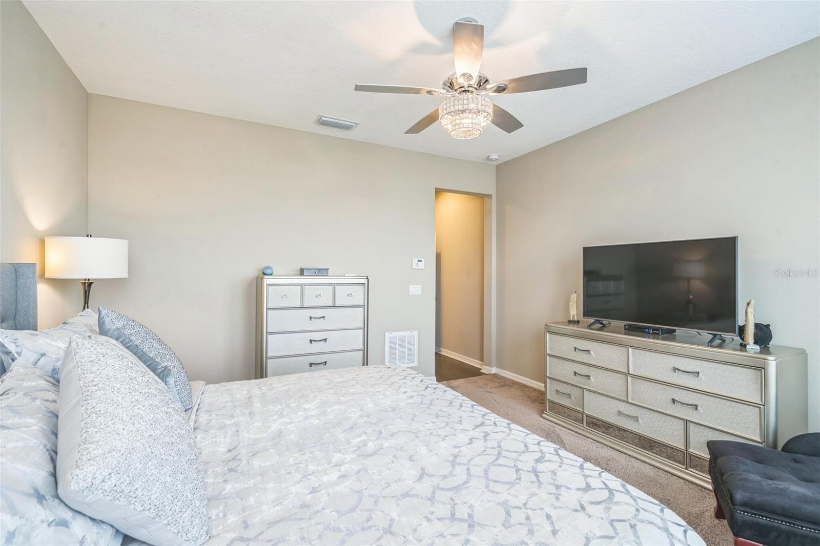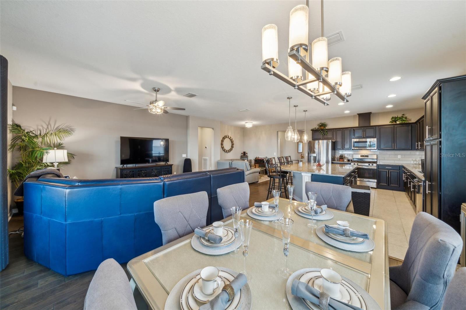 Welcome to your dream retirement retreat in the heart of The Cascades at Groveland. Built in 2019, this beautifully maintained 3-bedroom, 2.5-bathroom home with a versatile den offers 2,065 square feet of thoughtfully designed living space, perfect for both relaxation and entertaining. As you enter, you'll be greeted by an open-concept layout that seamlessly connects the spacious great room, dining area, and modern kitchen. The kitchen is a chef’s delight, featuring stainless steel appliances, solid wood cabinetry, and a convenient breakfast bar that makes hosting and everyday meals a breeze. The private primary suite is a true sanctuary, complete with a walk-in closet and a luxurious en-suite bathroom featuring dual vanities and a walk-in shower. A flexible den provides the ideal space for a home office, hobby room, or quiet reading nook. Step outside to your screened patio, where you can enjoy peaceful mornings and tranquil evenings surrounded by a beautifully landscaped garden setting. This home also features energy-efficient systems, central air conditioning, and natural gas heating for year-round comfort. The two-car garage offers ample room for storage and parking. HOA dues include access to the community's exceptional amenities, including a clubhouse, fitness center, indoor and outdoor pools, pickleball courts, scenic walking trails, and a robust calendar of social activities that make every day feel like a vacation. Conveniently located near shopping, dining, and outdoor recreation, don’t miss your chance to experience the lifestyle you’ve been waiting for—schedule your private tour of 525 Narrow View Lane today. HOA Fee is $549 including a Gated community,Security guard,Phone line, Spectrum TV and cable wire-service. Security is Mi tech the security for the house