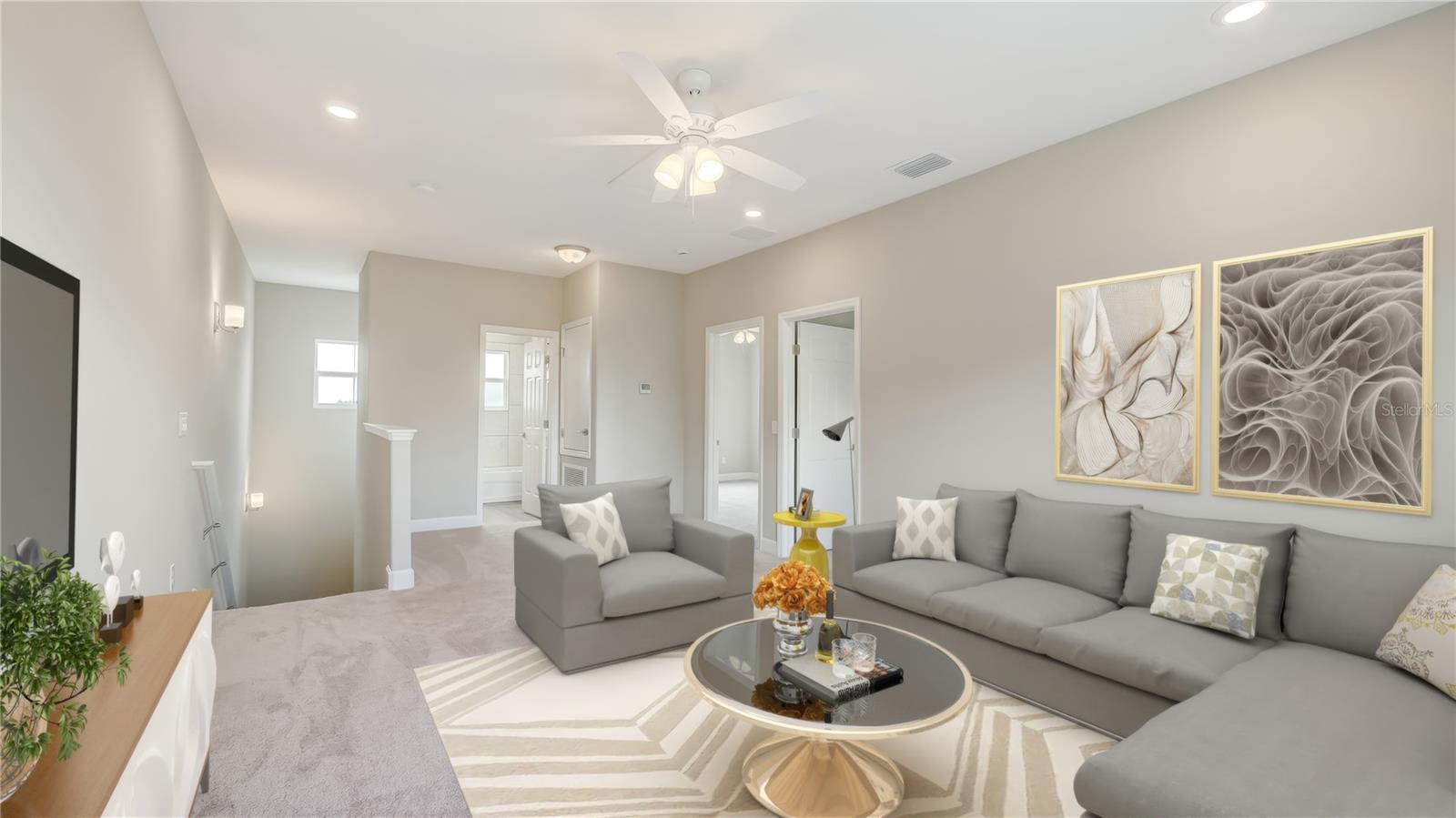 One or more photo(s) has been virtually staged. Step into a fresh take on townhome living in the growing Groveland area! This newly built gem offers a blend of style, comfort, and value—packed with premium finishes that many builders consider extras. From the moment you enter the gated courtyard, you’re welcomed into an open, airy layout designed for today’s lifestyle. The kitchen is a showstopper with its oversized island, built-in pantry, and seamless flow into the family room and screened patio—perfect for hosting, relaxing, or both. Downstairs also features a convenient laundry area and a spacious main suite with thoughtful design details for comfort and ease. Upstairs, you’ll find two additional bedrooms, a full bath, and a versatile loft-style bonus room—ideal for a home office, media lounge, or creative space. Just minutes from downtown Clermont, you’ll love the nearby parks, trails, golf courses, and lakefront spots that make this area so unique. Quick access to major roads puts Orlando hotspots, theme parks, and the airport all within easy reach. Ask about available incentives for closing costs or rate buy-downs when you work with our preferred lending partner. Schedule your private tour today or explore the home from anywhere with our 3D virtual walkthrough!