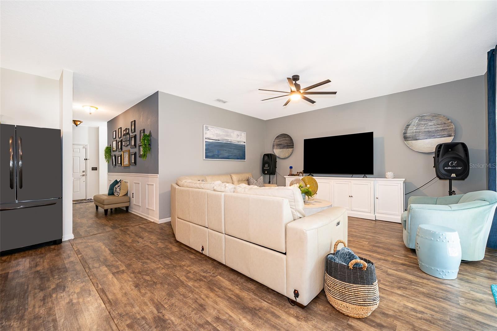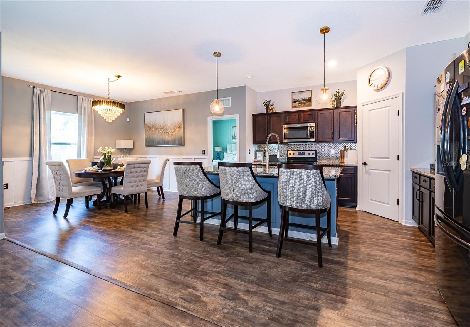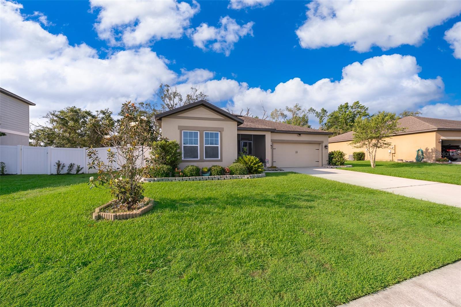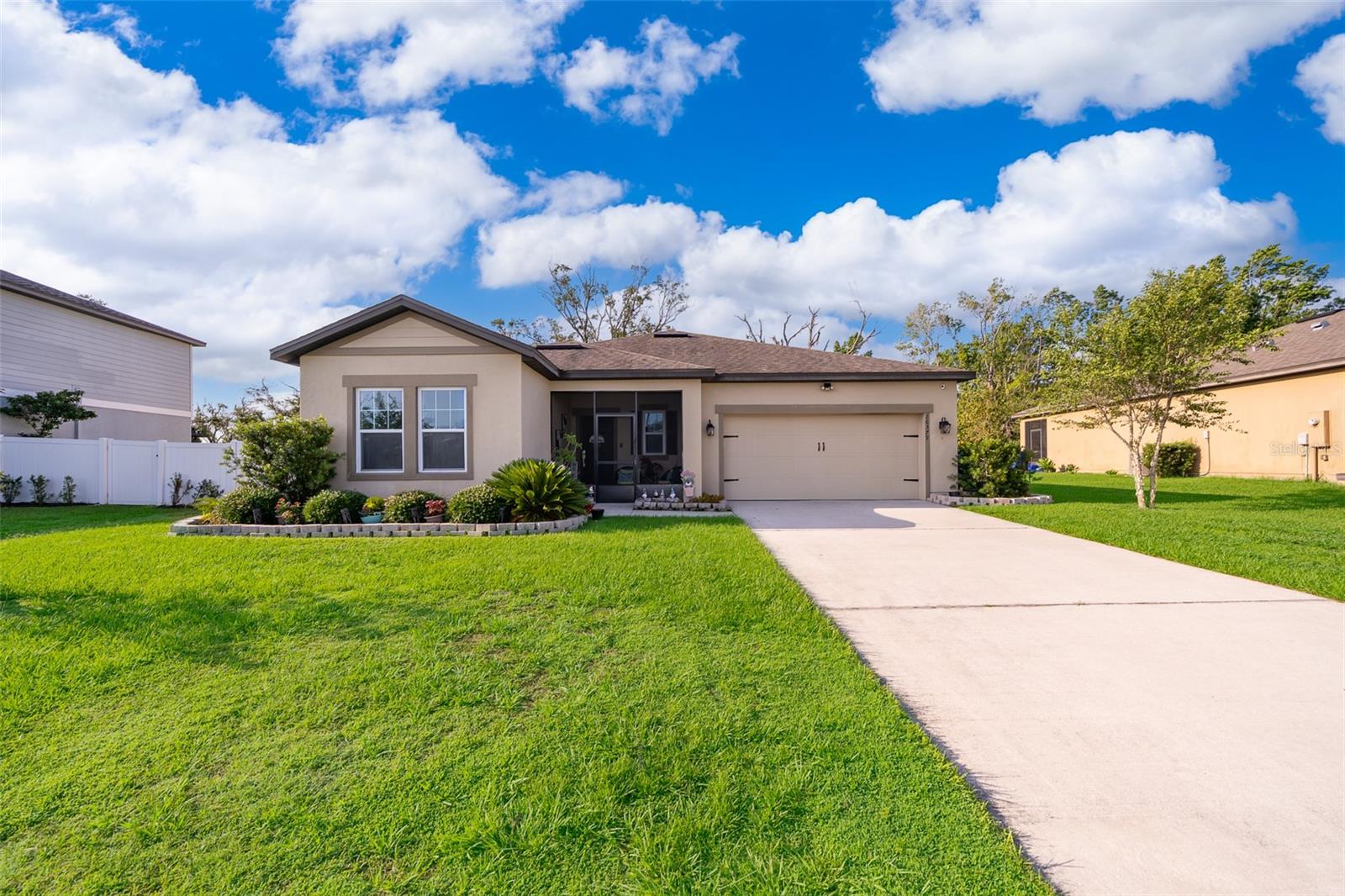 SELLER IS MOTIVATED! TAKE A LOOK at this Beautifully UPGRADED HOME in the private neighborhood of Cherry Lake Landing. NO CDD and LOW HOA! As soon as you glance at the house, you'll notice an inviting screened-in Front Porch. As you walk through the front door, you'll notice the Wainscoting on the walls and Luxury Vinyl Plank flooring. The Living Room, Dining Room and Kitchen are all open and the Kitchen comes equipped with Stainless Steel Frigidaire Fridge, Whirlpool Stove, Dishwasher and Microwave. Also new Pendant Lights over the large extended Island, Crystal Chandelier in the Dining Room, Coffee Bar, and lots of Cabinets! The Primary Bedroom features it's own En-Suite with Shower, Separate Walk-In Closet, and wainscoting on the bedroom walls. The AC is Brand NEW. The Garage can store 2 cars and has cabinets for storage. The Back Yard is Cozy and Inviting with it's Screen-Enclosed Back-Porch that features a relaxing view of nature. The back porch has brand new pavers and gutters were added on the house. Invite the whole family over and hang out in your back porch playing games and socializing. The back yard features a Fire Pit and the yard is fully fenced with vinyl fencing down the sides and rod-iron fence at the very back of the yard so you can see the creek. The neighborhood has a playground and a nature walking path. This property is centrally located near the Turnpike, close to downtown Clermont, Mascotte, Tavares, and only 30 minutes to Disney. You don't want to miss out on making this house your home!