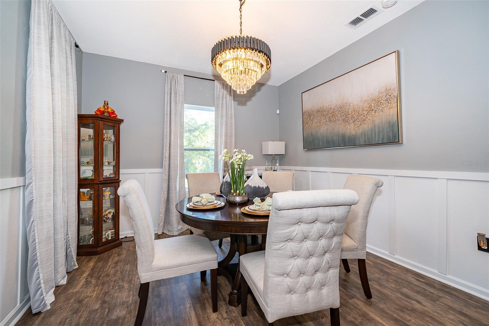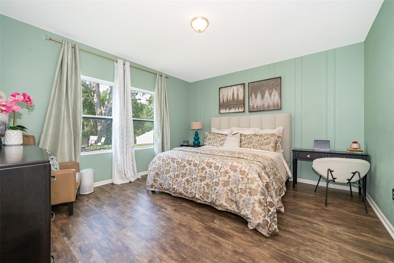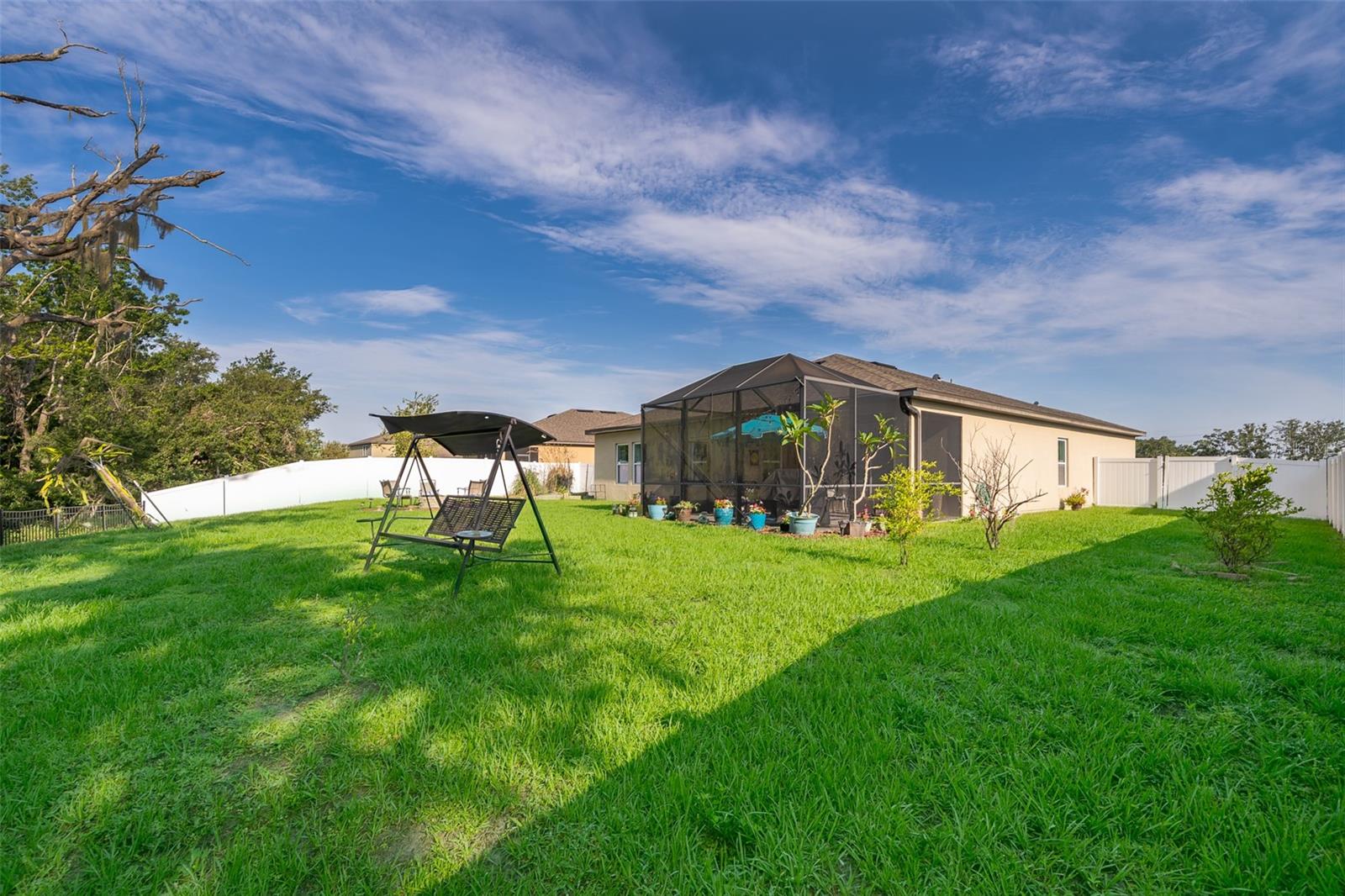 SELLER IS MOTIVATED! TAKE A LOOK at this Beautifully UPGRADED HOME in the private neighborhood of Cherry Lake Landing. NO CDD and LOW HOA! As soon as you glance at the house, you'll notice an inviting screened-in Front Porch. As you walk through the front door, you'll notice the Wainscoting on the walls and Luxury Vinyl Plank flooring. The Living Room, Dining Room and Kitchen are all open and the Kitchen comes equipped with Stainless Steel Frigidaire Fridge, Whirlpool Stove, Dishwasher and Microwave. Also new Pendant Lights over the large extended Island, Crystal Chandelier in the Dining Room, Coffee Bar, and lots of Cabinets! The Primary Bedroom features it's own En-Suite with Shower, Separate Walk-In Closet, and wainscoting on the bedroom walls. The AC is Brand NEW. The Garage can store 2 cars and has cabinets for storage. The Back Yard is Cozy and Inviting with it's Screen-Enclosed Back-Porch that features a relaxing view of nature. The back porch has brand new pavers and gutters were added on the house. Invite the whole family over and hang out in your back porch playing games and socializing. The back yard features a Fire Pit and the yard is fully fenced with vinyl fencing down the sides and rod-iron fence at the very back of the yard so you can see the creek. The neighborhood has a playground and a nature walking path. This property is centrally located near the Turnpike, close to downtown Clermont, Mascotte, Tavares, and only 30 minutes to Disney. You don't want to miss out on making this house your home!