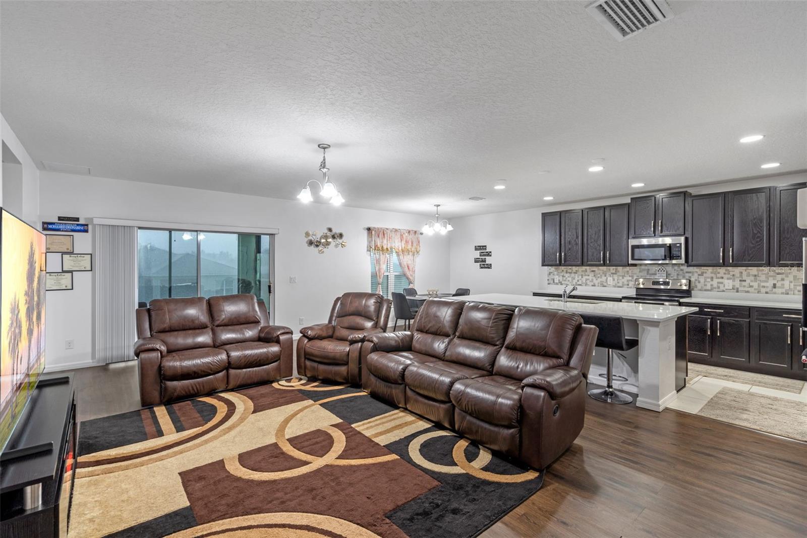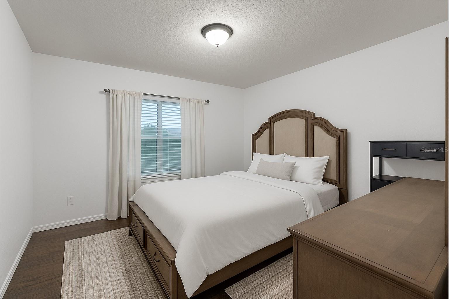 One or more photo(s) has been virtually staged. Welcome to your new home in the desirable Preserve at Sunrise community! This well-appointed 4-bedroom, 2-bath home also features a bonus room, ideal for a home office, playroom, or additional living space to suit your lifestyle. Step inside to find Luxury Vinyl Plank flooring throughout the main living areas, enhancing the home's modern, cohesive design. The kitchen is a standout, with granite countertops, solid wood cabinets, and stainless steel appliances—perfect for cooking and entertaining. The spacious master suite offers a peaceful retreat with a walk-in closet, dual sinks, and a glass-enclosed walk-in shower featuring a rain showerhead and digital thermostat for the perfect water temperature. Step outside to relax on the covered lanai, a great spot for morning coffee or evening gatherings—rain or shine. Enjoy the best of Florida living with access to a resort-style community pool, multiple playgrounds, scenic parks, and a fishing pier just a short stroll away.
