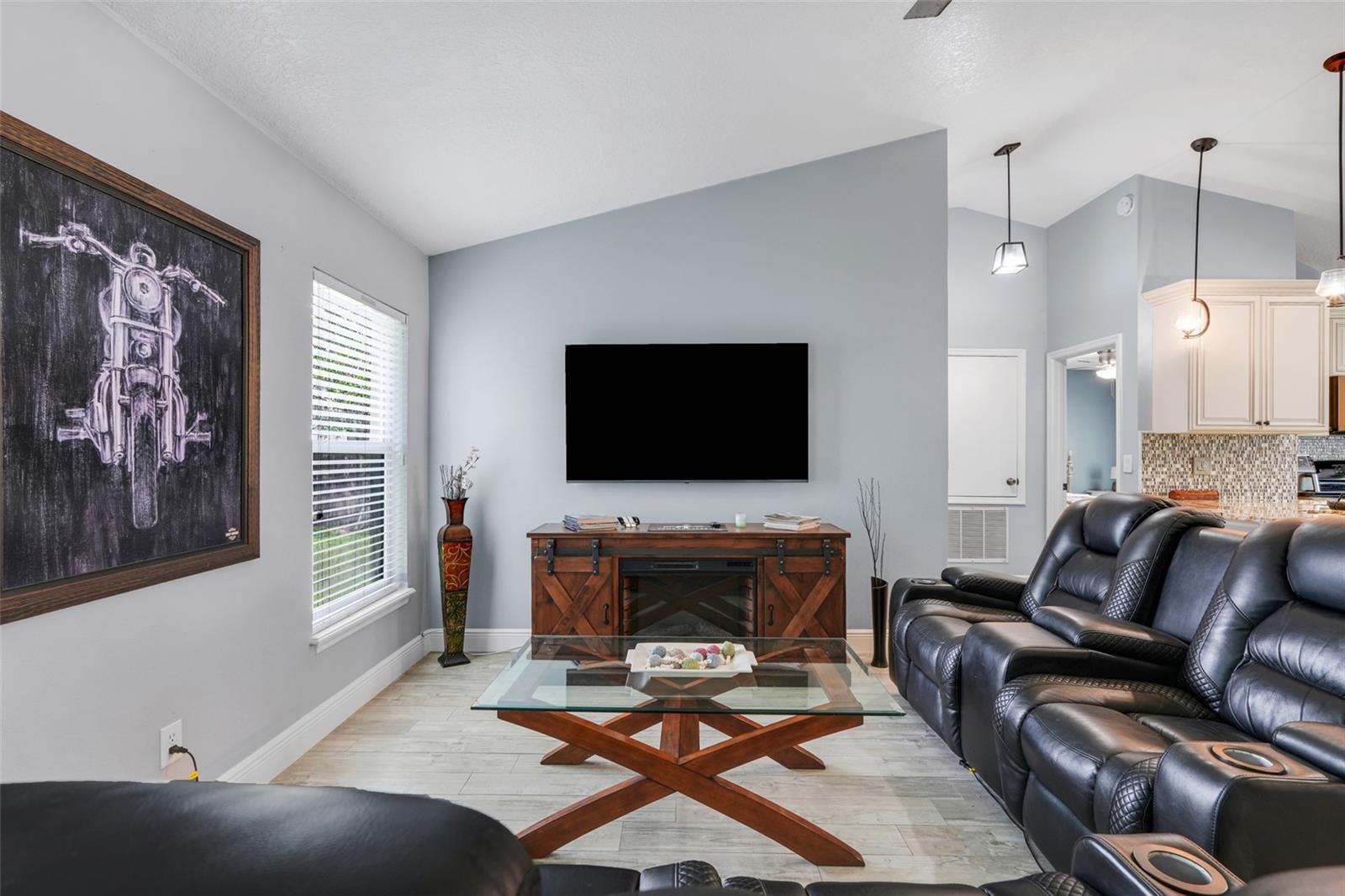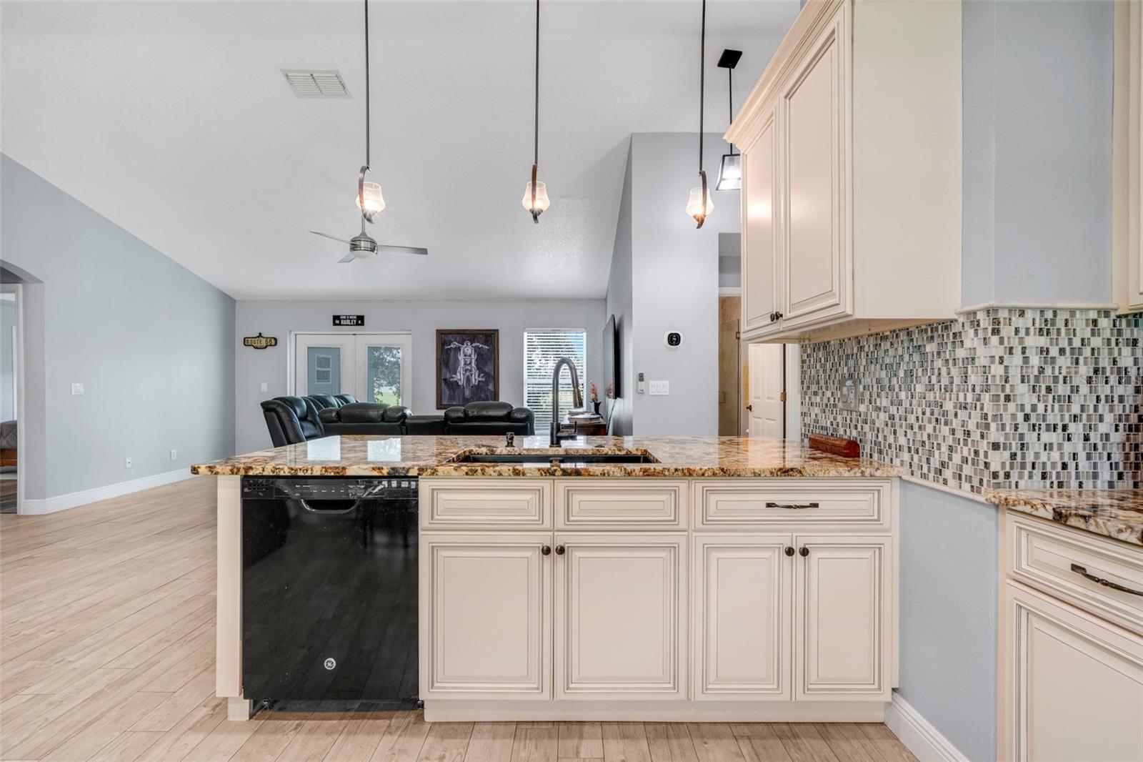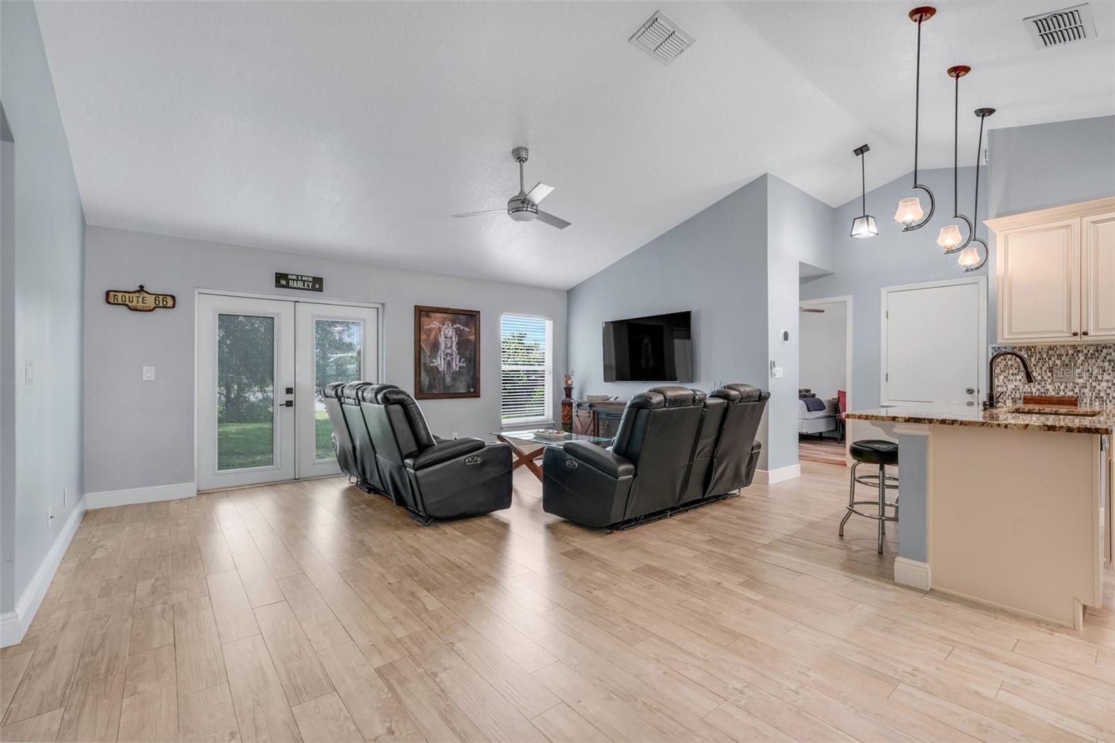 Welcome to this cozy, well-maintained 3-bedroom, 2-bathroom home in the desirable Crane’s Landing neighborhood. With 1,322 sq. ft. of living space, this block-constructed home offers a practical split floor plan, warm wood floors throughout, and an inviting dining area next to the upgraded kitchen. The kitchen features custom cabinets and level 4 granite countertops, blending style and functionality for everyday living or entertaining. Step outside to a large private backyard overlooking a peaceful pond — no rear neighbors means extra privacy and an open view. A custom guest shower adds a thoughtful upgrade inside. Conveniently located near South Lake High School and close to the new Hiawatha Reserve Park for outdoor recreation. You’re just 7 miles from the Florida Turnpike for an easy drive to Orlando. Spend the day at Walt Disney World — about 35 minutes away — or catch your flight at Orlando International Airport (MCO) in roughly 45 minutes. Shopping, dining, and everyday essentials are nearby in Clermont, with Clermont Landing shopping center about 15 minutes away. Perfect for first-time buyers or anyone seeking a comfortable home with modern upgrades in a great spot.