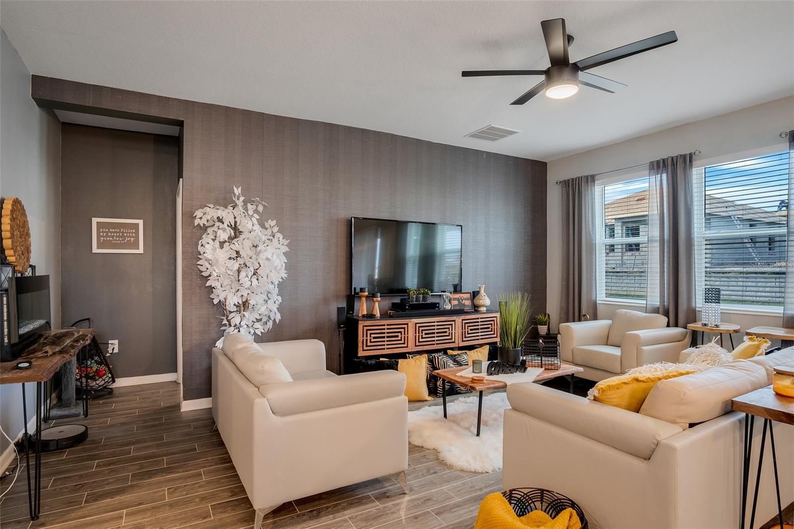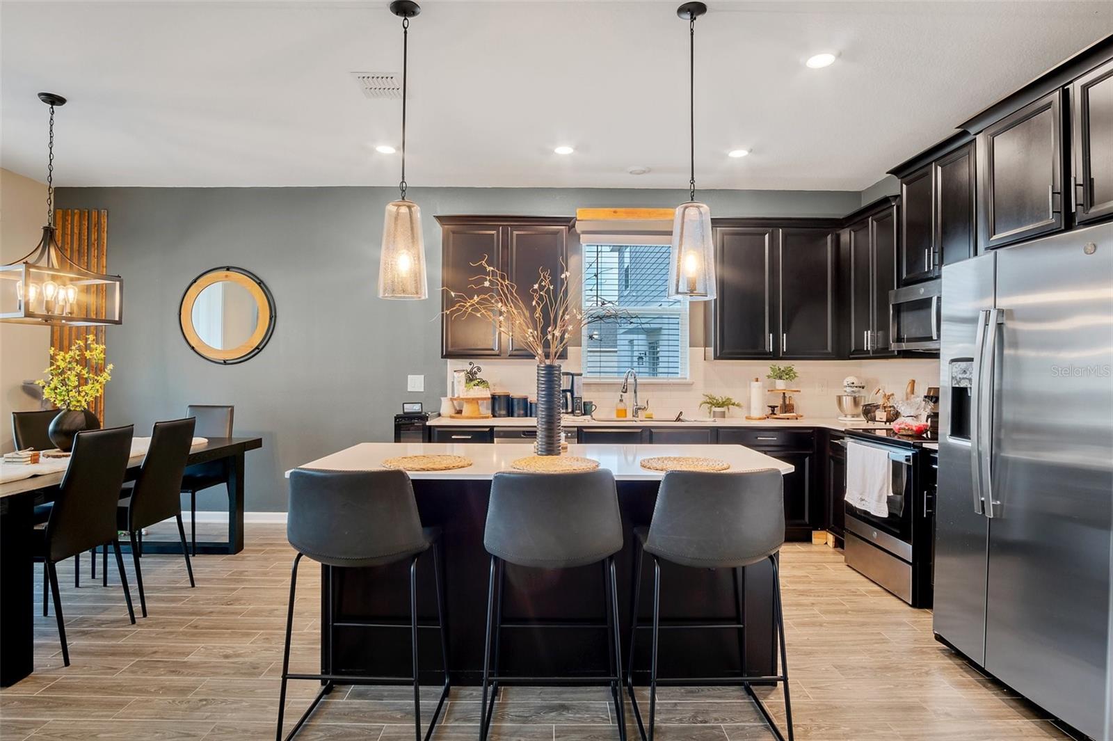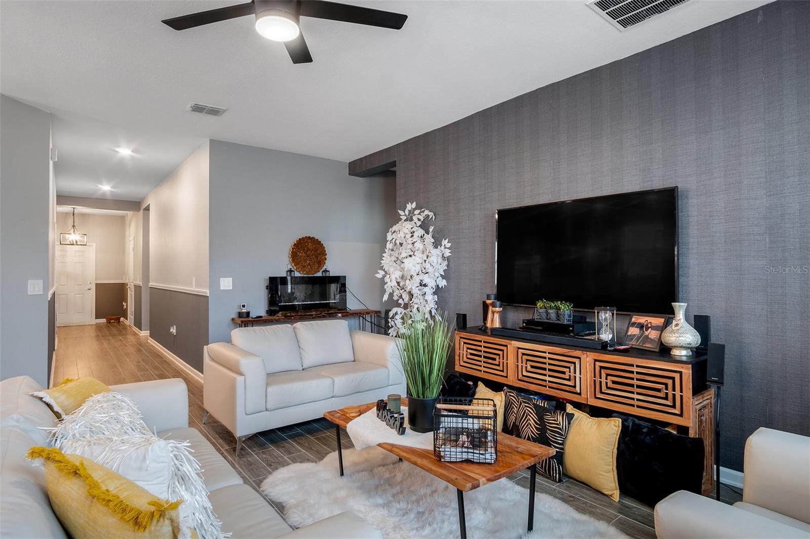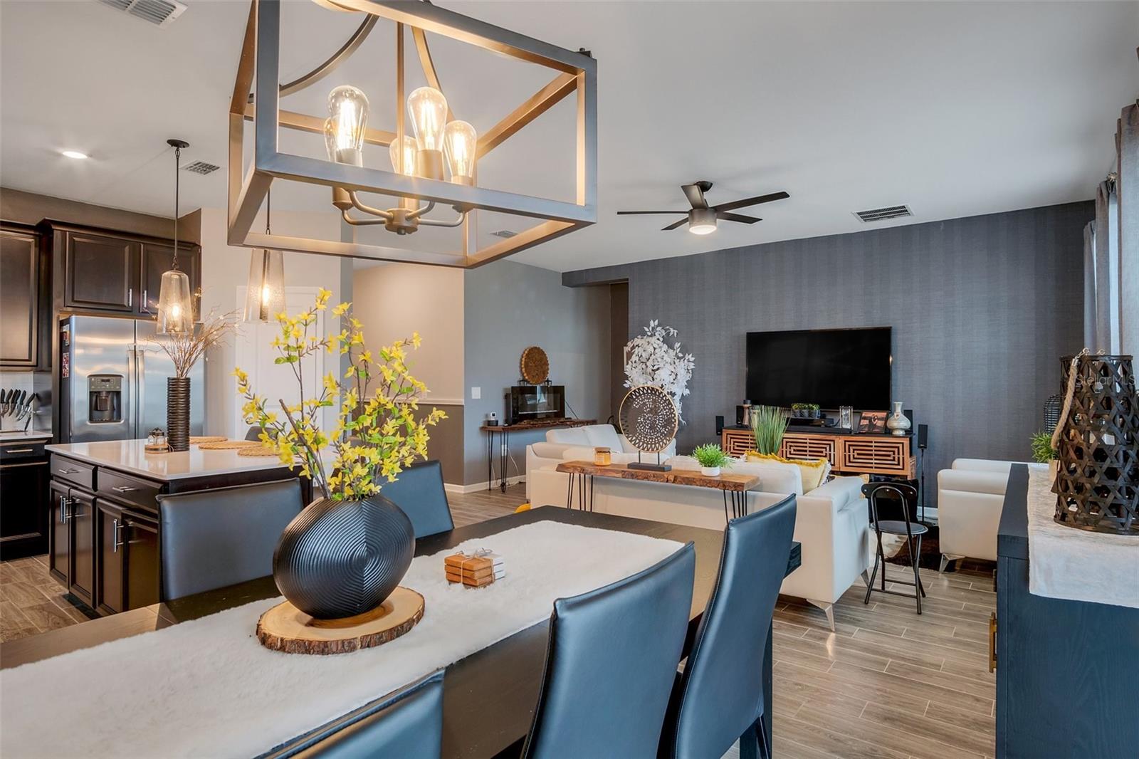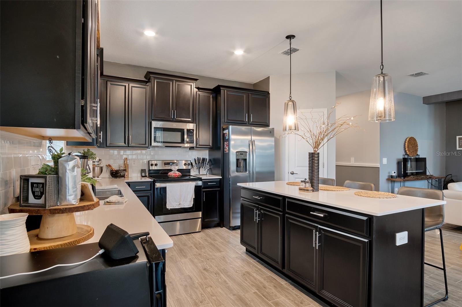 Modern Elegance Meets Energy Efficiency in Trinity Lakes! Welcome to this impressive 4-bedroom, 2-bathroom home in the highly sought-after Trinity Lakes community! Designed with modern living in mind, this recently built gem boasts soaring ceilings, a bright open-concept floor plan, and eco-friendly solar panels that keep your energy bills low without sacrificing comfort or style. The heart of the home is a chef’s dream—featuring rich espresso cabinetry, luxurious quartz countertops, and a spacious layout perfect for entertaining or everyday living. The kitchen flows effortlessly into the main living area, where sleek tile flooring enhances the space with both beauty and durability. Step outside to your own private, fenced-in backyard—ideal for relaxing, entertaining, or letting pets and little ones play safely. Enjoy a host of resort-style community amenities, including a sparkling pool, splash pad, playground, clubhouse, and a fully equipped fitness center—offering the ultimate lifestyle experience for residents of all ages. Don’t miss your chance to own a home that truly has it all—modern design, energy savings, privacy, and unbeatable community features. Schedule your private showing today and fall in love with everything Trinity Lakes has to offer!