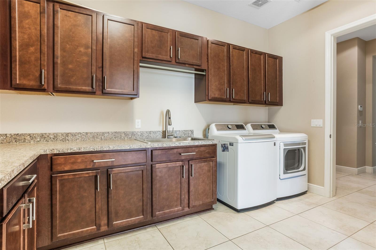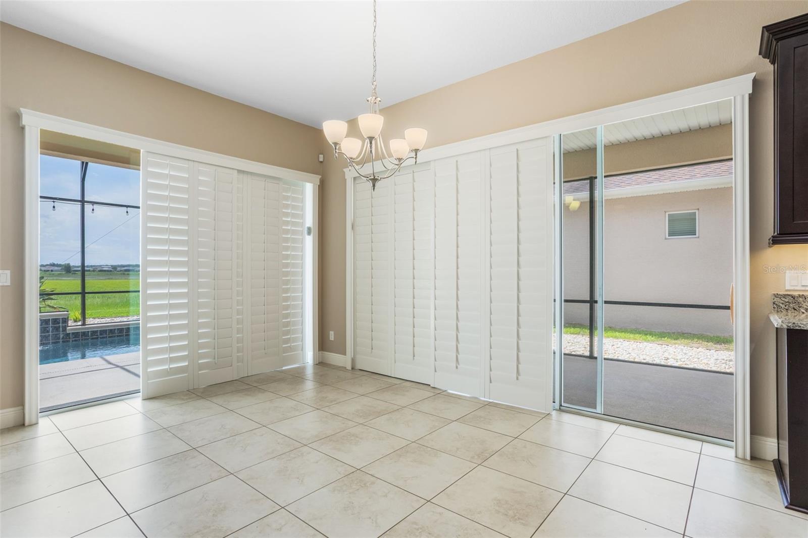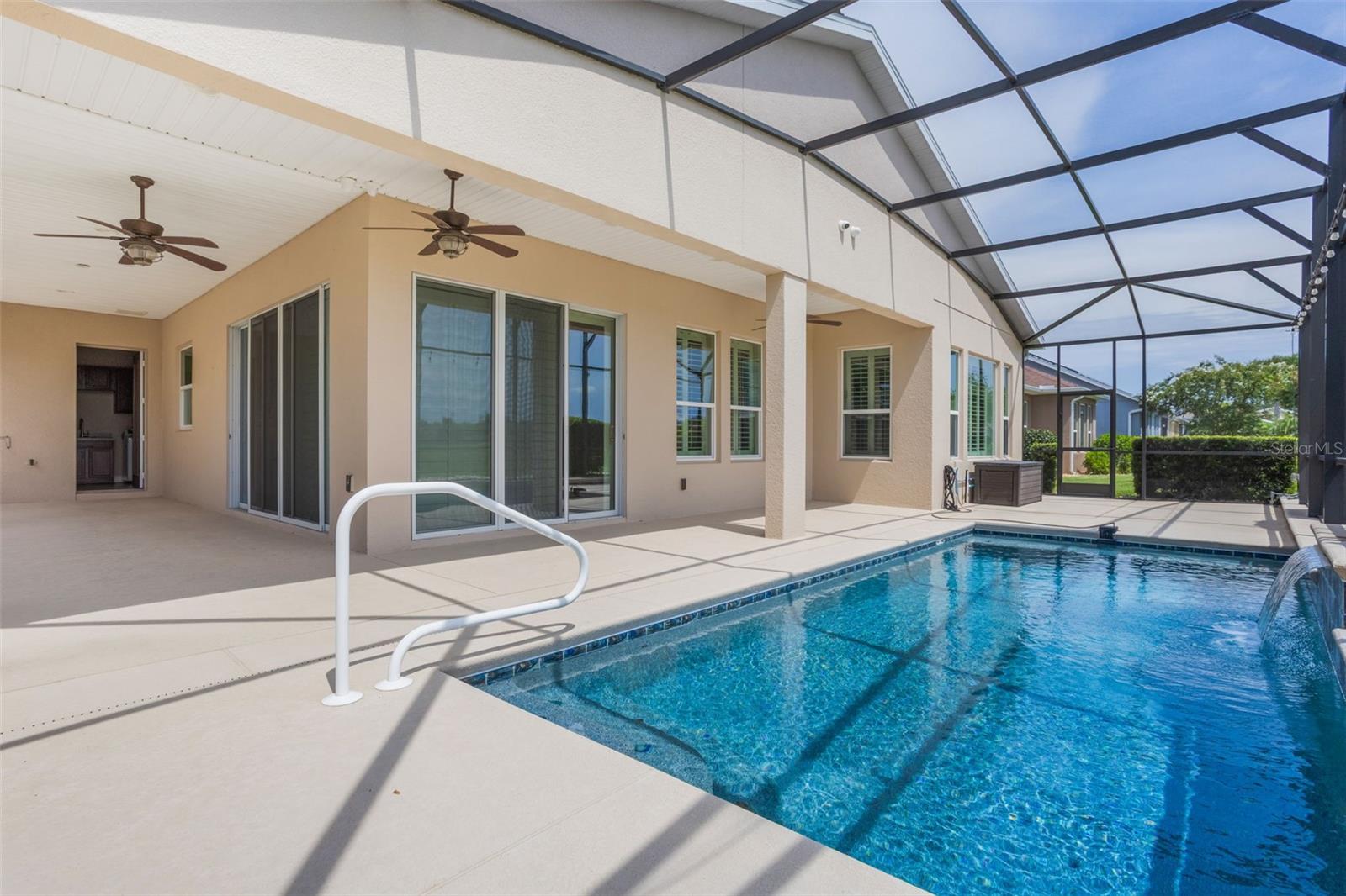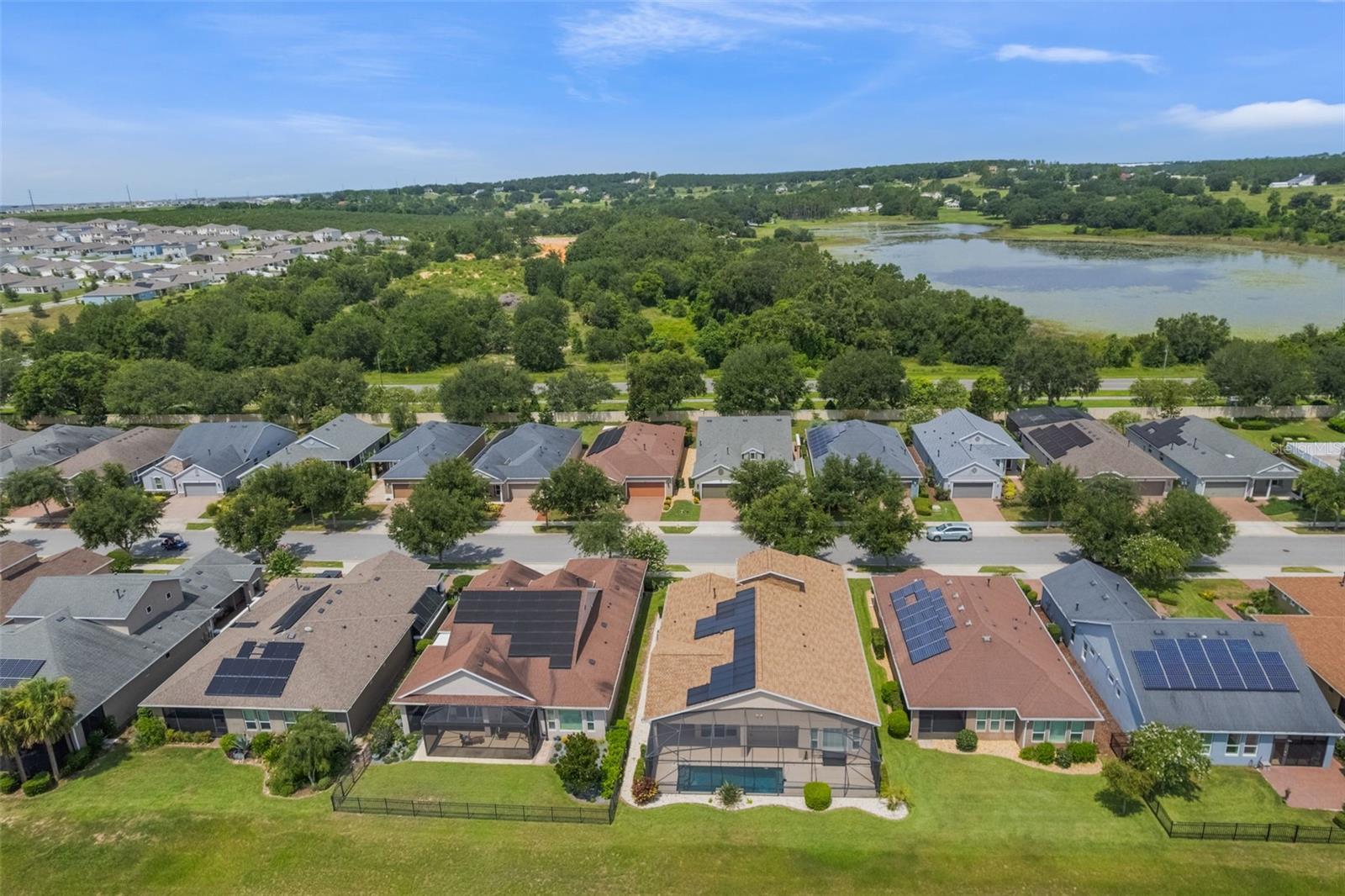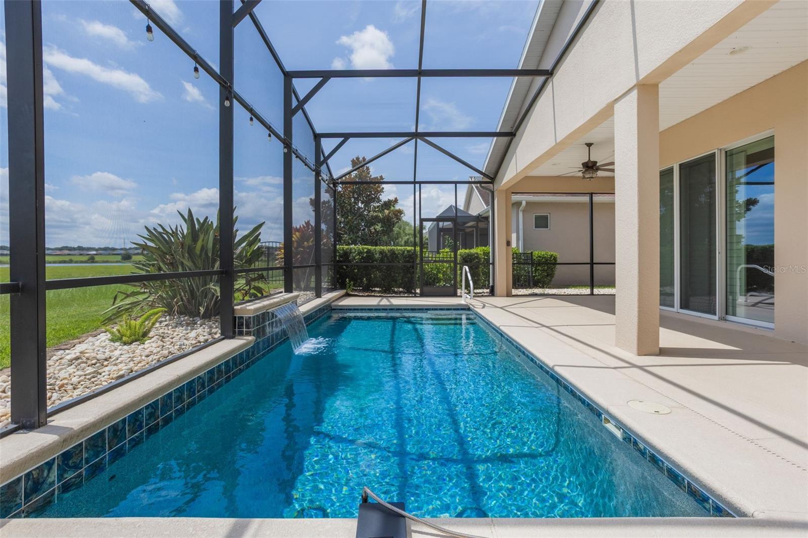 Luxurious Living in Trilogy’s Premier 55+ Community! Welcome to resort-style living at its finest! Located in the highly sought-after Trilogy community, this exquisite home offers the perfect blend of elegance, comfort, and privacy. Nestled on a premium lot with no rear neighbors and tranquil views of Schoolhouse Lake, this residence is designed for both relaxation and entertaining. Step inside to find tile flooring throughout, plantation shutters, and an expansive open layout. The chef’s kitchen is a showstopper—featuring top-of-the-line GE Monogram stainless steel appliances, a 6-burner gas stove, wine fridge, granite countertops, a large entertaining island, pendant lighting, custom exhaust hood, and upgraded cabinetry. The screen-enclosed heated pool and wraparound lanai offer seamless indoor-outdoor living with peaceful lake views—perfect for enjoying Florida sunrises in total privacy. This home boasts 2 spacious bedrooms plus a versatile den/craft room, 2.5 baths, and a 3-car garage. Bedroom 2 has its own private bath. The luxurious primary suite features serene lake views, a spa-like bath with dual vanities, garden tub, walk-in shower, and a walk-in closet. Additional upgrades include wine fridge in kitchen, whole house solar panels for energy efficiency, new roof in 2024 and exterior paint in 2023, tankless water heater, indoor laundry room with built-in desk area and storage cabinets, Radiant barrier insulation in the attic, 10-camera exterior surveillance system. Enjoy the unmatched lifestyle Trilogy offers with "Magnolia House" - The 57,000+ sq ft clubhouse, fitness center, resort pool, tennis, pickleball, restaurant, social clubs, and more—all just steps from your front door. Don’t miss this rare opportunity to own one of the finest homes in Trilogy!