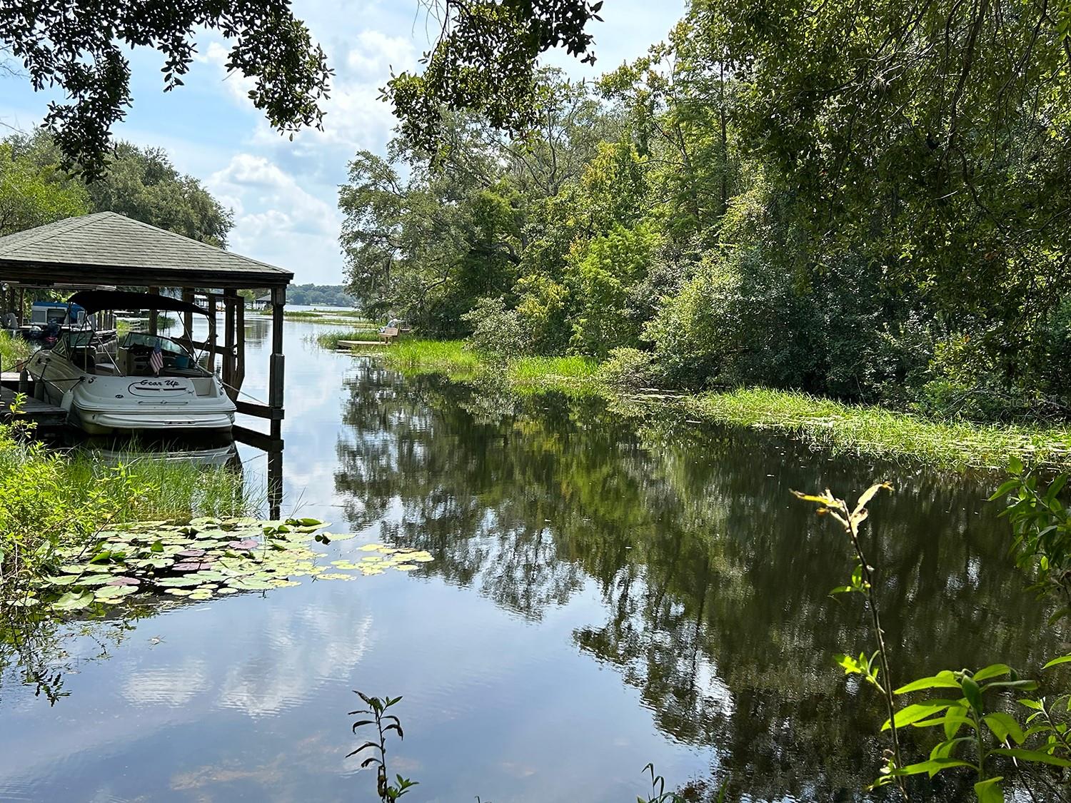 ** LAKE ACCESS ** ASSUMABLE LOW INTEREST RATE MORTGAGE ** NO HOA ** Looking for the perfect place to live life on your own terms? Look no further: No HOA! Private neighborhood Boat Dock! Almost an acre of land - so you can park your Boat and RV without being harassed. You’ll have the best of both worlds, with a large lot in a quiet, established neighborhood, yet still close to Orlando, Clermont, and all that Central Florida offers. Upon entering, you will enjoy an Open Floor Plan, with an oversized Family Room / Dining Room combo, a Wood Burning Fireplace and vaulted ceilings, providing a great place to gather plenty of family and friends! The kitchen has a bar that opens to the Family Room, creating a great flow, so that everyone is connected and can visit easily. The kitchen offers stainless steel appliances, has a built-in oven, and cooktop, and lovely French Doors that take you to your huge back patio, currently screened in, with the option of closing it in (windows on-site.) Split Bedroom plan, with Oversized Primary Bedroom on one side with en-suite bathroom with separate tub and shower, and two more bedrooms on the other side with the second bath in between. Inside Laundry Room conveniently located in the large primary bedroom closet. Established, friendly, smaller neighborhood, with a private boat ramp, just for the neighborhood's use. This is a place where neighbors actually get to know one another, and are there when you need them. The hard-wired security system comes with the house, featuring 16 exterior view cameras that you can monitor from inside (see photos). There is also storage shed out back for lawn equipment, etc. Beautifully landscaped with lush lawn, oaks, palms, crepe myrtles and more, for that perfect Florida feel. Come see your forever home today, leave the HOA behind, and enjoy your property the way you should be able to! Priced to Sell!