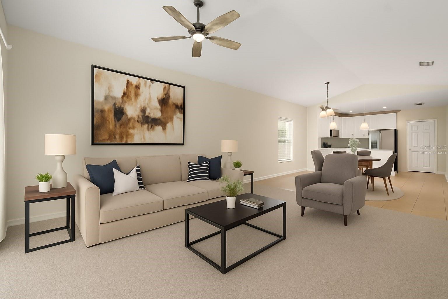 Discover this freshly repainted one-story, 4-bedroom, 2-bathroom home with brand-new carpet and a 2-car garage in the heart of Groveland, featuring an open floor plan where the quartz countertop kitchen flows into the spacious family and dining areas, perfect for entertaining. Enjoy the comfort of an inside laundry room, a serene primary suite with en-suite bath, and a versatile outdoor space ideal for barbecues, gardening, or relaxing. Take advantage of community amenities including a dock, pool, playground, and picnic area, all while being conveniently located near major highways, shopping, and the turnpike—offering both tranquility and accessibility.