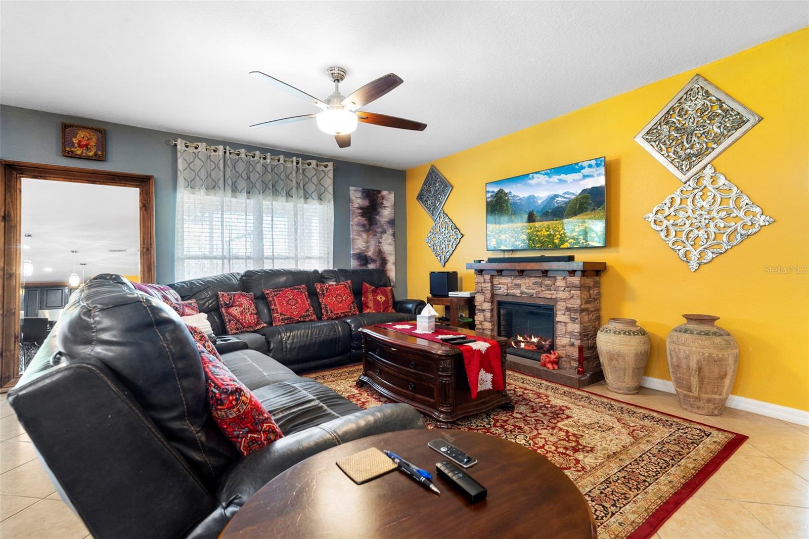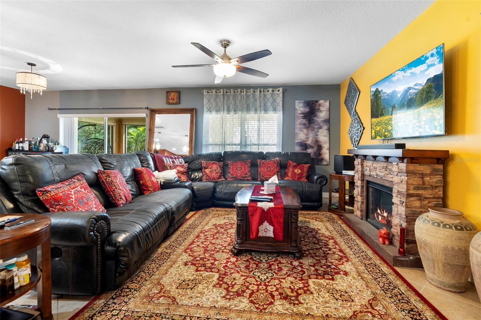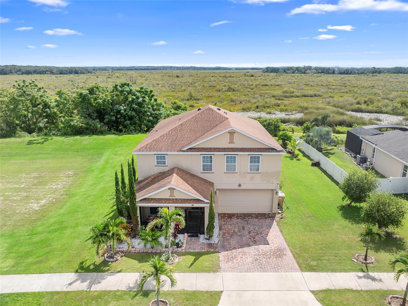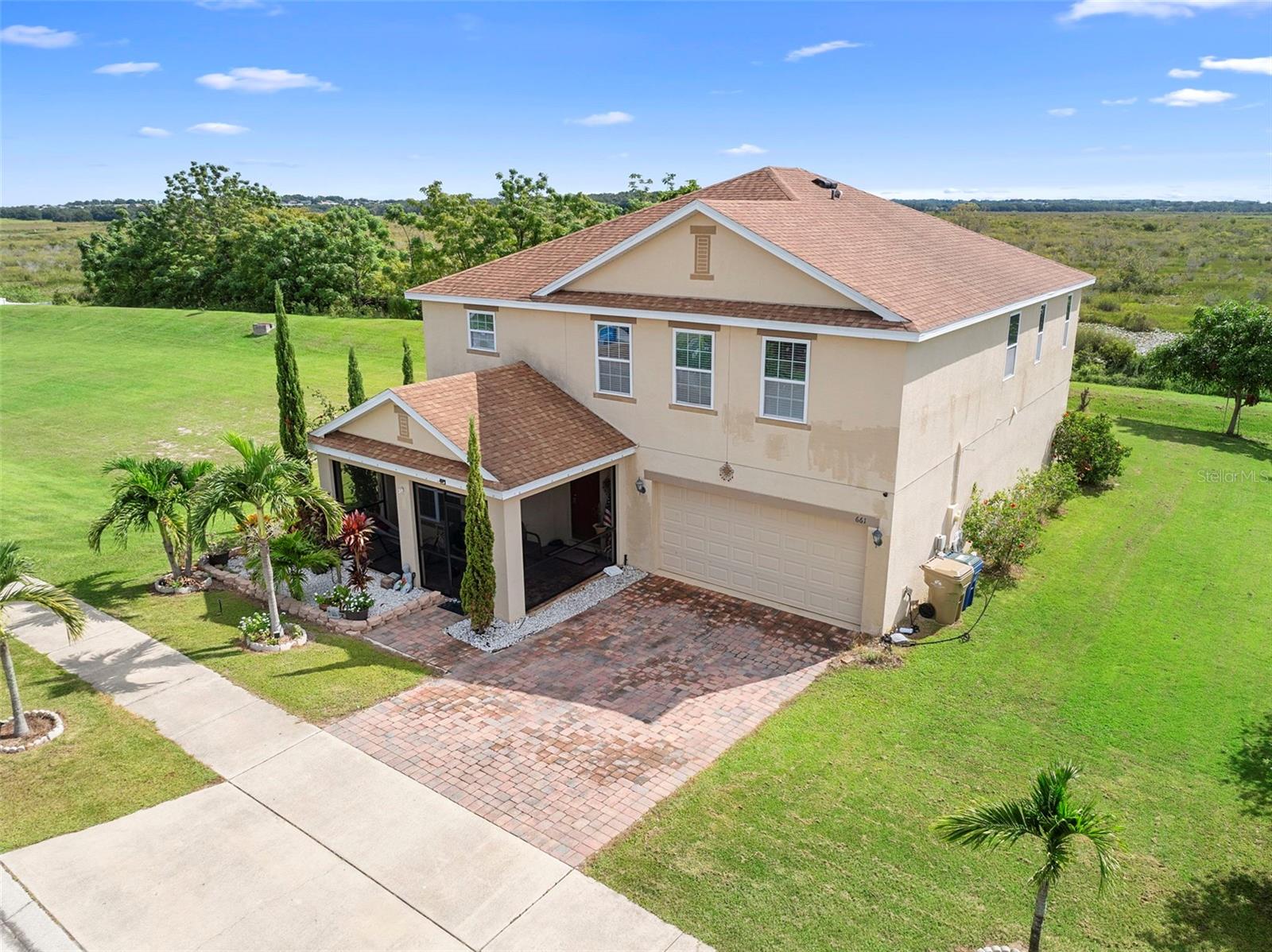 WELCOME TO YOUR WATERFRONT DREAM HOME OASIS IN GROVELAND! This move-in ready, 5-bedroom, 3-bathroom lakefront home is nestled on a spacious half-acre corner lot with no rear neighbors, offering the perfect combination of privacy, space, and natural beauty. With direct access to the Lake County Chain of Lakes, this is truly a waterfront dream home oasis—ready for you to add your own dock and enjoy boating, jet skiing, and endless lakefront adventures right from your backyard. Step inside to the welcoming formal sitting and dining areas, perfect for hosting guests or enjoying quiet evenings. From there, the home opens into a grand kitchen with a massive island, granite countertops, and 42-inch cabinets, seamlessly flowing into the spacious great room—the heart of the home and an ideal gathering space for family and friends. This thoughtfully designed floor plan offers two primary suites for ultimate flexibility—one located on the main floor, perfect for guests or multigenerational living, and another upstairs, providing a private retreat with a luxurious en-suite bath and walk-in closet. Three additional bedrooms and a versatile loft area will give you even more room to spread out. Then step outside into your private backyard retreat—a true extension of your home and lifestyle. Picture yourself sipping morning coffee in the enclosed lanai, surrounded by lush greenery and birdsong. In the evening, gather with loved ones under the stars by the crackling firepit, or stroll through the yard filled with ornamental and fruit trees, picking fresh fruit as you go. With no rear neighbors, you’ll enjoy serene privacy as you take in breathtaking sunsets over the water—every day feels like a mini getaway. Additional highlights include a brand-new stove/oven and microwave, and monthly A/C servicing for comfort and peace of mind. Located in the sought-after Eagle Pointe community, this home combines elegance, functionality, and true lakefront living.