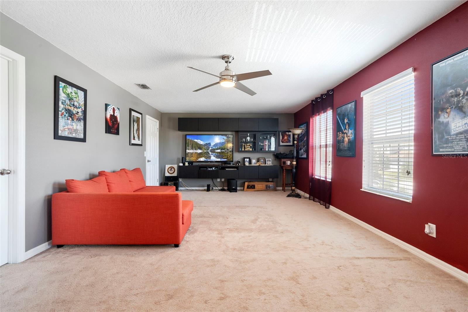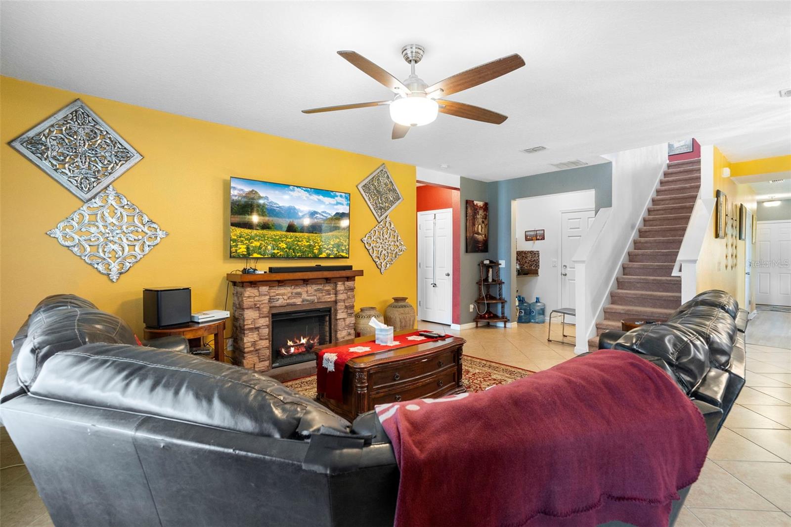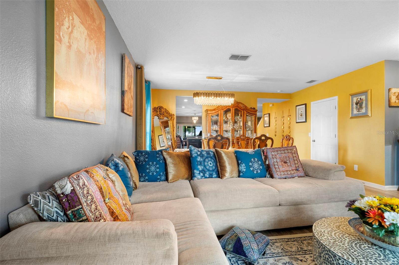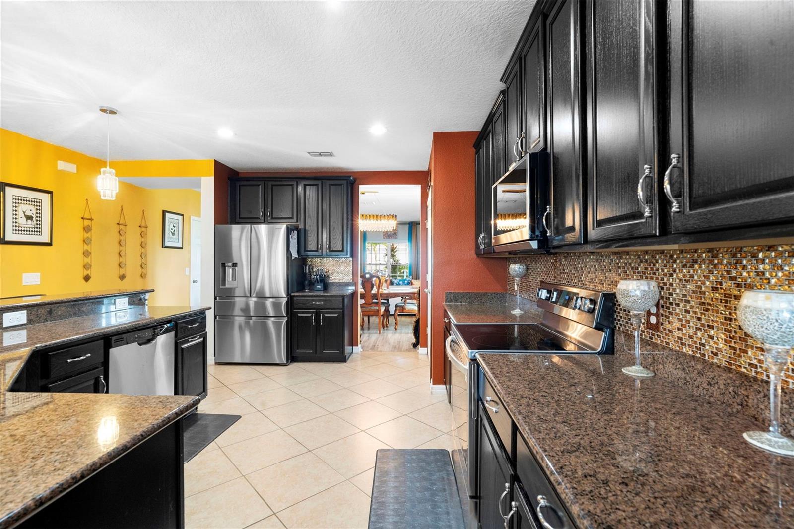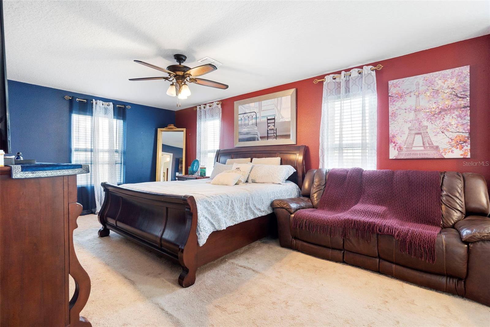 WELCOME TO YOUR WATERFRONT DREAM HOME OASIS IN GROVELAND! This move-in ready, 5-bedroom, 3-bathroom lakefront home is nestled on a spacious half-acre corner lot with no rear neighbors, offering the perfect combination of privacy, space, and natural beauty. With direct access to the Lake County Chain of Lakes, this is truly a waterfront dream home oasis—ready for you to add your own dock and enjoy boating, jet skiing, and endless lakefront adventures right from your backyard. Step inside to the welcoming formal sitting and dining areas, perfect for hosting guests or enjoying quiet evenings. From there, the home opens into a grand kitchen with a massive island, granite countertops, and 42-inch cabinets, seamlessly flowing into the spacious great room—the heart of the home and an ideal gathering space for family and friends. This thoughtfully designed floor plan offers two primary suites for ultimate flexibility—one located on the main floor, perfect for guests or multigenerational living, and another upstairs, providing a private retreat with a luxurious en-suite bath and walk-in closet. Three additional bedrooms and a versatile loft area will give you even more room to spread out. Then step outside into your private backyard retreat—a true extension of your home and lifestyle. Picture yourself sipping morning coffee in the enclosed lanai, surrounded by lush greenery and birdsong. In the evening, gather with loved ones under the stars by the crackling firepit, or stroll through the yard filled with ornamental and fruit trees, picking fresh fruit as you go. With no rear neighbors, you’ll enjoy serene privacy as you take in breathtaking sunsets over the water—every day feels like a mini getaway. Additional highlights include a brand-new stove/oven and microwave, and monthly A/C servicing for comfort and peace of mind. Located in the sought-after Eagle Pointe community, this home combines elegance, functionality, and true lakefront living.