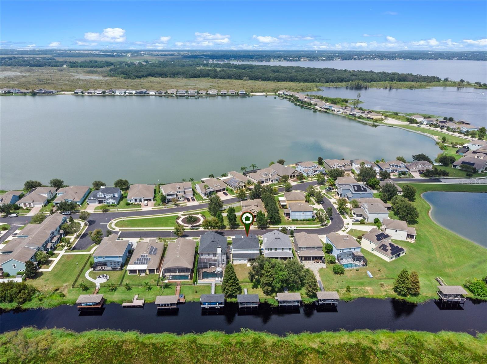 Experience lakeside luxury living on the highly sought-after Clermont Chain of Lakes! This stunning residence offers over 3,000 square feet of thoughtfully designed living space, featuring 4 spacious bedrooms, 3.5 bathrooms, and a true open-concept layout filled with natural light and modern upgrades. A brand-new 2023 boat dock with an aluminum lift is ready for your wakeboard boat—perfect for skiing, fishing, or cruising to one of the many lakeside restaurants. Inside, soaring ceilings, upgraded flooring, and expansive windows showcase breathtaking water and marsh views from all the main living areas. The chef’s kitchen is a dream, complete with stainless steel appliances, luxury countertops, abundant cabinetry, and a generous eat-in space. Flowing seamlessly into the oversized living room, this area is ideal for entertaining or simply unwinding with panoramic lake views. The formal dining room adds an elegant touch for special occasions. The main-level primary suite is a serene retreat, offering a spa-like ensuite with dual vanities, a walk-in shower, and a spacious walk-in closet. Upstairs, a versatile family room awaits—perfect for game nights or movie marathons—along with three additional bedrooms, two full bathrooms, and a dedicated office space. This home has been meticulously maintained and thoughtfully updated, including a new HVAC system (2021), a brand-new roof (2024), and numerous interior enhancements. Outdoors, the expansive backyard offers plenty of room for a future pool or can be enjoyed as-is with direct access to lakefront living. Waterside is a gated community equipped with resort style amenities. Residents enjoy a clubhouse, resort style pool, basketball court, soccer field, playground, park and much more! You're also nestled within a well-established community, this property enjoys an enviable location close to major highways, ensuring convenient access to all amenities. Just minutes away, residents can indulge in excellent shopping opportunities, dine at a variety of luxury and casual eateries, and explore nearby theme parks for entertainment. The neighborhood benefits from proximity to brand-new, state-of-the-art hospitals and a top notch school system, providing peace of mind for residents seeking quality healthcare services and high end education for their family. This vibrant community offers an abundance of options to suit every lifestyle need and preference. Call today to schedule a private tour.