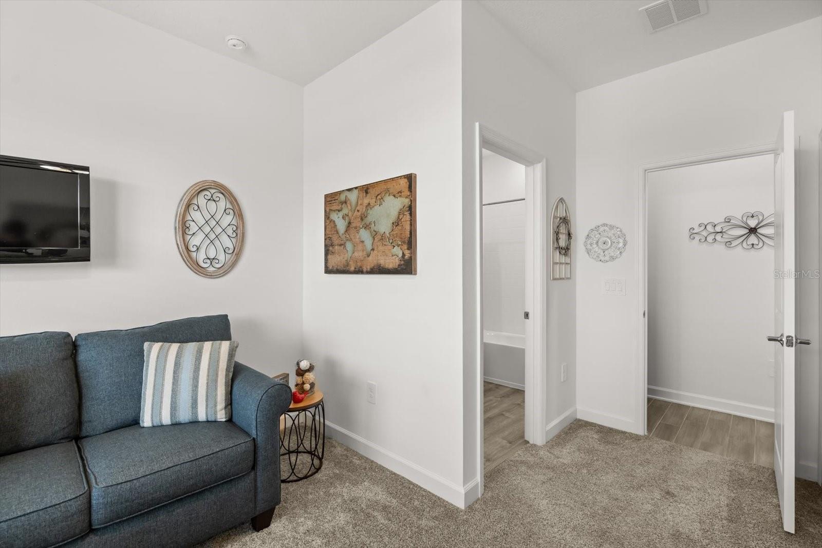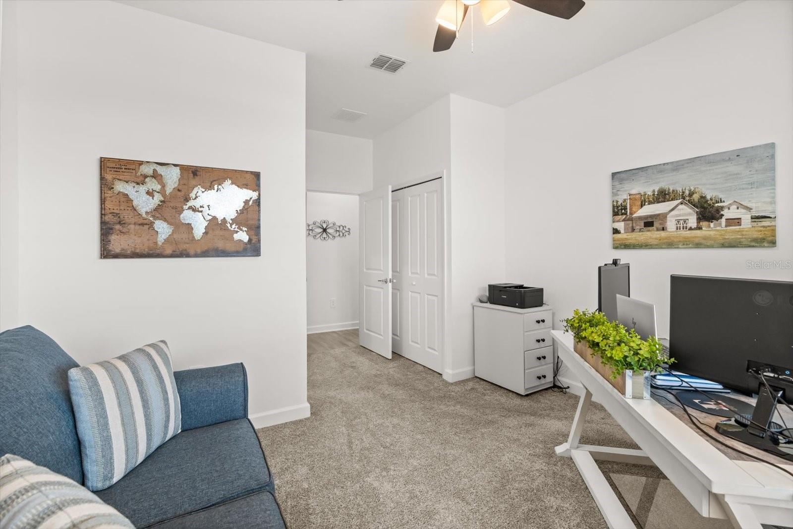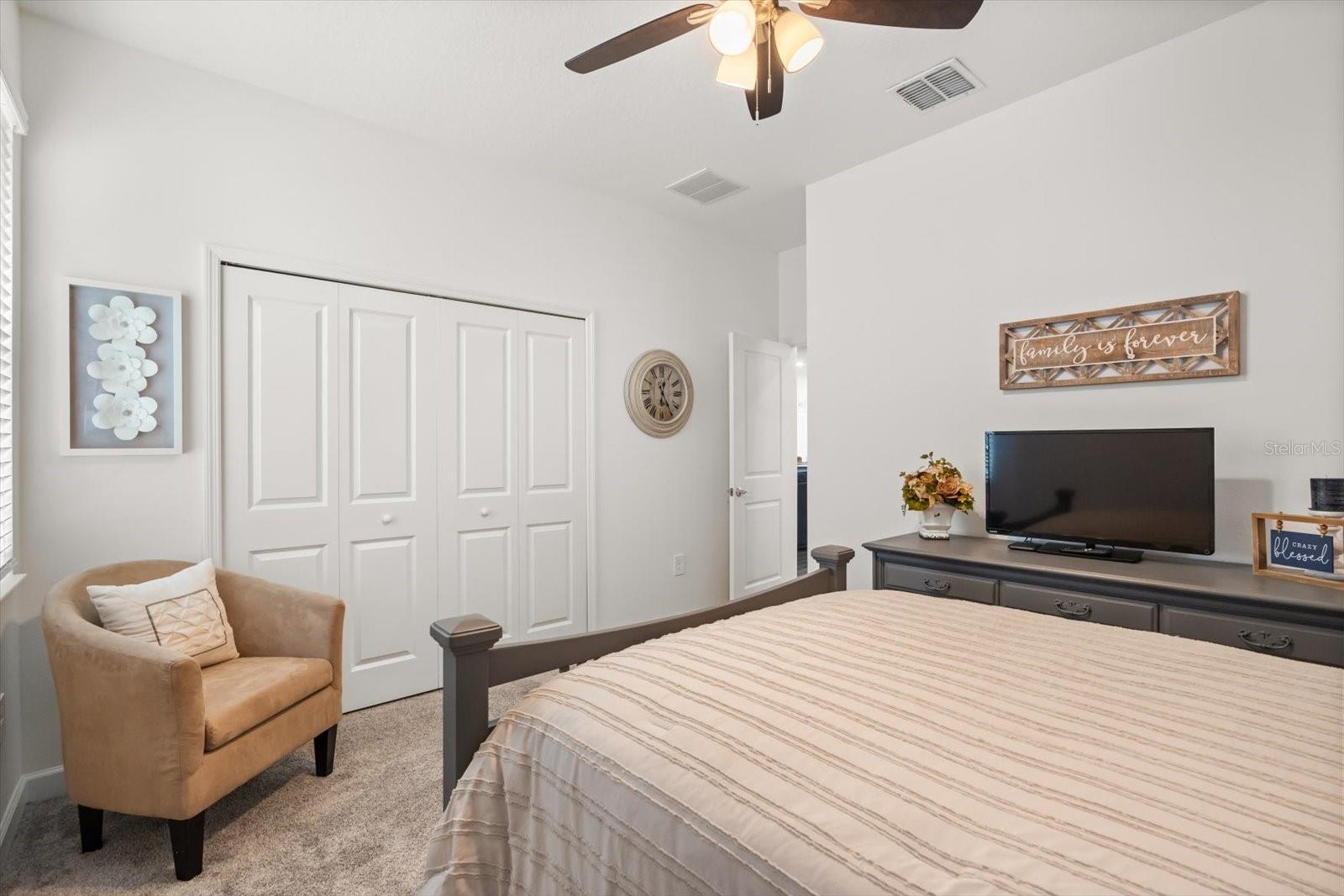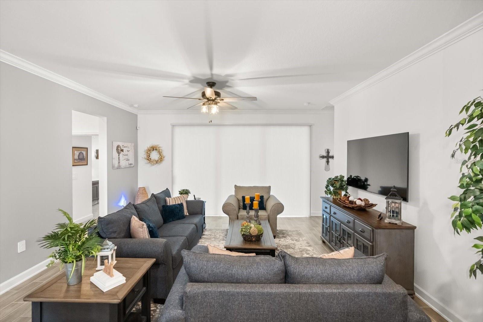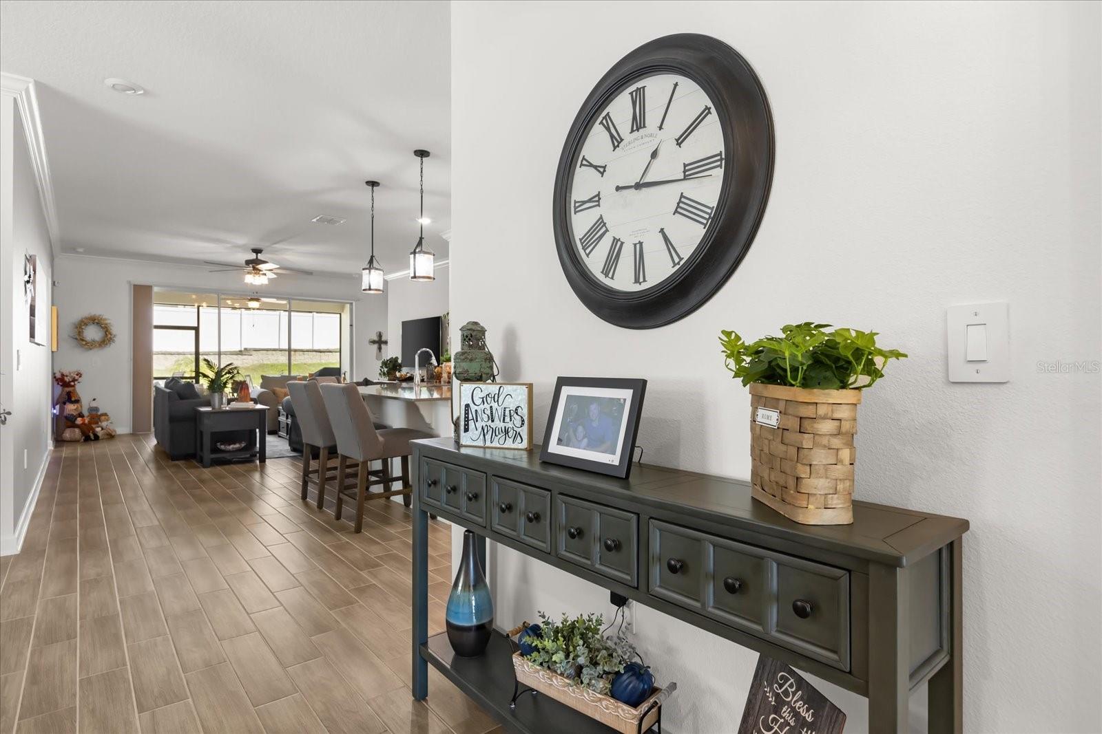 Live in Florida’s Trinity Lakes Resort-Style Community. Welcome to the Lake View Kennedy III, a beautifully designed, three-years-new home that seamlessly blends modern convenience with timeless sophistication. Offering 4 spacious bedrooms, 3 full bathrooms, a 3-car garage, and 2,379 square feet, this home delivers the space, style, and functionality today’s buyers are seeking. A home warranty and one full year of HOA dues are included, providing added value and peace of mind. Step inside to a light-filled, open-concept layout where luxury meets practicality. The gourmet kitchen is the heart of the home, featuring 42” cabinetry, an expansive center island, a walk-in pantry, and a cozy breakfast nook, making it ideal for both everyday living and entertaining. A separate formal dining room offers the perfect setting for hosting special occasions. The family room flows effortlessly to the covered patio, now enhanced with custom landscaping, decorative lighting, and a beautifully crafted paver extension, creating a serene backyard retreat. The screened lanai, complete with a remote-controlled ceiling fan, allows you to enjoy Florida outdoor living comfortably all year long. Inside, upgrades elevate every space—from elegant crown molding and shiplap ceiling accents in the foyer to luxury vinyl plank flooring in the primary bath and guest suite. Each bedroom and the living room feature stylish ceiling fans for year-round comfort, while custom lighting throughout the kitchen and dining areas adds warmth and character. The primary suite is a peaceful haven, showcasing a spa-inspired en suite bath with double vanities, a walk-in shower, a soaking tub, and a private water closet. The fourth bedroom, located at the front of the home, includes its own private full bath, making it ideal as a guest suite, in-law suite, or home office. Designed with today’s smart homeowner in mind, this property includes a full suite of smart home features, such as a keyless front entry system, Moen Flo smart water monitoring, and a whole-home Wi-Fi system designed to eliminate dead zones. The iFlo HVAC air purification system, solar features, and energy-efficient appliances support a healthier, more sustainable lifestyle. Additional enhancements include: Professional landscaping with custom irrigation, lighting, and palm trees for exceptional curb appeal Rustic ceiling fans on the front porch and lanai for both style and functionality Govee lighting Garage ceiling storage, exterior keypad, and Bali Verticell shade on the sliding glass door Laundry room cabinetry for added convenience and organization Located in the highly sought-after Trinity Lakes community in Groveland, this home offers the best of both worlds—a peaceful, rural setting with a lake view, making time on the front porch relaxing and serene, while still providing quick access to everything Central Florida has to offer. Residents enjoy resort-style amenities, including: A beautifully designed clubhouse with pool Fitness center Playgrounds A lakefront park with dock access All just a short drive to Clermont, Minneola, and major highways including the Florida Turnpike and Hwy 27. Enjoy close proximity to Lake Louisa State Park, Lake David Park, Lakeridge Winery, and countless outdoor and recreational attractions. This home is more than move-in ready—it has been meticulously enhanced and lovingly maintained, making it a truly rare find in today’s market.