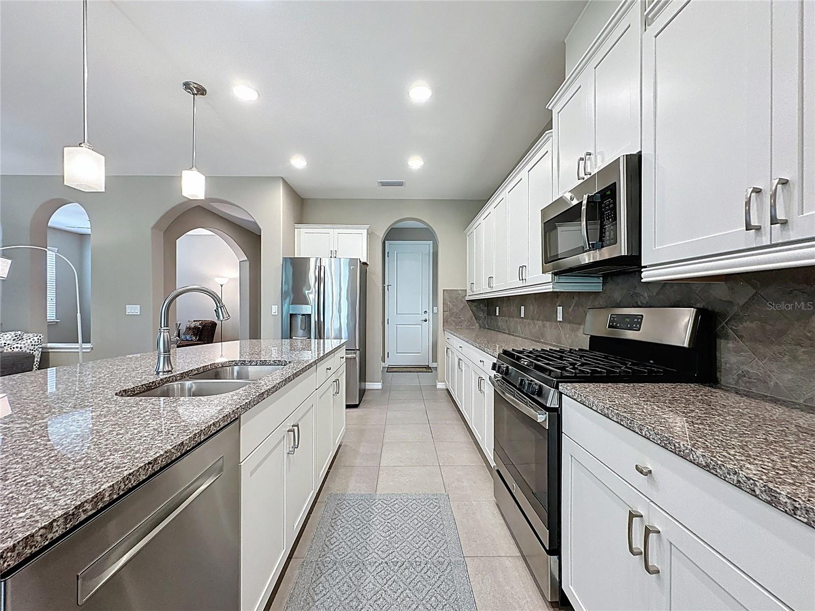 Why wait when this BEAUTIFULLY MAINTAINED, MOVE-IN READY HOME is PRICED TO SELL with the option to purchase furniture? NO rear neighbors, ENERGY EFFICIENT, Paid off SOLAR lease, DUAL PANE low E glass windows, GAS heat. HVAC bi-annual SERVICE, APPLIANCES with transferable SERVICE PLANS, transferable TERMITE BOND, exterior PAINTED 2024, interior PAINTED 2025, NO CARPET, custom ARCHWAYS, custom BLINDS, ENCLOSED LANAI with gas fireplace and insulated windows. IDEAL LOCATION within short walking distance to the 57,000 sq. ft. CLUBHOUSE and RESTAURANT. PLUS so much more! The optional stacked stone front and landscaped yard presents inviting curb appeal. The bright and airy kitchen features a gas range, large center island, GE refrigerator and an upgraded Bosch dishwasher, both with transferable service plans, decorative backsplash and lighting, cabinet underlighting and crown molding. A highlight is the renovated Primary bathroom, with a custom walk-in shower, decorative tile, upgraded fixtures, porcelain tile floors, beautiful granite vanity tops and mirrors. The oversized laundry room, which serves as a “Smart Space,” offers GE front loading washer and gas dryer, abundant cabinetry, counter space, a built-in desk, and a utility sink. Offering a serene environment for relaxation, the enclosed lanai boasts insulated windows, French doors, and transom windows for added ventilation. A natural gas fireplace provides warmth and ambiance, while a motorized SunPro awning with LED lighting offers shade and a perfect setup for outdoor entertaining. The paver patio outside the lanai includes a natural gas “stub-out” for grilling. The yard is beautifully landscaped with mature plants, stepping stones, and decorative stone and concrete edging, Don’t miss this gem. Schedule your home preview today! Trilogy Cascades of Groveland is a guard gated community centered around the 57,000 square ft. Magnolia House and focuses on exercise and entertainment. A full-service restaurant and bar, two gyms, indoor and outdoor pools, spas, a walking, dog park, tennis, pickle and bocce ball await you. 50+ clubs, concerts, shows, demonstration kitchen, massage room, dance studio, poker lounge, golf simulator, billiards and more add to living your desired lifestyle. The HOA monthly fees include lawn/shrub maintenance, basic cable, internet with landline, home security monitoring, streetlights, street maintenance, guard gated front entrance and clubhouse amenities. With HOA approval, the community allows residents between the ages of 45 to 54.