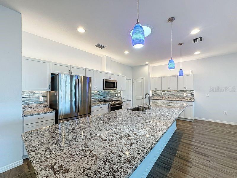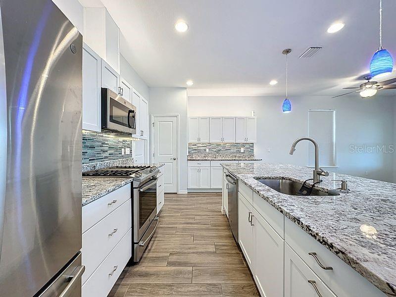 Move-in ready, energy efficient 3-bedroom, 2 bath home you won't want to miss. Open your 8’ designer glass front door and expect to be impressed! Step inside to find elegant tile-plank flooring through out and a spacious open concept great room that seamlessly connects the kitchen, dining and living areas – ideal for both relaxing and entertaining. The modern kitchen is a true showstopper, features a gas range, an oversized granite island, GE refrigerator, convenient pot and pan drawers, a solar tube that fills the space with natural light, pendant and canned lighting. The thoughtful layout and high-end finishes make this kitchen as functional as it is beautiful. The Primary suite is a true sanctuary. It is flooded with natural light, features a designer fan, blinds and accommodates oversized furniture. Your bathroom includes sleek finishes, dual sink vanities, frameless shower door, linen closet, and private water closet. To maximize storage and functionality, the primary walk-in closet features a custom designed built-in organizer with drawers, shelves and hanging areas. The oversized laundry room includes a Maytag washer and gas dryer and shelving. This impressive garage offers more than just parking. It features overhead storage racks, and the additional floor space provides flexibility for a workbench, hobby area, or even a golf cart. There is an efficient soft water system and solar attic fan. Step through sliding glass doors onto your personal oasis! This oversized screened and covered living space is designed for ultimate relaxation and sweeping views. The yard is beautifully landscaped with irrigation, mature plants, and concrete edging, offering a serene environment for relaxation. Trilogy Cascades of Groveland is a guard gated community centered around the 57,000 square ft. Magnolia House and focuses on exercise and entertainment. A full-service restaurant and bar, two gyms, indoor and outdoor pools, spas, a walking trail, dog park, tennis, pickle, and bocce ball await you. 50+ clubs, concerts, shows, demonstration kitchen, massage room, dance studio, poker lounge, golf simulator, billiards and more add to living your desired lifestyle. The HOA monthly fees include lawn/shrub maintenance, basic cable, internet with landline, home security monitoring, streetlights, street maintained gated front entrance and clubhouse amenities. With approval, the HOA allows residents between the ages of 45 to 54 approval if it has not reached the max permitted. Do not miss this opportunity to own a truly exceptional property. Schedule your private tour today and experience the epitome of refined living.