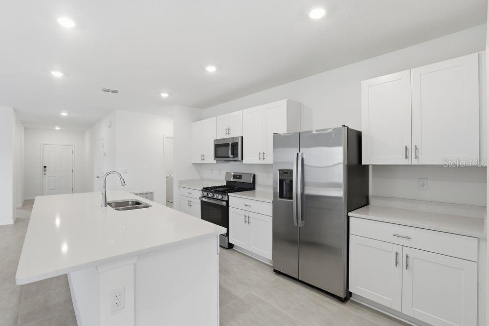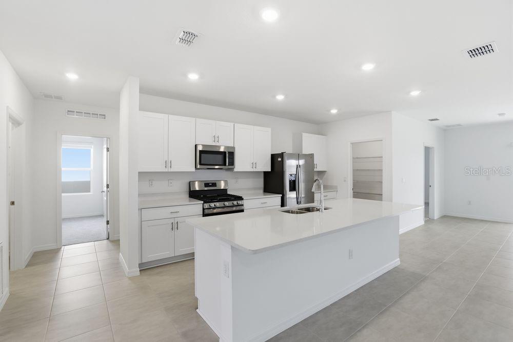 What's Special: Flat Lot | Covered Lanai | Single Level Living | White Cabinets. New Construction – Ready Now! Built by Taylor Morrison, America’s Most Trusted Homebuilder. Welcome to the Magnolia at 7468 Sandstone Drive in Waterstone! Step inside and enjoy an open, airy layout with a clear view through the heart of the home. The Magnolia plan offers a bright entertaining space that flows seamlessly from the dining area to the kitchen and great room, with sliding doors leading to the lanai for easy indoor-outdoor living. A spacious island, abundant counter space, and a walk-in pantry make the kitchen a dream for those who love to cook, while its central location keeps everyone connected. Three comfortable secondary bedrooms share two full baths, and the private primary suite is tucked at the back for peace and quiet. The suite features an L-shaped walk-in closet and a luxurious bath with a large shower, dual vanity, and private water closet. New single-family homes are now selling at Waterstone! Spanning over 400 acres, Waterstone seamlessly flows into the natural landscape of Groveland, Florida, just minutes from Clermont. Surrounded by the rolling hills of Lake County, residents can also enjoy nearby lakes including Cherry Lake and Lake Minneola. This community's premier location, on Villa City Road, offers convenient access to the Western Beltway, Florida’s Turnpike and State Roads 50 and 19. At home, you have access to the planned amenities including a pool, cabana, dog park, Nature Play Space and numerous National Wildlife Federation Monarch Butterfly Gardens. Additional Highlights include: quartz countertops and blinds. MLS#O6361524