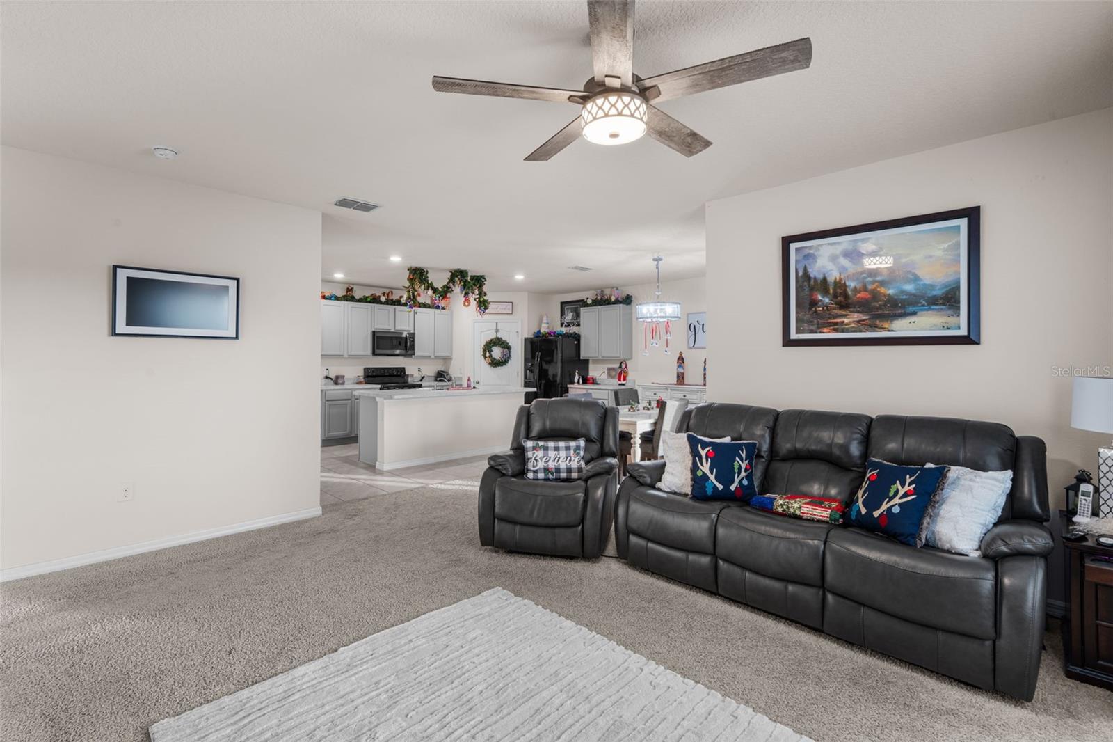 Welcome to this impeccably maintained 4-bedroom, 2-bathroom single-family home. The perfect opportunity for anyone seeking move-in-ready comfort and timeless appeal. Boasting a versatile and spacious floor plan, this residence offers an abundance of natural light and an inviting open-concept design that seamlessly connects the living, dining, and kitchen areas. At the heart of the home is a bright and airy island kitchen featuring ample cabinetry, generous counter space, and a layout that makes meal preparation and entertaining a joy. The entire home has been lovingly cared for, with numerous updates already completed. Retreat to the primary suite, where you’ll find a generously sized bedroom, a luxurious en-suite bathroom with raised double vanities, separate shower and tub, plus an enormous walk-in closet that provides exceptional storage. Additional bedrooms are well-proportioned and offer flexibility for guests, home offices, or hobby spaces. Storage abounds throughout the home with multiple closets, including spacious secondary closets and built-in organization. Step outside to enjoy the fully fenced backyard — ideal for privacy, pets, and outdoor gatherings. A convenient sprinkler system keeps the lawn lush year-round, while the expansive screened porch provides the perfect spot for morning coffee or evening relaxation, shielded from the elements. Ceiling fans in the main living areas and bedrooms, along with included window blinds, add comfort and convenience.