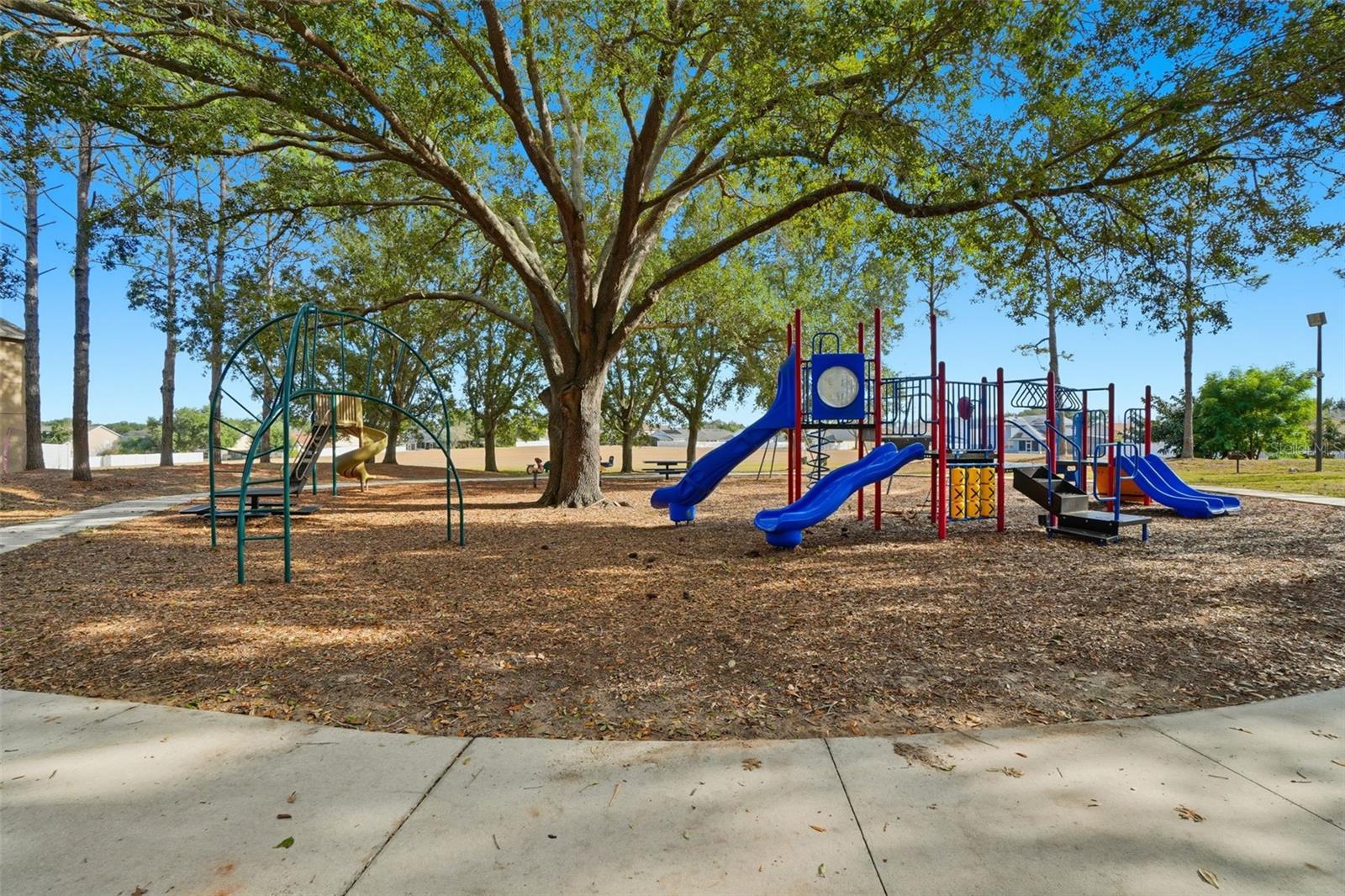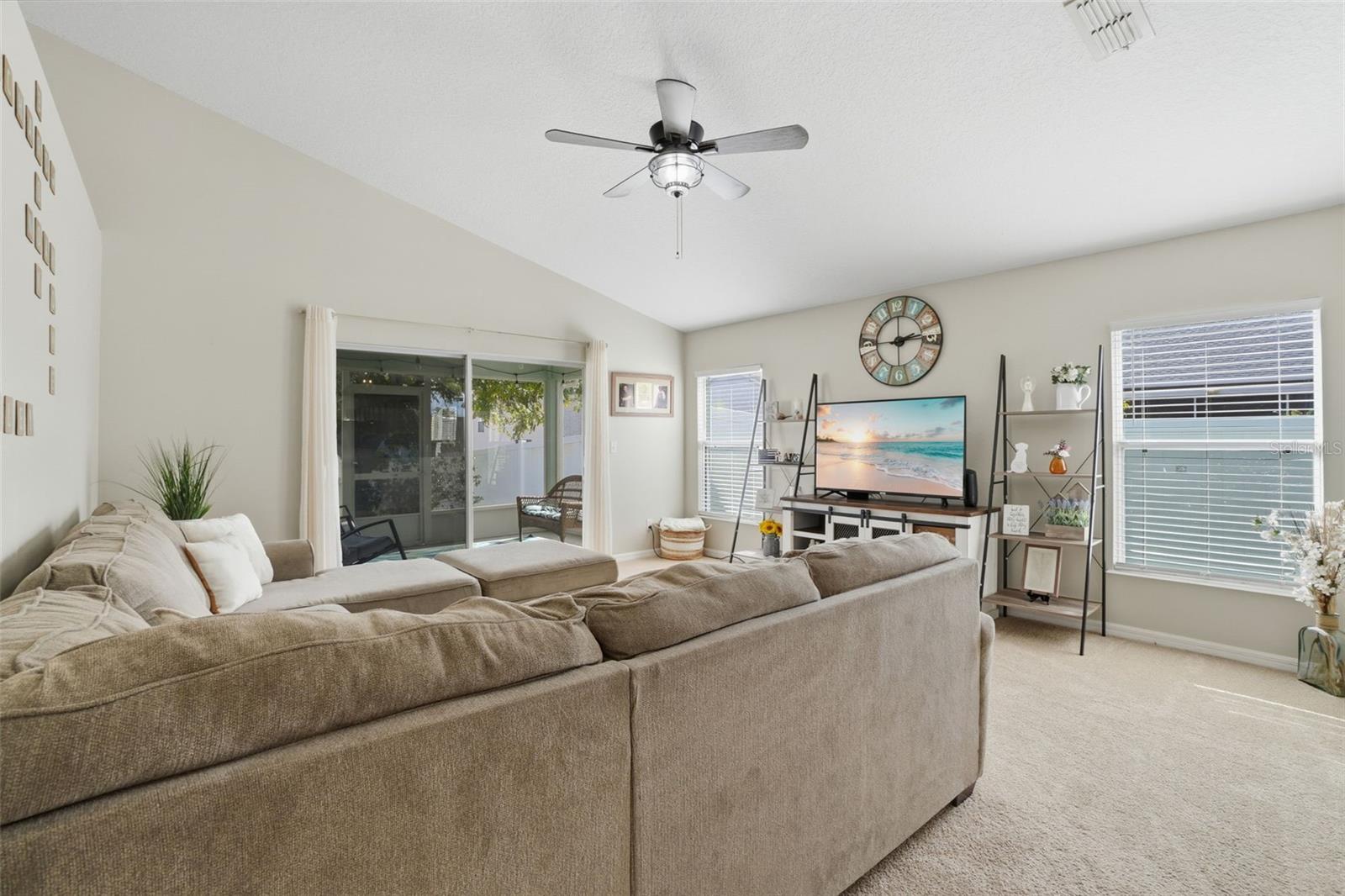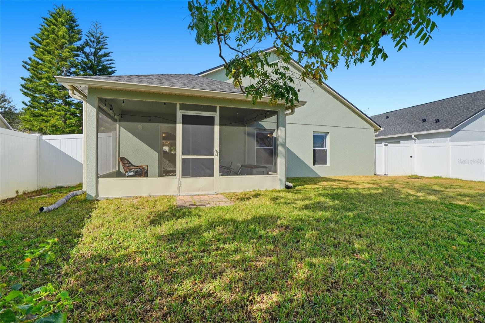 Welcome to Cherryridge at the Estates at Cherry Lake, a beautifully maintained 3 bedroom, 2 bath home offering 1,824 square feet of comfortable living in Lake County. Recent major updates include a brand NEW ROOF in 2025, FRESH EXTERIOR PAINT in 2025, a NEW A/C UNIT (2023), and all NEW WINDOW BLINDS (2025), providing peace of mind for years to come. The home is set on a spacious lot with NO REAR NEIGHBORS, mature trees out front, sidewalks throughout the community, and a quiet neighborhood feel. Upon entry, you are welcomed by an open and airy floor plan filled with natural light pouring in through the front windows. Updated interior paint and light fixtures complement the inviting layout, while ceramic tile, laminate flooring in the kitchen, and brand NEW CARPET THROUGHOUT (2026), create a comfortable and cohesive flow. Upon entry, you have convenient garage access, a dedicated laundry room, and a formal dining room currently in use as an office. The split bedroom layout offers added privacy. The large eat in kitchen is a true highlight, featuring stainless steel appliances including a NEW REFRIGERATOR (2024) and NEW OVEN (2021), wood cabinetry, tile backsplash, a NEW KITCHEN SINK (2021) with UPDATED FAUCETS (2021), and plenty of space for casual dining. A separate breakfast nook or formal dining room at the front of the home adds flexibility for entertaining or everyday meals. The spacious family room offers carpeted flooring, a ceiling fan, and sliding glass doors that open to the screened enclosed back porch. This private outdoor retreat overlooks the backyard framed by mature trees with no rear neighbors, creating a peaceful setting ideal for relaxing or enjoying the outdoors. Updated exterior lighting enhances curb appeal and evening ambiance. The primary suite is generously sized and thoughtfully designed, featuring a ceiling fan, a customized walk-in closet with BUILT-IN STORAGE (2022), and an en suite bathroom with ceramic tile flooring. The spacious primary bath includes dual sinks, a garden tub, and a separate shower stall. Bedrooms two and three feature carpet, ceiling fans, built in closets, and easy access to the second bathroom. Cherryridge at the Estates at Cherry Lake is a hidden gem in Lake County, loved for its scenic surroundings and outdoor lifestyle. Residents enjoy close proximity to Cherry Lake Park, Waterfront Park, beautiful lakes, fishing spots, walking and bike trails, and rolling hills that define the area. The community is also conveniently located near great schools, shopping, dining, and everyday amenities, offering a perfect blend of peaceful living and accessibility. Schedule your private showing today!