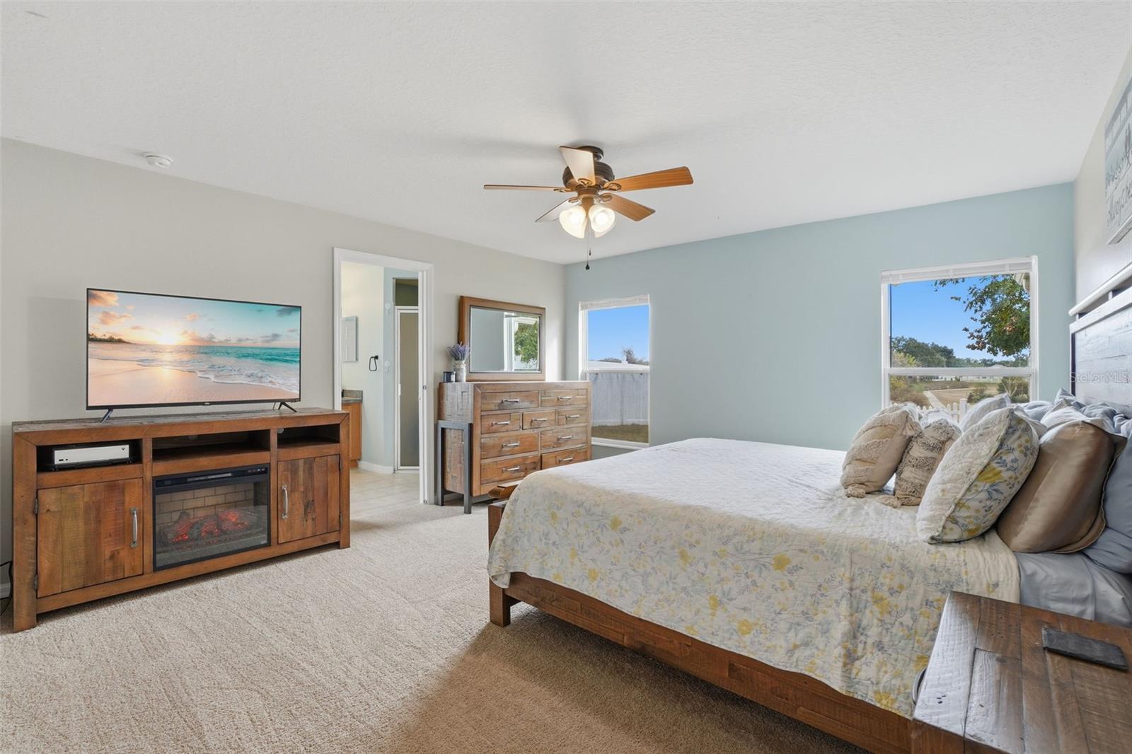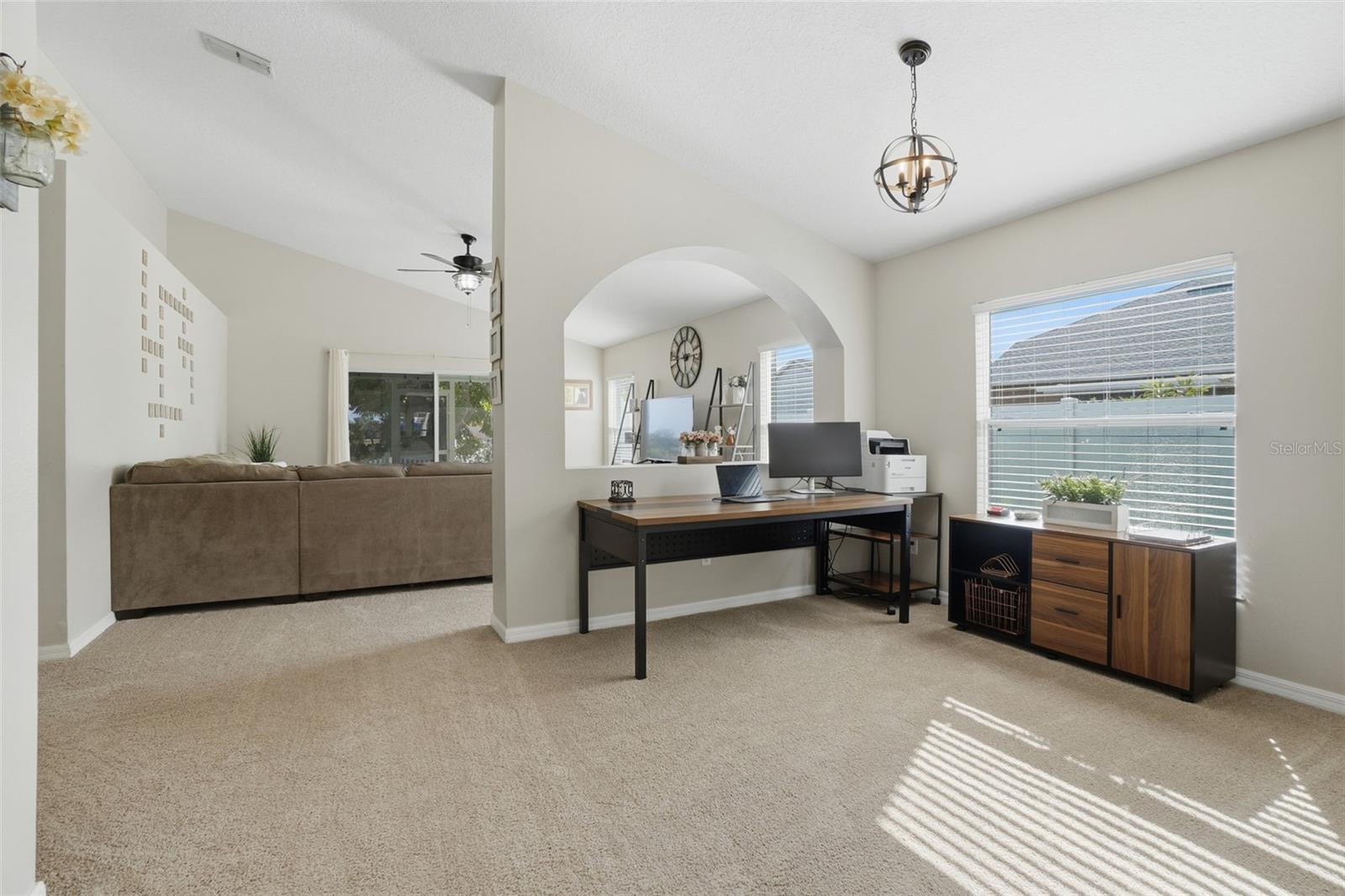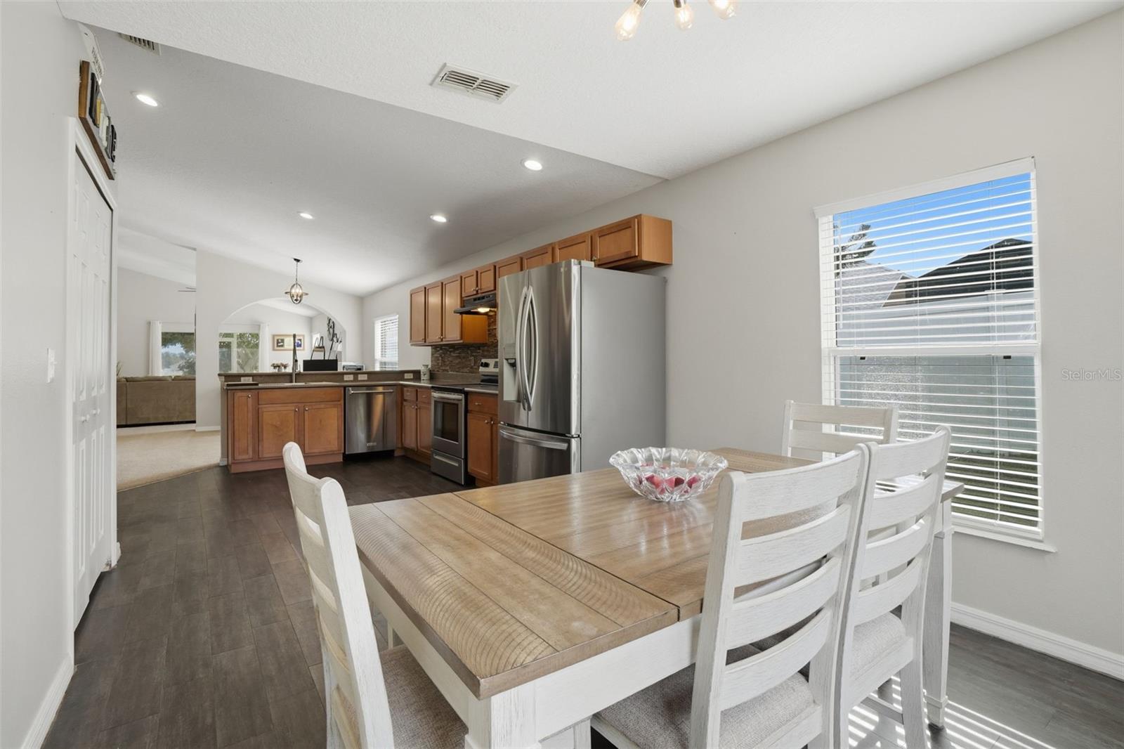 Welcome to Cherryridge at the Estates at Cherry Lake, a beautifully maintained 3 bedroom, 2 bath home offering 1,824 square feet of comfortable living in Lake County. Recent major updates include a brand NEW ROOF in 2025, FRESH EXTERIOR PAINT in 2025, a NEW A/C UNIT (2023), and all NEW WINDOW BLINDS (2025), providing peace of mind for years to come. The home is set on a spacious lot with NO REAR NEIGHBORS, mature trees out front, sidewalks throughout the community, and a quiet neighborhood feel. Upon entry, you are welcomed by an open and airy floor plan filled with natural light pouring in through the front windows. Updated interior paint and light fixtures complement the inviting layout, while ceramic tile, laminate flooring in the kitchen, and brand NEW CARPET THROUGHOUT (2026), create a comfortable and cohesive flow. Upon entry, you have convenient garage access, a dedicated laundry room, and a formal dining room currently in use as an office. The split bedroom layout offers added privacy. The large eat in kitchen is a true highlight, featuring stainless steel appliances including a NEW REFRIGERATOR (2024) and NEW OVEN (2021), wood cabinetry, tile backsplash, a NEW KITCHEN SINK (2021) with UPDATED FAUCETS (2021), and plenty of space for casual dining. A separate breakfast nook or formal dining room at the front of the home adds flexibility for entertaining or everyday meals. The spacious family room offers carpeted flooring, a ceiling fan, and sliding glass doors that open to the screened enclosed back porch. This private outdoor retreat overlooks the backyard framed by mature trees with no rear neighbors, creating a peaceful setting ideal for relaxing or enjoying the outdoors. Updated exterior lighting enhances curb appeal and evening ambiance. The primary suite is generously sized and thoughtfully designed, featuring a ceiling fan, a customized walk-in closet with BUILT-IN STORAGE (2022), and an en suite bathroom with ceramic tile flooring. The spacious primary bath includes dual sinks, a garden tub, and a separate shower stall. Bedrooms two and three feature carpet, ceiling fans, built in closets, and easy access to the second bathroom. Cherryridge at the Estates at Cherry Lake is a hidden gem in Lake County, loved for its scenic surroundings and outdoor lifestyle. Residents enjoy close proximity to Cherry Lake Park, Waterfront Park, beautiful lakes, fishing spots, walking and bike trails, and rolling hills that define the area. The community is also conveniently located near great schools, shopping, dining, and everyday amenities, offering a perfect blend of peaceful living and accessibility. Schedule your private showing today!