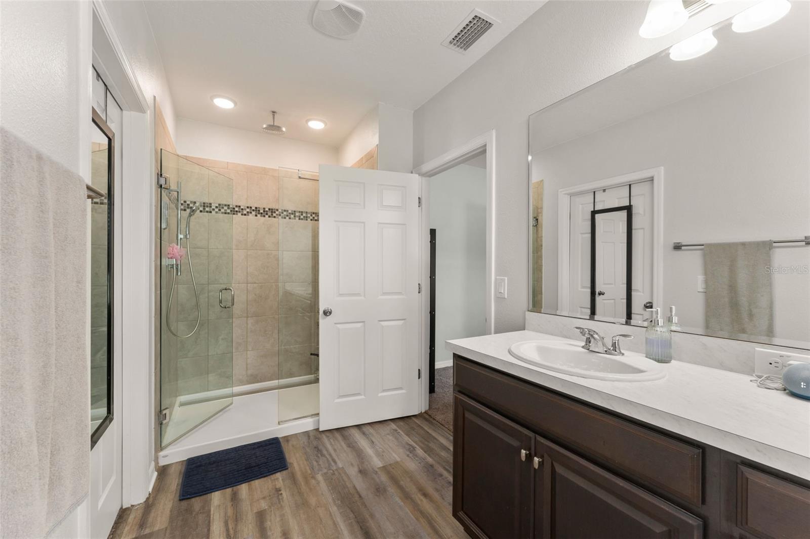 **This house comes with a REDUCED RATE through the seller's preferred lender. This is a lender-paid rate buydown that reduces the buyer's interest rate and monthly payment.** Welcome to 9685 Early Loop in Groveland, a well maintained 4 bedroom, 2 bathroom home that offers 1,713 square feet of heated living space on a 5,501 square foot lot, with a comfortable and functional layout. The main living areas feature luxury vinyl flooring, while the bedrooms are finished with carpet, creating a balance of durability and comfort. The primary bedroom includes a private en suite bathroom and a walk in closet, providing a quiet retreat with ample storage. The second bath features dual sinks, a separate water closet, and a tub, while the additional bedrooms offer flexibility for family, guests, or a home office. Enjoy outdoor living in the private, fully fenced backyard, ideal for relaxing or entertaining. The covered patio extends the living space outdoors and is perfect for enjoying Florida weather year round. Cypress Oaks Phase II offers a convenient Groveland location close to shopping, dining, schools, and major roadways, making this home an excellent opportunity for comfortable Florida living.
