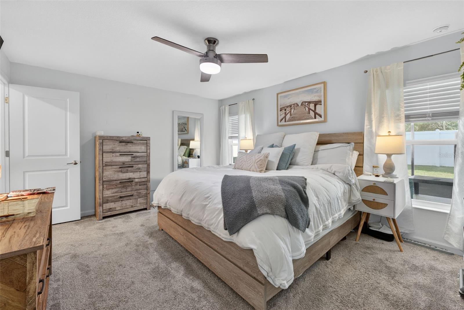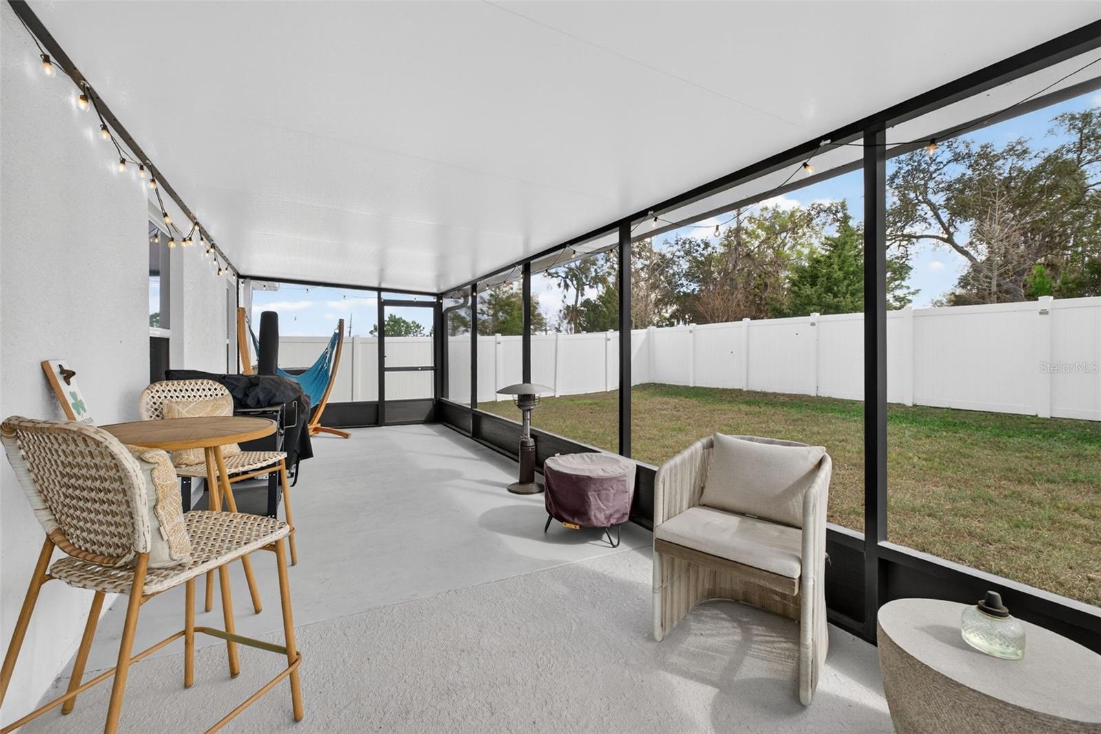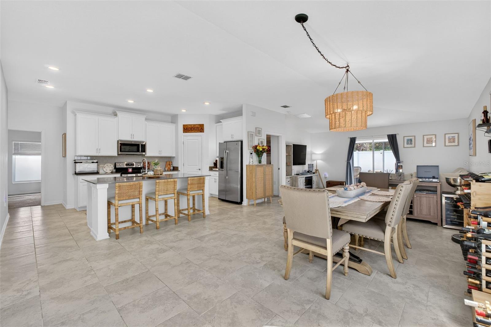 One or more photo(s) has been virtually staged. Welcome to this beautifully upgraded 2022 Lennar Harrisburg model, offering 4 bedrooms and 2 bathrooms with a bright, open-concept layout designed for both everyday living and effortless entertaining. From the moment you walk in, you’ll notice the abundance of natural light, modern finishes, and thoughtful upgrades that make this home truly move-in ready. The spacious kitchen serves as the heart of the home and features hardwood cabinets with upgraded hardware, a stylish upgraded backsplash, a large stainless steel basin sink, and stainless steel GE appliances. The oversized island provides plenty of space for meal prep, casual dining, or gathering with family and friends, while the open layout allows the kitchen to flow seamlessly into the dining and living areas, creating a warm and inviting atmosphere. Throughout the home, new light fixtures and ceiling fans have been installed to enhance both comfort and style. Both bathrooms showcase quartz countertops paired with updated modern faucets, adding a clean and polished look. The primary suite offers a relaxing retreat, complete with a spacious layout and an upgraded shower head with built-in filtration, providing a spa-like experience. Step outside and enjoy the added privacy of having no rear neighbors. The backyard has been thoughtfully enhanced with several upgrades including new gutters, a fully installed vinyl fence with gates, and photosensitive exterior lighting that automatically illuminates the property in the evening. A Ring doorbell and floodlight camera in the front of home provide added security and convenience, while the 4-inch slab screened lanai creates the perfect space to enjoy morning coffee, unwind after a long day, or entertain guests outdoors without worrying about the elements. Additional conveniences include a garage door opener that can be controlled directly through the MyQ app, making access simple and secure. The home is also equipped with solar panels designed to help reduce monthly energy costs and improve overall energy efficiency. As part of a well-maintained community, residents enjoy access to fantastic HOA amenities including a resort-style community pool with splash park, a fully equipped fitness center, dog park, and multiple playgrounds, providing something for everyone to enjoy without ever leaving the neighborhood. With modern upgrades, energy-efficient features, and access to outstanding community amenities, this home truly offers comfort, convenience, and value all in one. Schedule your private showing today and come see everything this exceptional home has to offer!
