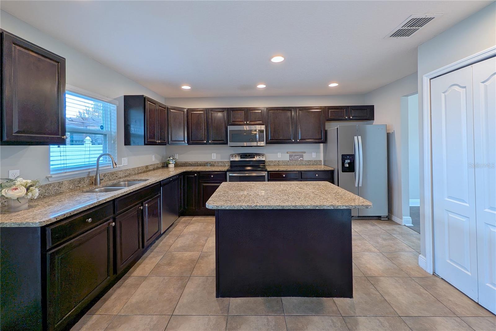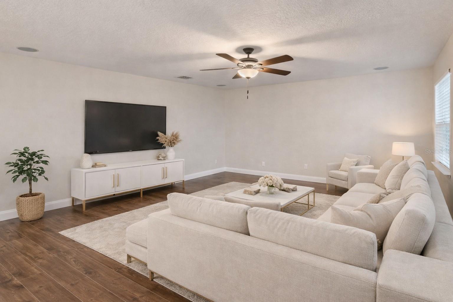 One or more photo(s) has been virtually staged. Stunning 2-Story Home in Prime Location! Welcome to your dream home nestled conveniently on the border of Groveland and Clermont! This spacious 2-story residence boasts a large fully fenced yard, perfect for outdoor activities and gatherings. Enjoy the fresh appeal of freshly painted exterior and interior walls, along with beautifully refreshed kitchen and bathroom cabinets. Step inside to discover: - Expansive Living Space: A huge living room equipped with a surround sound system, ideal for entertaining or cozy movie nights. - Gourmet Kitchen: Bright and airy with an eat-in area, plus a brand-new dishwasher to make meal prep a breeze. - Separate Dining Room: Perfect for formal dinners or casual family meals. - Private Study Area: Perfect for an office or an additional bedroom downstairs. - Bedrooms Galore: All bedrooms are located upstairs, including a spacious primary suite featuring two immense walk-in closets! Three additional generously sized bedrooms share a modern hallway bath. Situated within short distance to South Lake High School and surrounded by ample shopping and dining options, this home offers the perfect blend of comfort and convenience. Don’t miss out on this incredible opportunity—schedule your showing today!