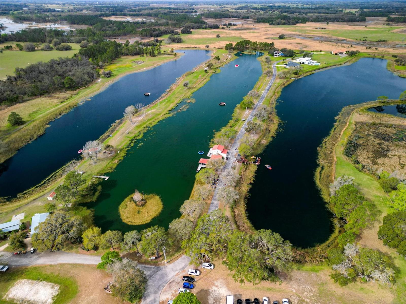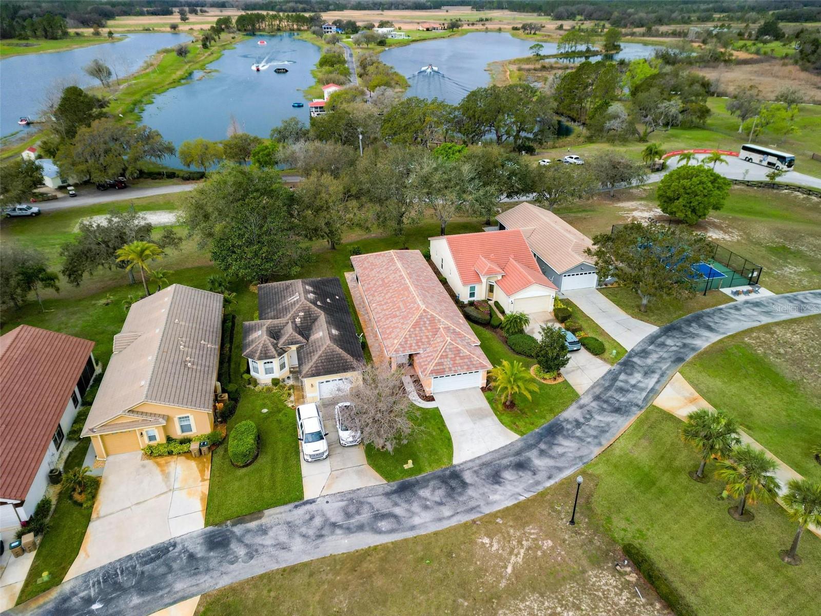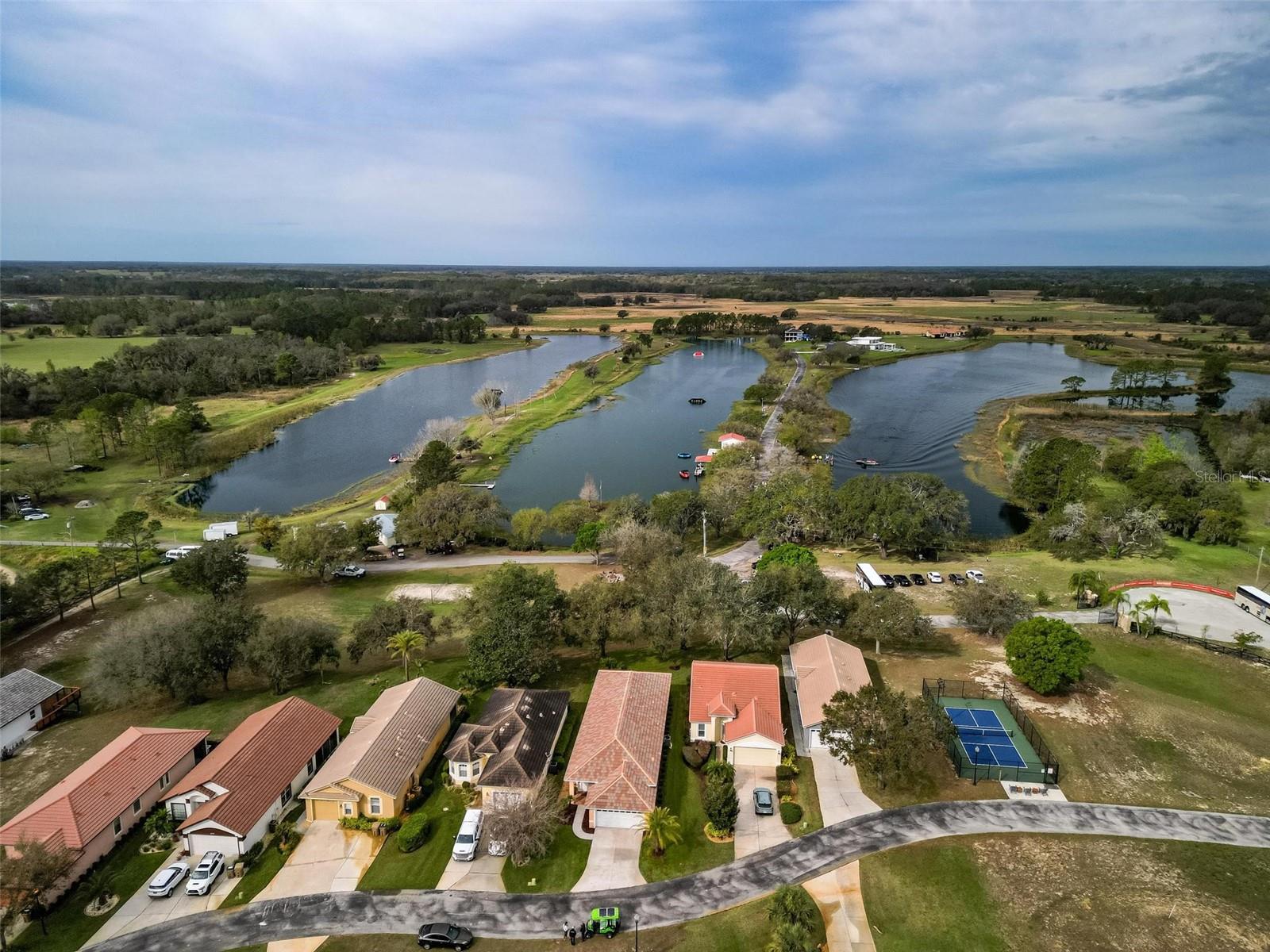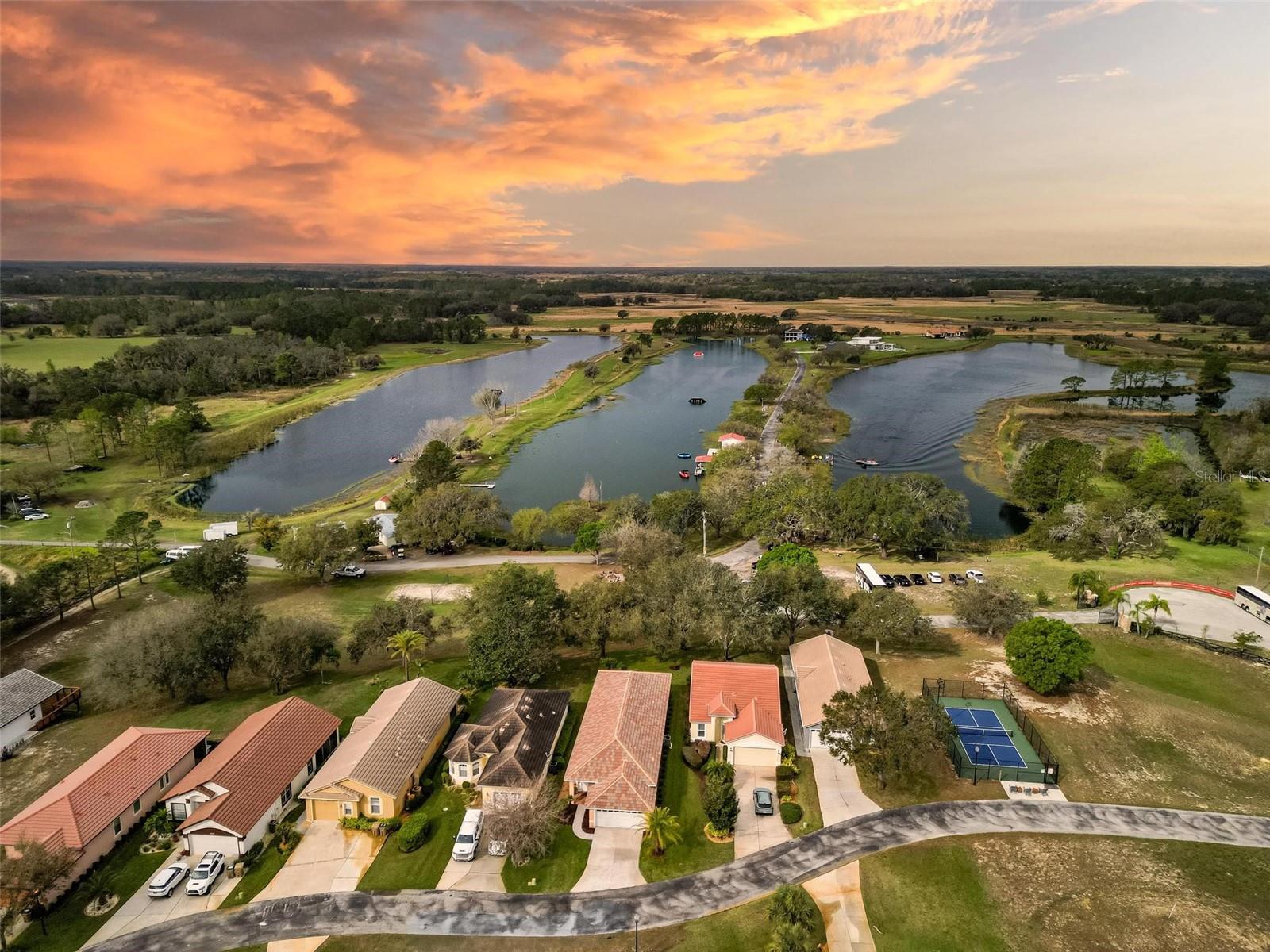 Nestled within a gated community, this stunning house offers an unparalleled lifestyle surrounded by natural beauty and endless recreational opportunities. Overlooking three pristine private water ski lakes, the property boasts breathtaking westward views, perfect for enjoying vibrant sunsets from the comfort of your screened-in porch. These exclusive lakes, accessible year-round with an annual or lifetime membership, come complete with three beautifully new Nautique boats and are part of the renowned Jack Travers Ski School, where world-champion coaching in all water skiing disciplines is at your fingertips. The home sits on a sprawling lot that extends down to the lakes, enveloped by over 100 acres of scenic walking and biking trails. The community enhances the experience with an array of amenities, including a pickleball court, playground and cozy fire pit by the lake. Beyond the lakeside allure, new pavers, outdoor lighting, and an upgraded irrigation system elevate the meticulously maintained grounds. Inside, this well-appointed residence features 10ft ceilings and an open-concept floor plan that seamlessly blends comfort and style. Spanish tile floors flow throughout the main living areas, while fresh laminate flooring in the bedrooms adds a modern touch. The house has been thoughtfully upgraded with a new HVAC system, including all-new ductwork and spray foam insulation in the attic for maximum energy efficiency. A new AC unit ensures year-round comfort, complemented by a whole-house iron filtration system. The durable tile roof and spacious two-car garage further enhance the home’s appeal. Owner also added a Fire Sprinkler System that lowers insurance premiums by a ton. Step onto the screened-in porch to take in the serene lake views, or explore the unique opportunity to short-term rent the property through Jack Travers Ski School—an option that could cover your mortgage and then some. This house isn’t just a home; it’s a gateway to a vibrant, active lifestyle in a one-of-a-kind setting. Also available on the property is Paddle Boarding, Kayaking, Swimming, Basketball, Volleyball court and of course its a dog friendly environment.