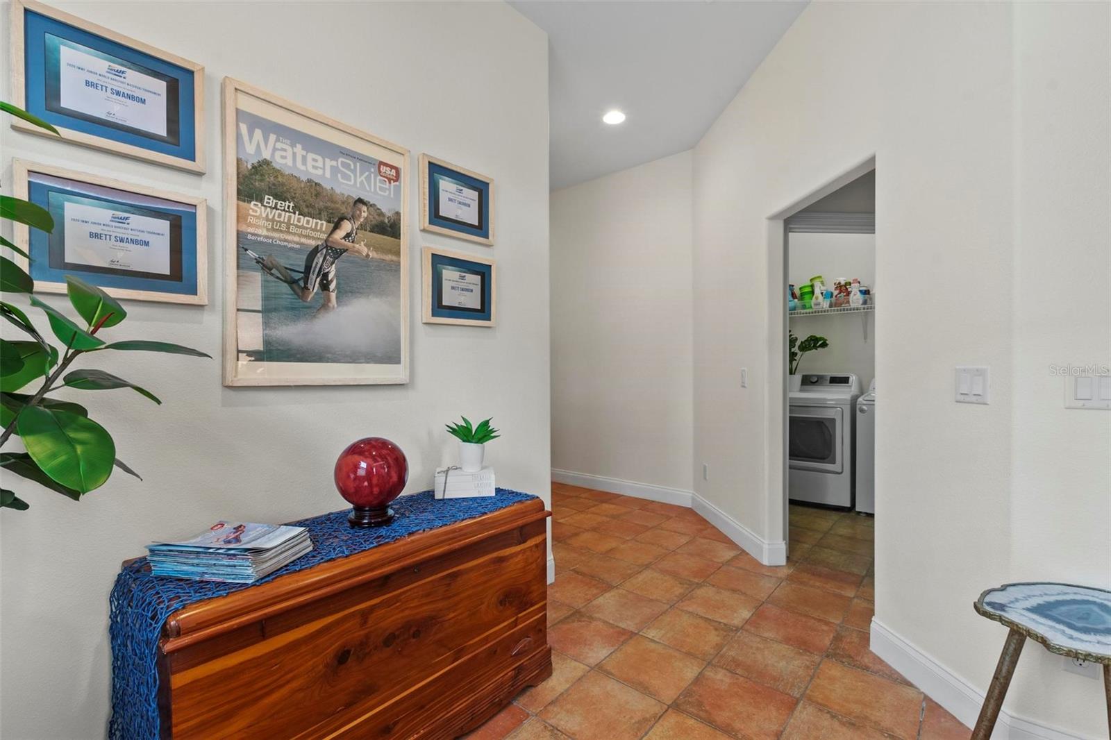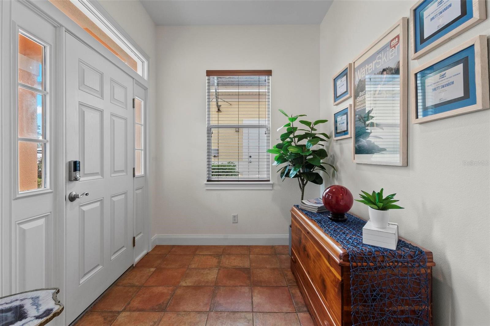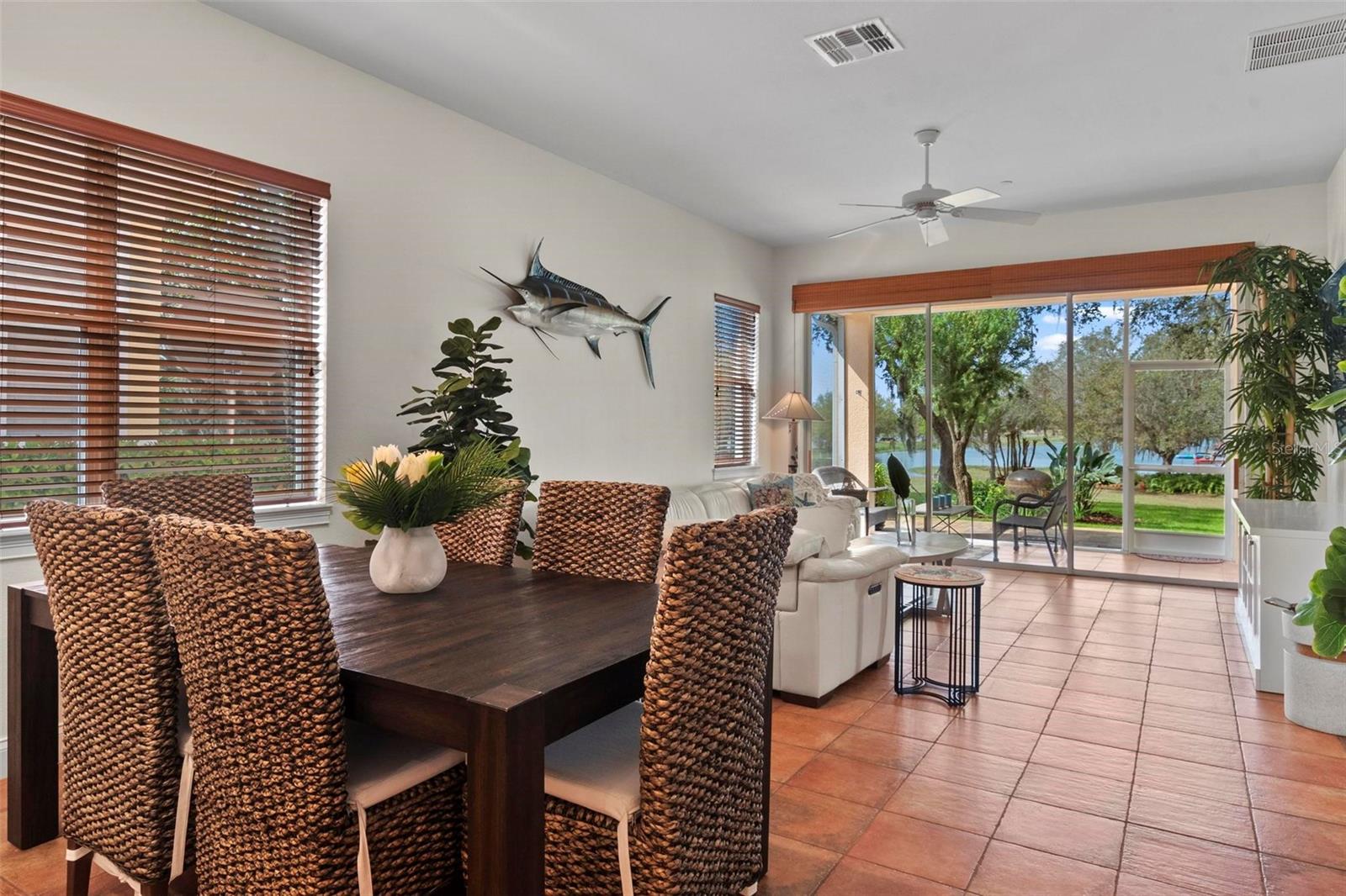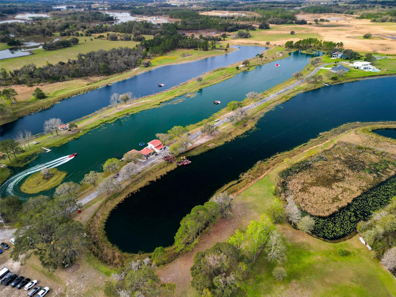 Nestled within a gated community, this stunning house offers an unparalleled lifestyle surrounded by natural beauty and endless recreational opportunities. Overlooking three pristine private water ski lakes, the property boasts breathtaking westward views, perfect for enjoying vibrant sunsets from the comfort of your screened-in porch. These exclusive lakes, accessible year-round with an annual or lifetime membership, come complete with three beautifully new Nautique boats and are part of the renowned Jack Travers Ski School, where world-champion coaching in all water skiing disciplines is at your fingertips. The home sits on a sprawling lot that extends down to the lakes, enveloped by over 100 acres of scenic walking and biking trails. The community enhances the experience with an array of amenities, including a pickleball court, playground and cozy fire pit by the lake. Beyond the lakeside allure, new pavers, outdoor lighting, and an upgraded irrigation system elevate the meticulously maintained grounds. Inside, this well-appointed residence features 10ft ceilings and an open-concept floor plan that seamlessly blends comfort and style. Spanish tile floors flow throughout the main living areas, while fresh laminate flooring in the bedrooms adds a modern touch. The house has been thoughtfully upgraded with a new HVAC system, including all-new ductwork and spray foam insulation in the attic for maximum energy efficiency. A new AC unit ensures year-round comfort, complemented by a whole-house iron filtration system. The durable tile roof and spacious two-car garage further enhance the home’s appeal. Owner also added a Fire Sprinkler System that lowers insurance premiums by a ton. Step onto the screened-in porch to take in the serene lake views, or explore the unique opportunity to short-term rent the property through Jack Travers Ski School—an option that could cover your mortgage and then some. This house isn’t just a home; it’s a gateway to a vibrant, active lifestyle in a one-of-a-kind setting. Also available on the property is Paddle Boarding, Kayaking, Swimming, Basketball, Volleyball court and of course its a dog friendly environment.