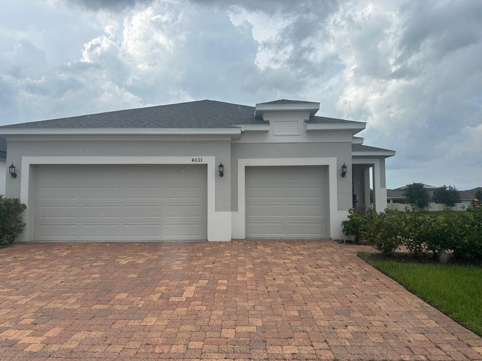 ***** This spectacular ***** 4 Bedrooms, 3 full bathrooms, with open concept living and space for everyone. You and your guests will be welcomed by the elegant pavers, craftsman front porch and lited entry door. The elevated details in the kitchen, solid wood cabinets, decorative cabinet hardware, backsplash, stainless steel appliances. Luxury vinyl plank flooring throughout the home. Master and hall bathroom include decorative subway shower tiles floor to ceiling, patterned tile flooring, and quality Moen fixtures. Step out the French doors to enjoy a serene view from the shade of your covered lanai. Community tot lot just a couple lots away. Excellent location with quick access to Florida's Turnpike and close proximity to the Clermont Chain of Lakes, community parks & more.