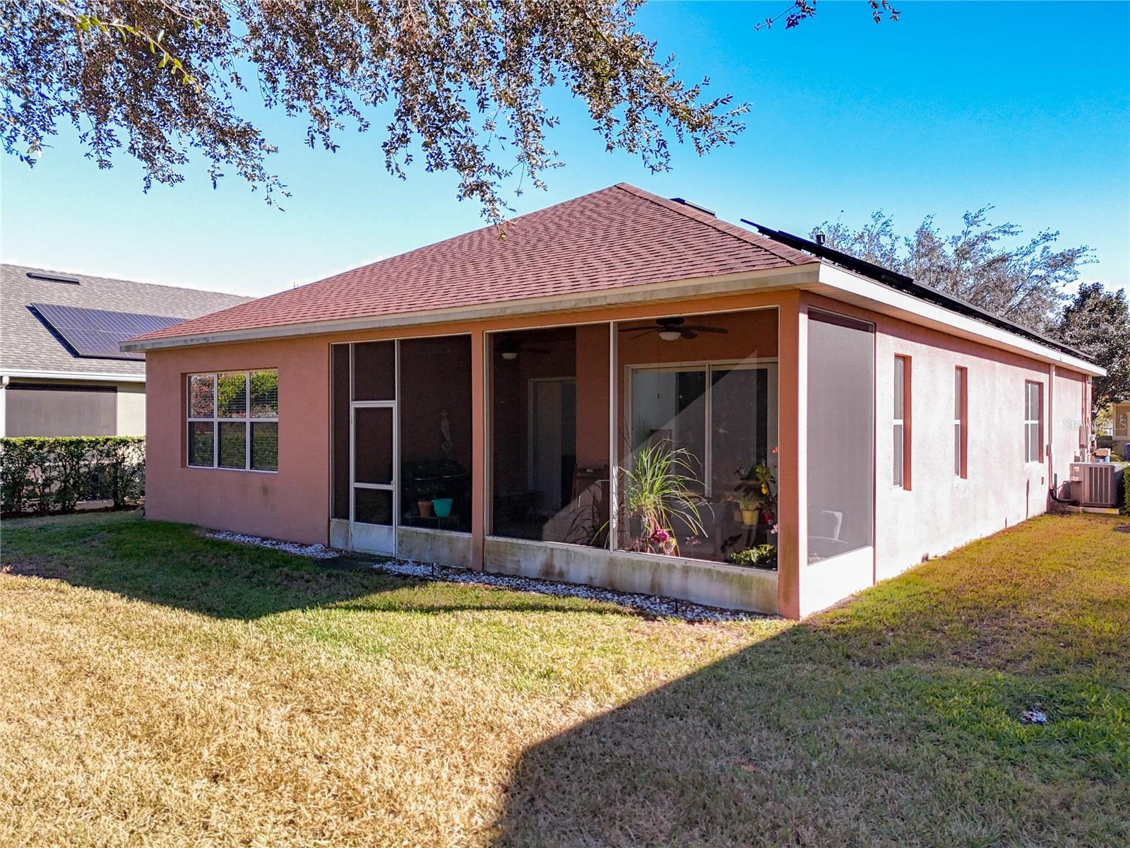 **SELLER MOTIVATED. **Welcome to one of the best 55+ communities in Central Florida! This adorable 2/2 plus office home has all the features “The Charlotte” model. The home is just steps away from the Renown Clubhouse at Trilogy. The home feature a front cover porch and back covered and screened porch. To the Right you have one bedroom, the den and second bathroom. The Master bedroom is in the back of the house which features a large walk-in closet, Master Bath has a walk-in shower, garden tub and vanity with dual sinks. On the Left side of the house you have the eat-in Kitchen, separate Dining room and laundry room. In the middle is the you will find the large Family room. As you pass through the Laundry room to go out to the Garage, where there is lots of storage. Residents can enjoy several amenities, including a community indoor and outdoor pool, a fantastic restaurant, a fully equipped fitness center, live entertainment, dance and yoga classes, a culinary kitchen, access to tennis and pickleball courts, and more. NEW ROOF 2022/ NEW AIR CONDITIONER, SOLAR PANEL PAY OFF, ELECTRICAL BILL IS ONLY $35.00