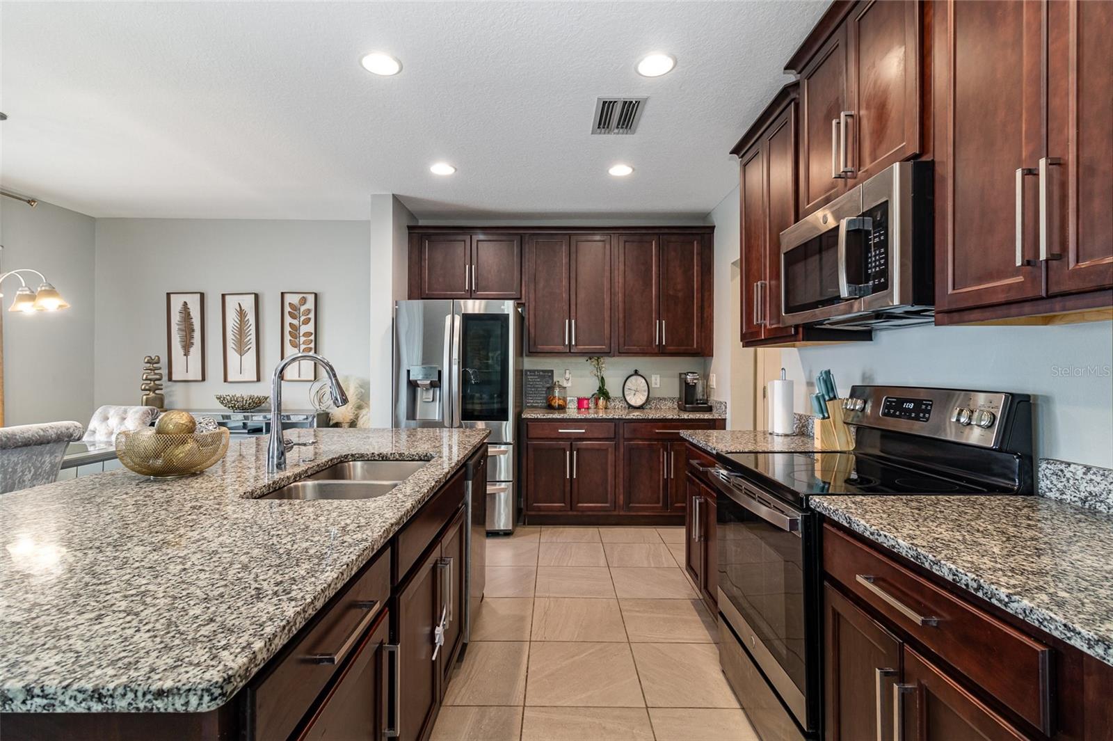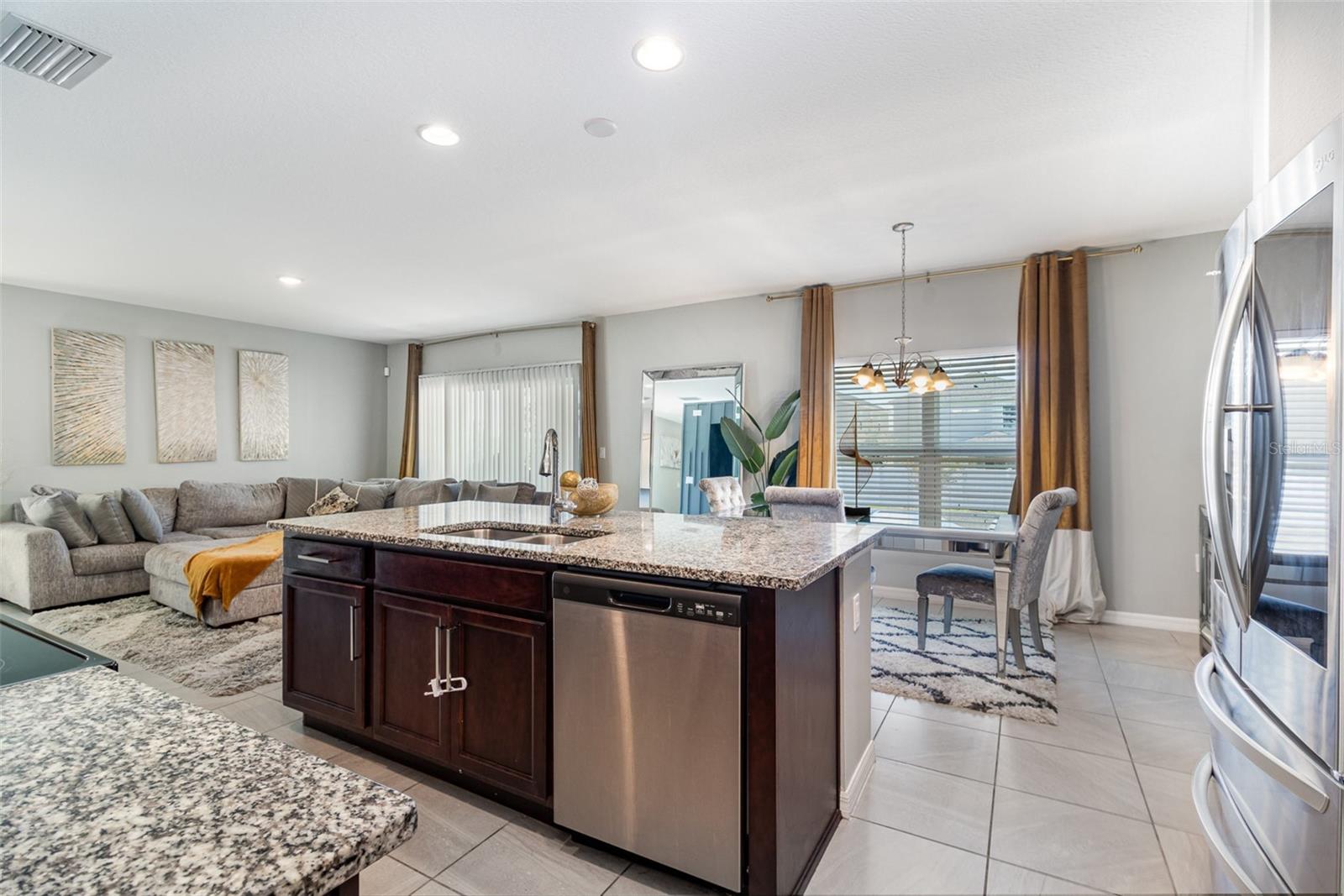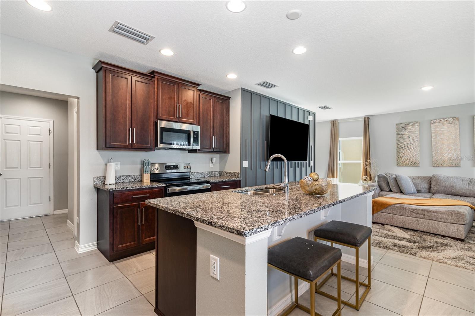 Welcome to your dream home in beautiful Groveland, FL! This immaculate 4-bedroom, 2.5-bath residence showcases every upgrade imaginable—from gleaming granite countertops to gorgeous flooring throughout the first floor. The spacious kitchen is a true showstopper, featuring 42-inch cabinets with elegant crown molding, stainless steel appliances, and a layout perfect for entertaining. Designed with modern living in mind, the home offers a stylish den on the first floor—ideal for a home office, playroom, or guest space. The custom-designed interior walls bring a sleek, contemporary flair with thoughtfully chosen colors that enhance the home’s warmth and character. Step outside to find beautifully maintained grounds that offer both curb appeal and space for outdoor enjoyment. Located just minutes from fantastic dining options, this home blends comfort, convenience, and style—making it the perfect fit for a growing family. Don't miss your opportunity to own this move-in-ready gem in one of Groveland's most desirable communities!