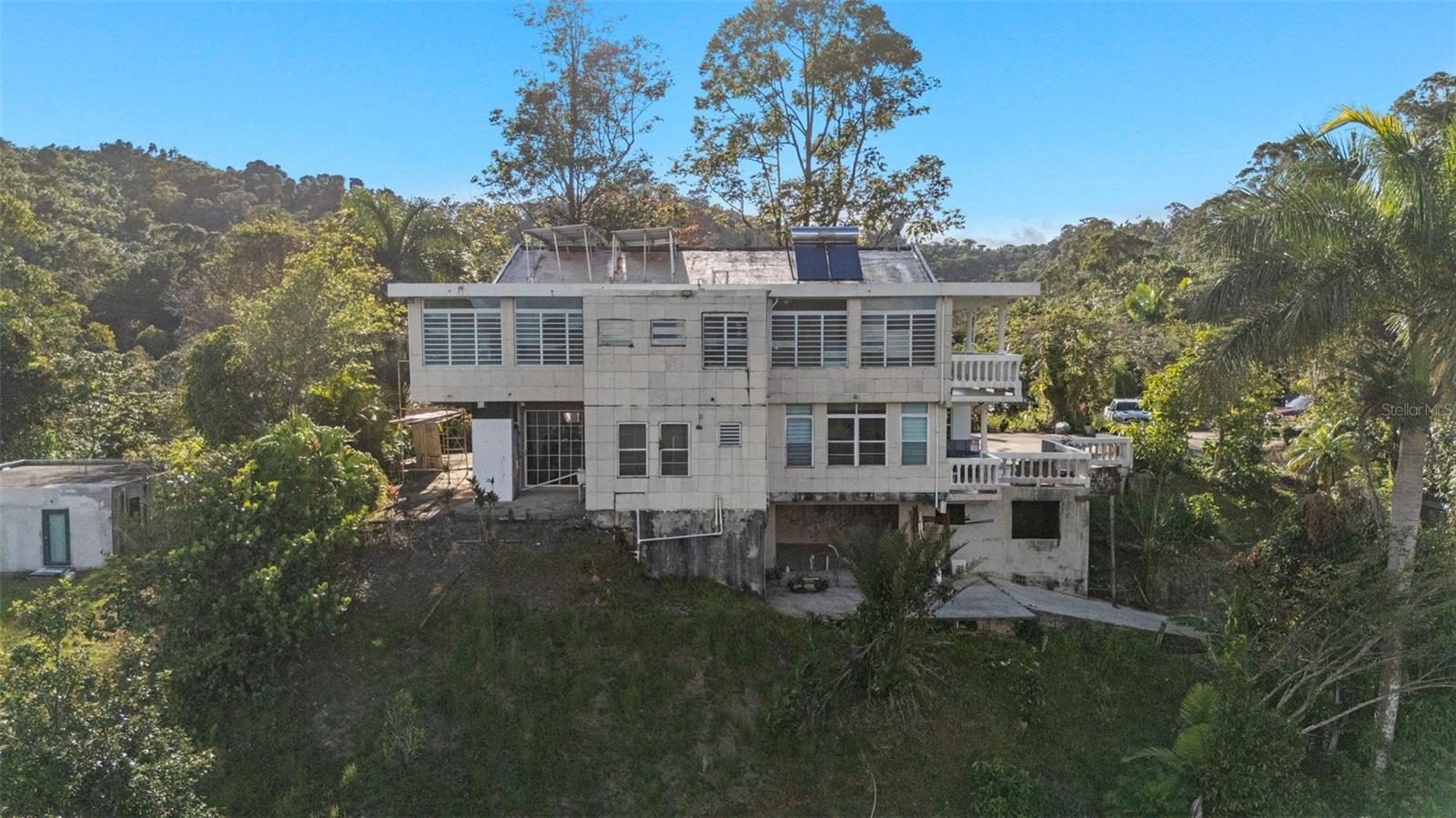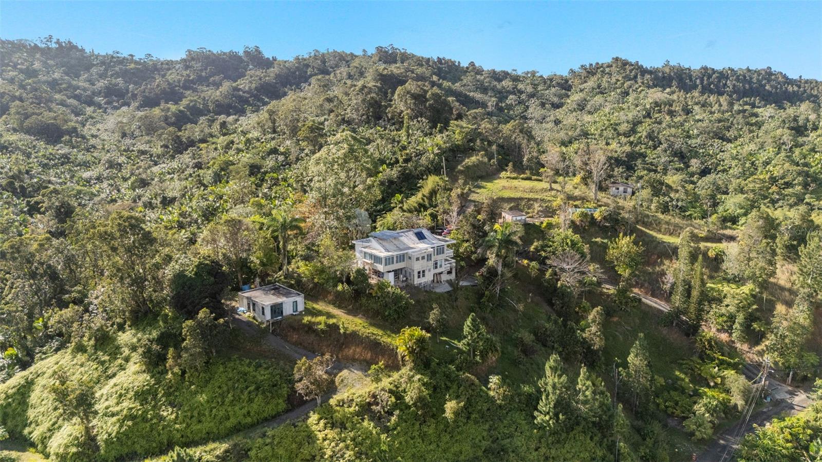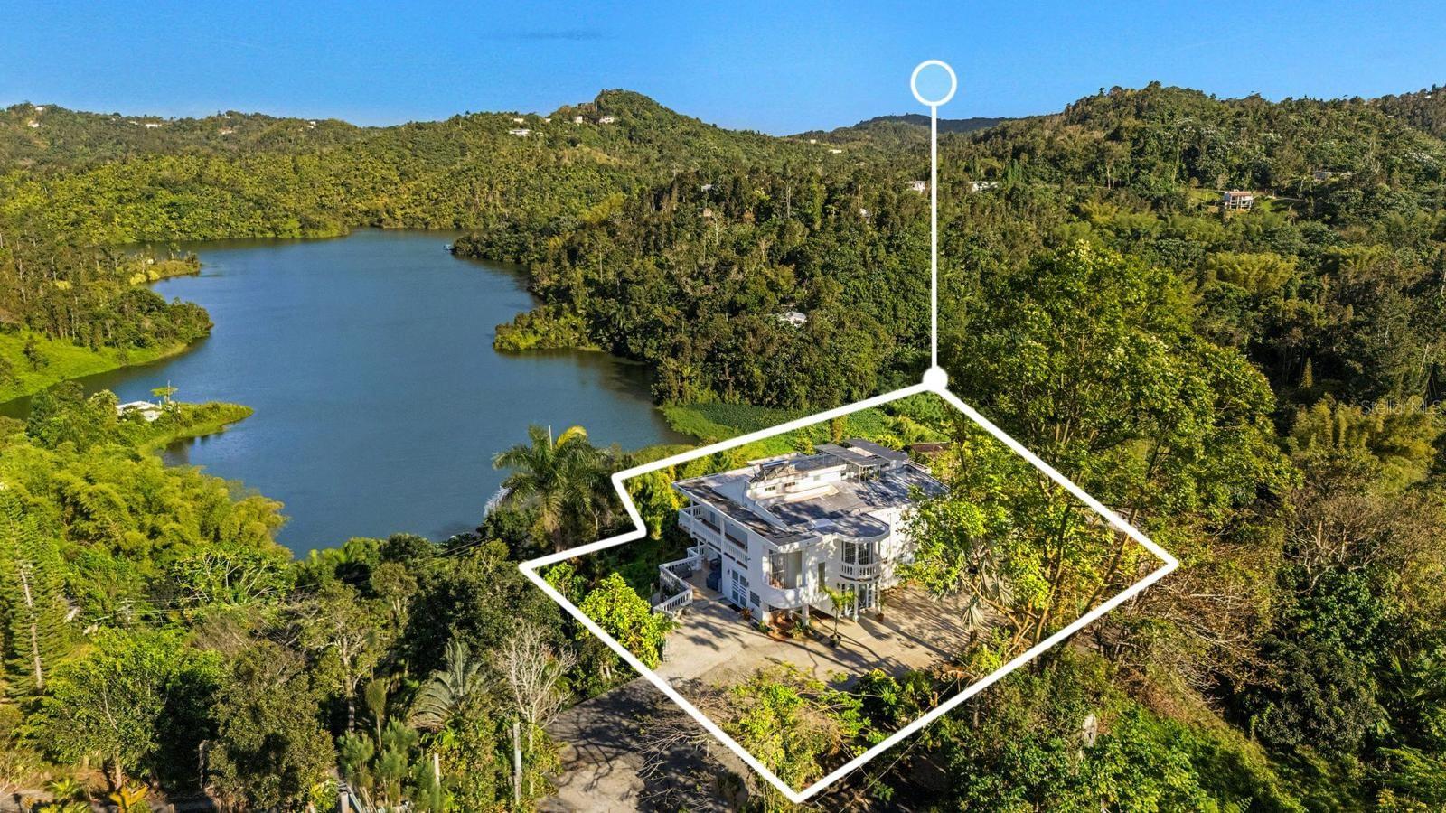 A rare find at the meeting point of forest, lake, and sky. Nestled within the Carite Forest reserve in Guayama, Puerto Rico, this 2.5-acre estate lot sits above Lago Carite with panoramic views that shift with the clouds and the season. One of the last buildable parcels in this private enclave, an opportunity that rarely reaches the open market. The existing two-story structure spans approximately 5,000 sq ft across three distinct levels. The entry floor offers a self-contained apartment: open living and kitchen, one bedroom, one bathroom, and a terrace framing the lake. Above it, an expansive open-plan living, dining, and kitchen space opens onto a generous balcony — joined by four bedrooms and four and a half bathrooms, all oriented toward the water and the forest canopy. Below grade, a full basement awaits conversion, a private studio, a guest suite, or the operational heart of a hospitality concept. The setting lends itself equally to a one-of-a-kind private residence or a boutique accommodation experience, a nature retreat, an eco-lodge, or a wellness hideaway. Puerto Rico's mountain interior is increasingly sought after by those who want something the coast cannot offer: elevation, silence, mist, and the kind of view that resets the mind. This is a property for someone with a vision. The land, the structure, and the setting are all here. What happens next is entirely yours to decide.