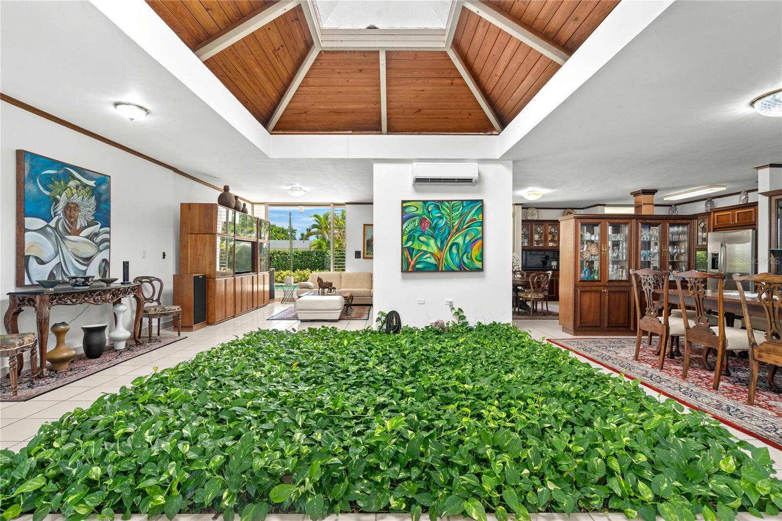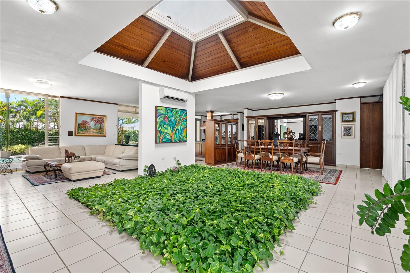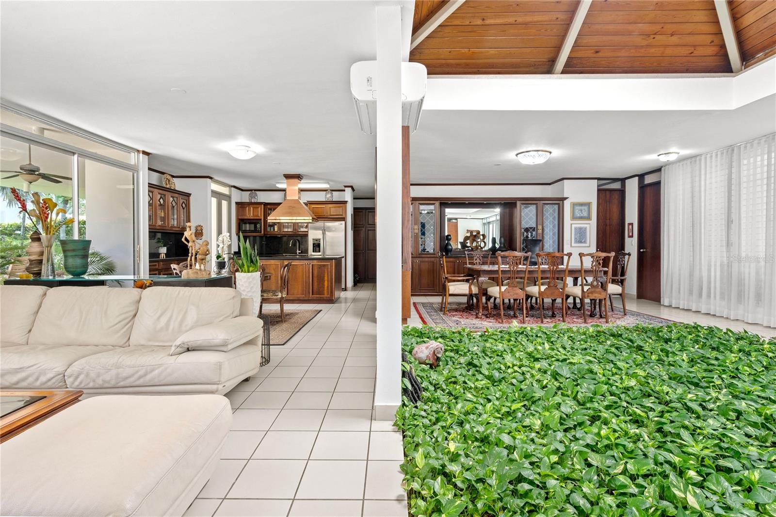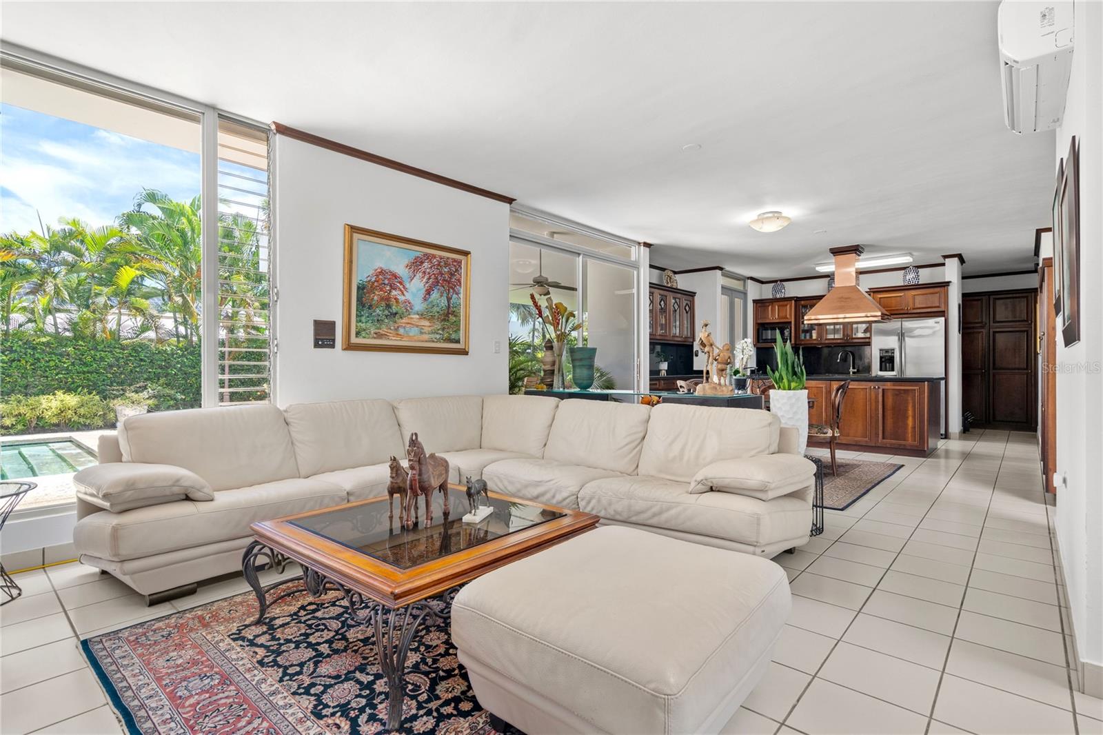 This glamorous property is located in a gated community in Guaynabo, La Villa de Torrimar. Modern tropical home with an open layout design. This property is a MODEL 1, built on a 1,079 sq mt lot and has 4,500 square feet of construction area. The residence features high ceilings, glass windows that provide natural light, and glass doors that open to a tropical terrace, a gazebo and a stunning swimming pool area. Spectacular landscaped garden filled with lush vegetation. Perfect home for entertaining family and friends. Remodeled kitchen with granite countertops and top of the line appliances. This home offers 5 bedrooms, 4 full bathrooms and a powder room. Luxurious Master bedroom overlooking the pool with an en-suite bathroom and walking closet. Three spacious bedrooms and one additional room ideal for office, playroom or guest room with an ensuite bathroom. Laundry room and a garage for two cars. For your convenience this home also offers : 27k Diesel Generator with a capacity of 250 gallons0, 3 inverters a/c units, 3 split a/c units. Exclusively for La Villa de Torrimar residents enjoyment: 24/7 security, fitness room, activity room, beach tennis courts, basketball, tennis courts, volleyball courts and playground area. Conveniently located close to private schools, shopping centers and other places of interest.