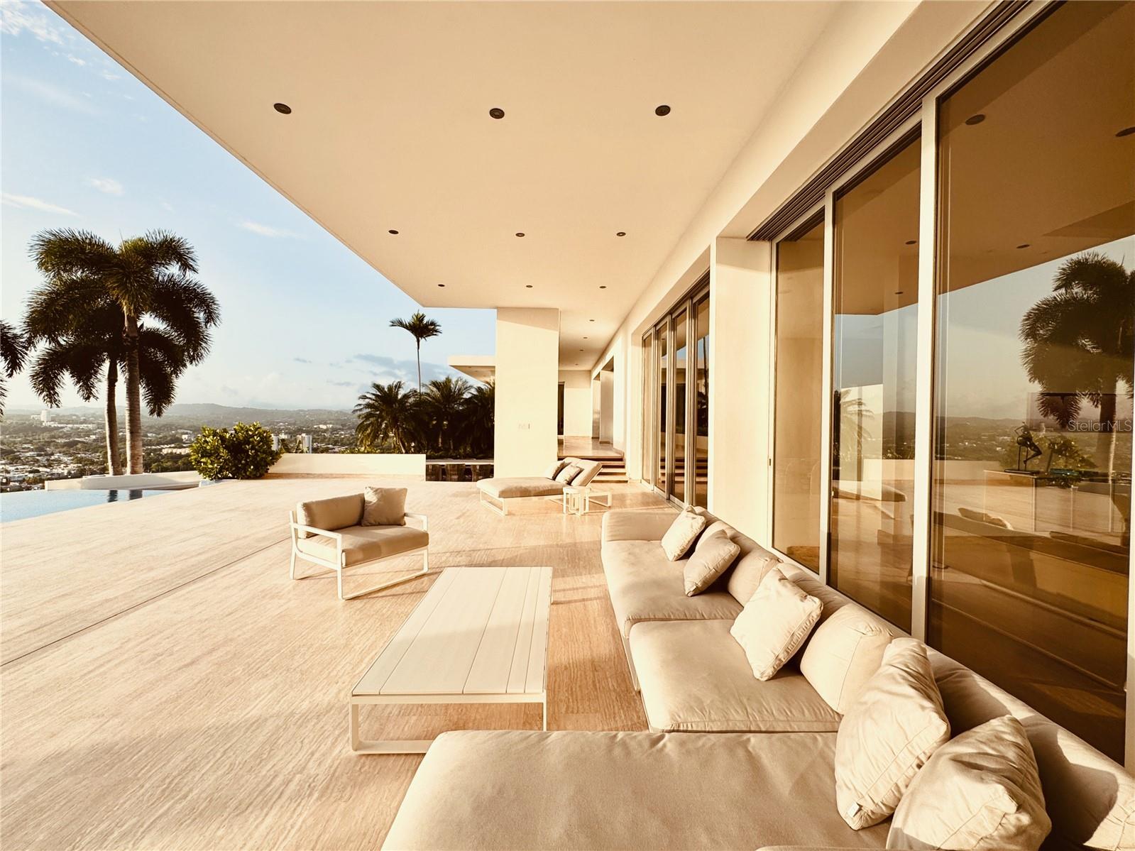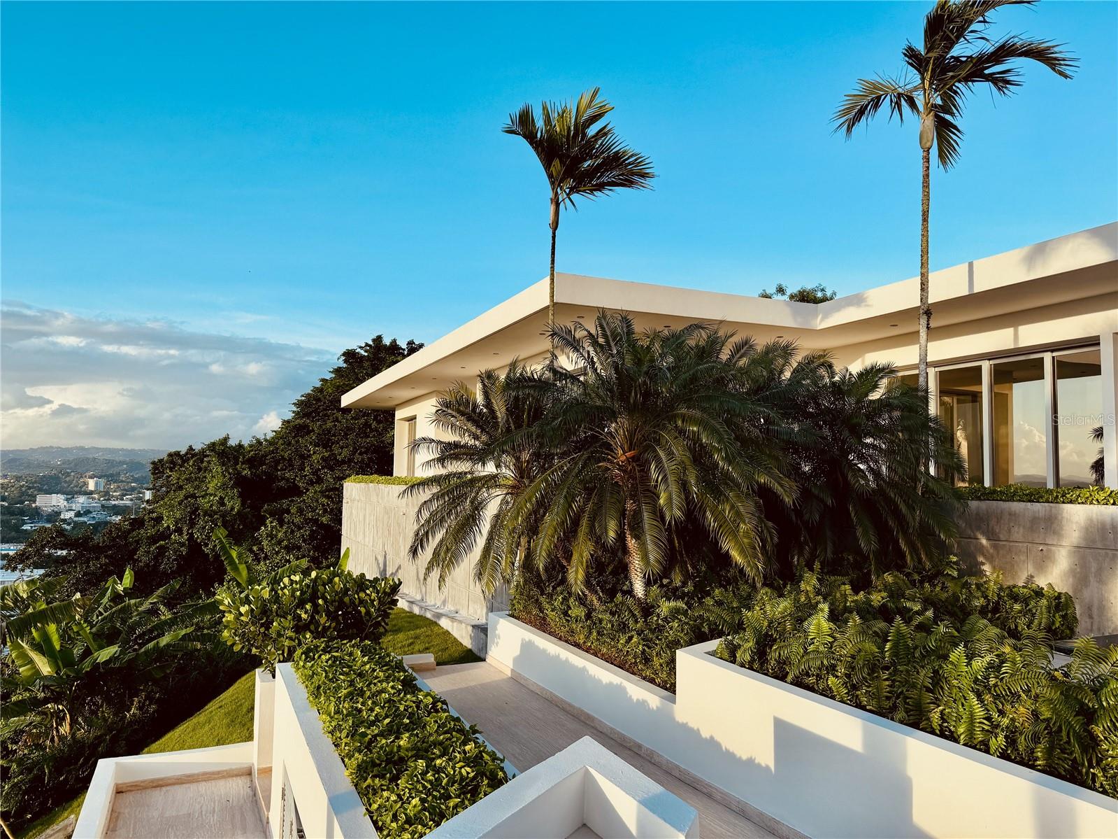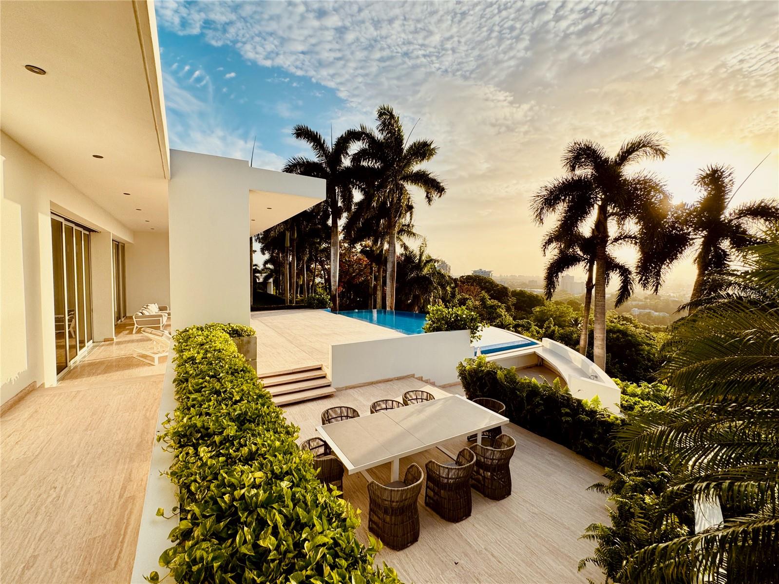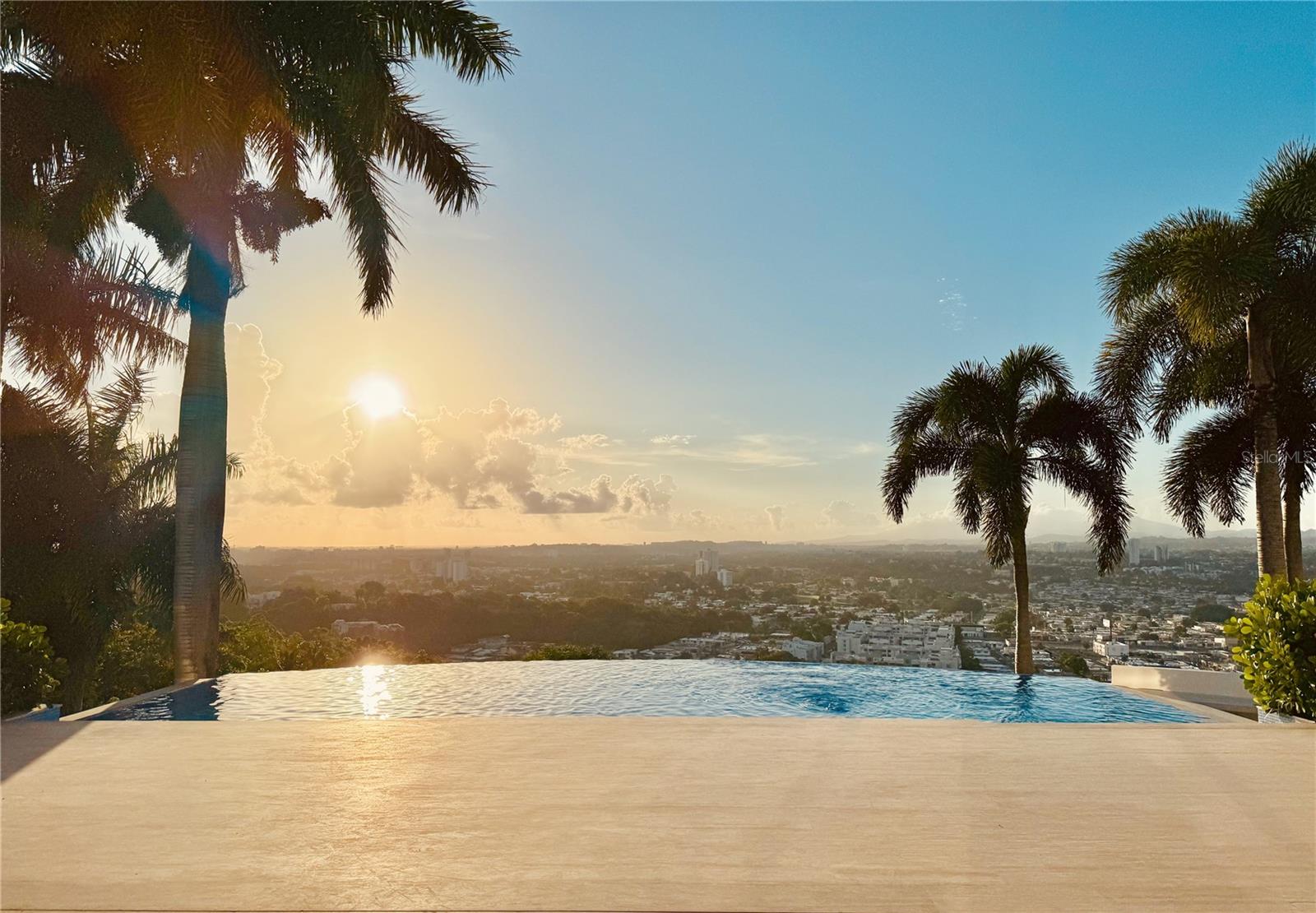 Perched on the rolling hillsides of Guaynabo, Puerto Rico, The Hilltop Residence offers a unique and unparalleled living experience where luxury meets breathtaking natural beauty. Seamlessly integrated with its surroundings, this extraordinary property captivates you from the moment you arrive. Crafted to fit the landscape, The Hilltop Residence showcases bespoke craftsmanship and elegant design. This predominantly single-story home stretches along a narrow spine, ensuring every room captures natural light and city views. High ceilings and floor-to-ceiling sliding doors pocket into the walls, blurring the lines between indoor and outdoor spaces and creating a harmonious flow throughout the home. With 7,306 sq. ft. of indoor living space and 4,296 sq. ft. of outdoor areas, the property boasts a total livable space of 11,602 sq. ft. Expansive, open-concept living areas extend effortlessly onto vast terraces, perfect for entertaining guests while enjoying breathtaking panoramic vistas. The infinity pool serves as the centerpiece of outdoor gatherings, offering a serene spot to lounge and soak in the stunning scenery. Spanning 1.22 acres of land, The Hilltop Residence embodies elegance and features essential modern resilience. It is equipped with a robust underground cistern and full-power generator, each with dedicated rooms, ensuring uninterrupted comfort and security. Embracing tropical modernism, this custom home epitomizes elegance, sophistication, and a living experience unlike any other. Schedule a private showing today to witness firsthand the seamless blend of luxury and natural beauty that defines The Hilltop Residence.
