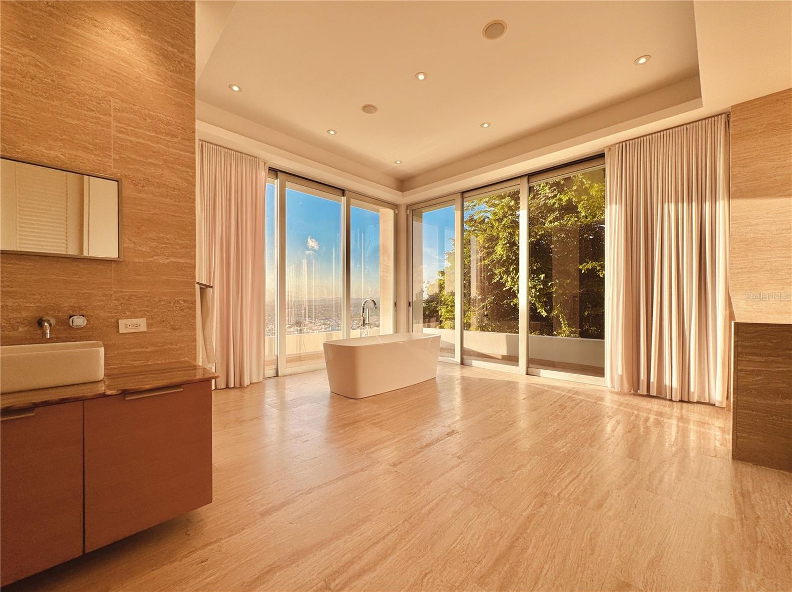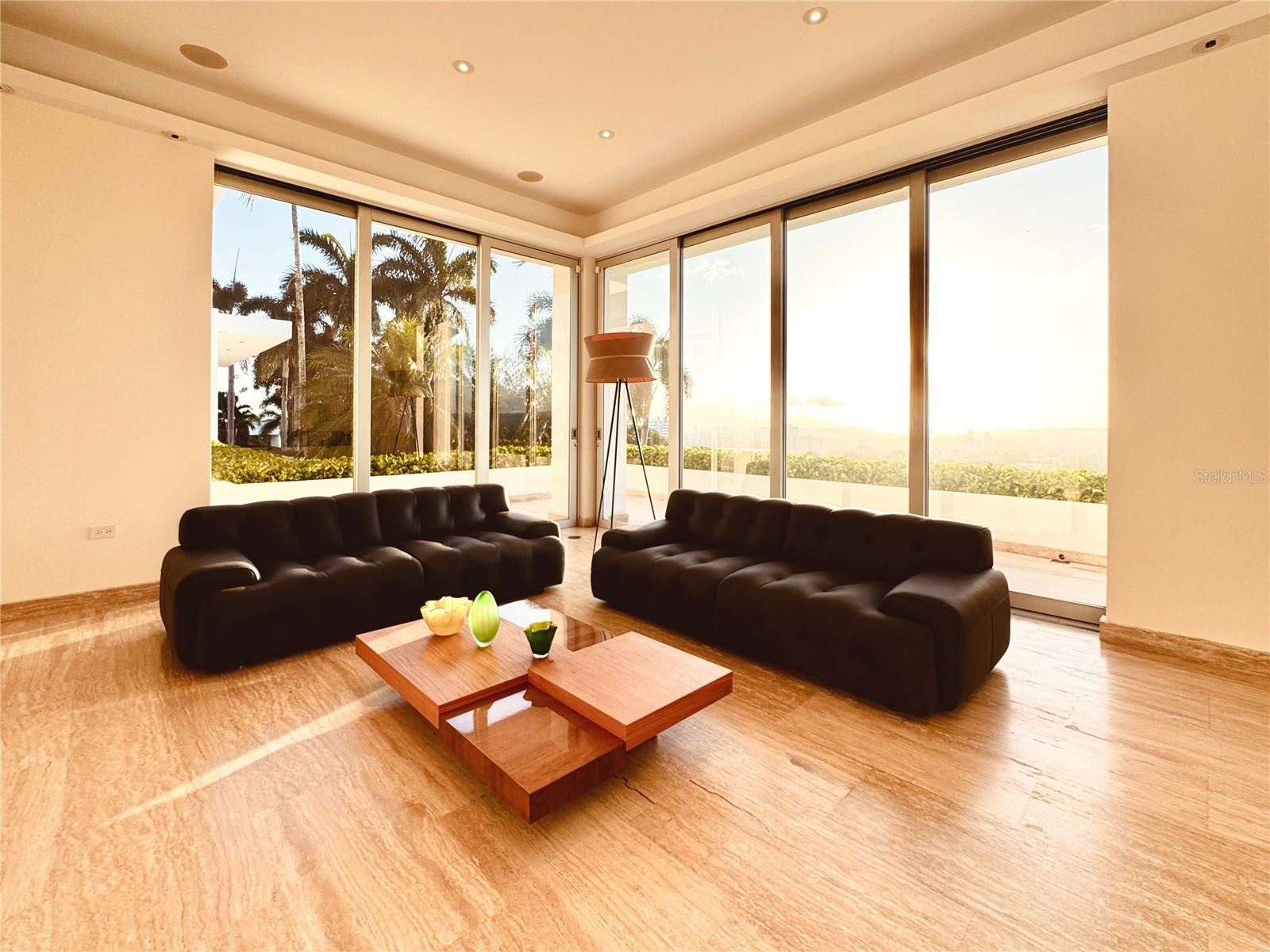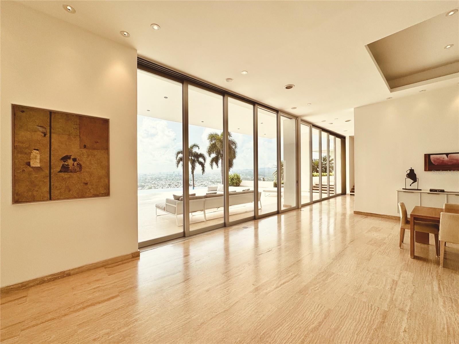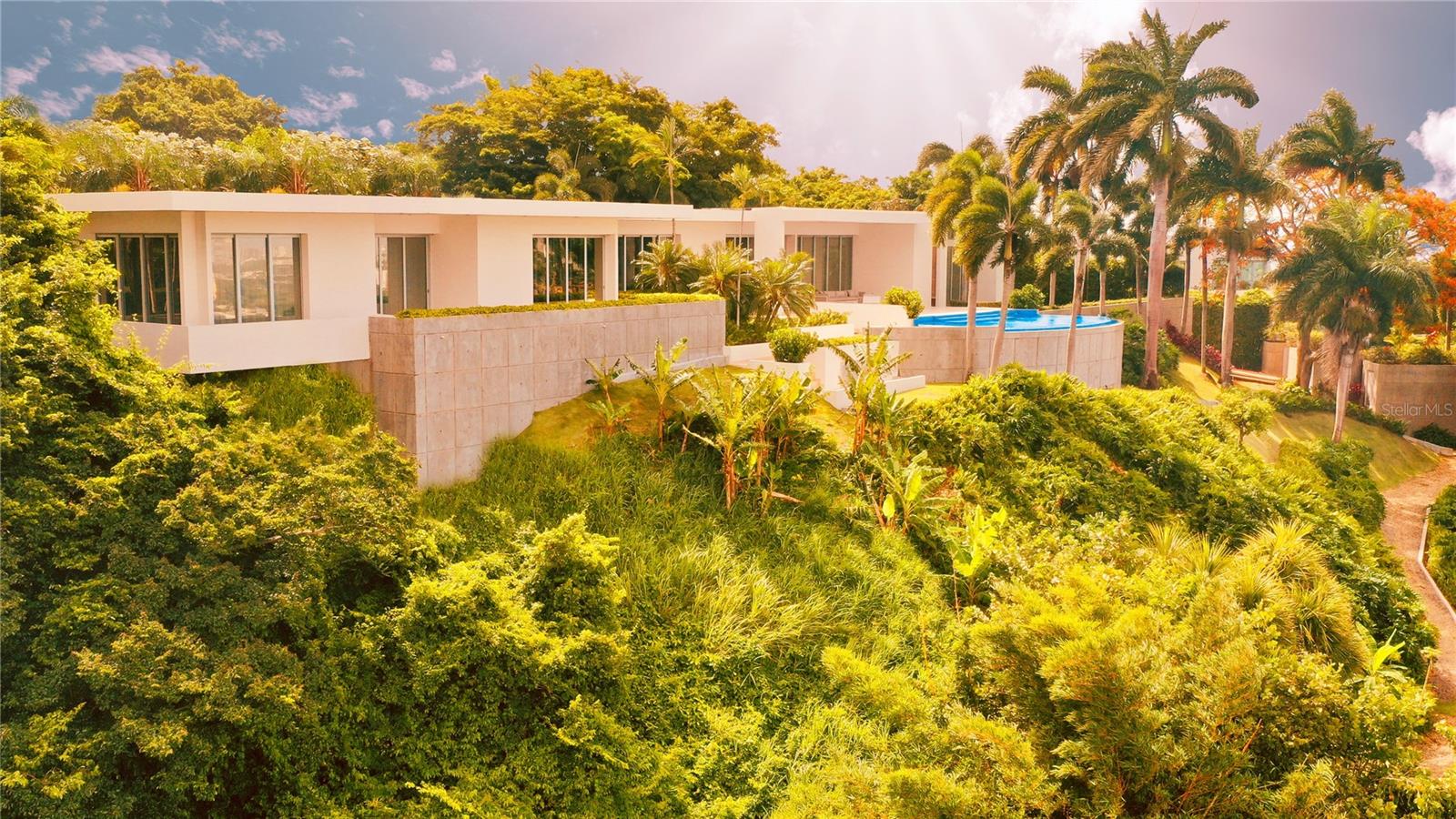 Perched on the rolling hillsides of Guaynabo, Puerto Rico, The Hilltop Residence offers a unique and unparalleled living experience where luxury meets breathtaking natural beauty. Seamlessly integrated with its surroundings, this extraordinary property captivates you from the moment you arrive. Crafted to fit the landscape, The Hilltop Residence showcases bespoke craftsmanship and elegant design. This predominantly single-story home stretches along a narrow spine, ensuring every room captures natural light and city views. High ceilings and floor-to-ceiling sliding doors pocket into the walls, blurring the lines between indoor and outdoor spaces and creating a harmonious flow throughout the home. With 7,306 sq. ft. of indoor living space and 4,296 sq. ft. of outdoor areas, the property boasts a total livable space of 11,602 sq. ft. Expansive, open-concept living areas extend effortlessly onto vast terraces, perfect for entertaining guests while enjoying breathtaking panoramic vistas. The infinity pool serves as the centerpiece of outdoor gatherings, offering a serene spot to lounge and soak in the stunning scenery. Spanning 1.22 acres of land, The Hilltop Residence embodies elegance and features essential modern resilience. It is equipped with a robust underground cistern and full-power generator, each with dedicated rooms, ensuring uninterrupted comfort and security. Embracing tropical modernism, this custom home epitomizes elegance, sophistication, and a living experience unlike any other. Schedule a private showing today to witness firsthand the seamless blend of luxury and natural beauty that defines The Hilltop Residence.