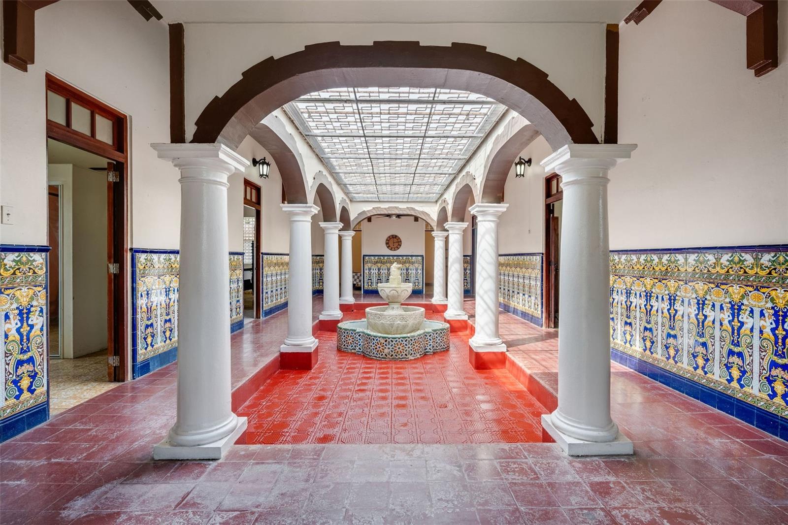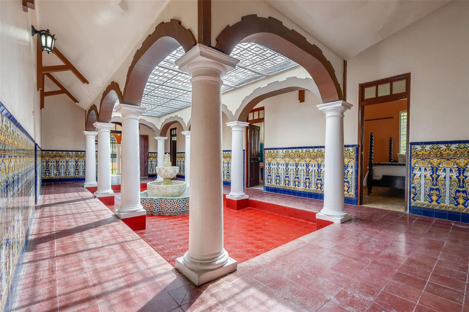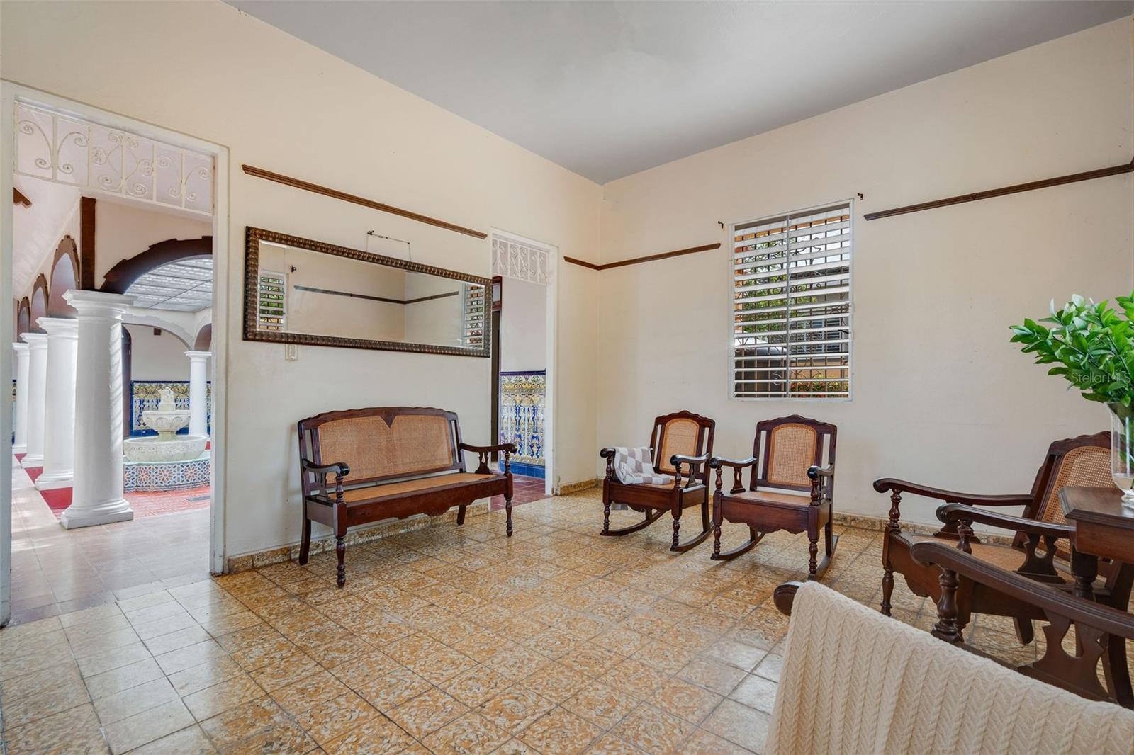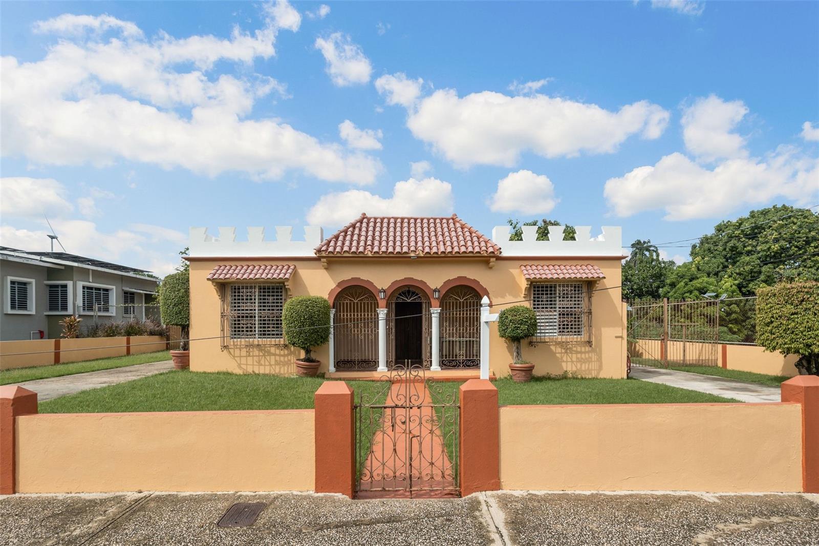 Nestled in the highly sought-after gated community of Villa Caparra Norte, Guaynabo, Puerto Rico, this Spanish Revival property boasts one of the best locations within the neighborhood, offering privacy, convenience, and a larger-than-typical lot size of 1,125 square meters with 24-hour security for peace of mind. Designed by renowned architect Pedro de Castro, the first student from PR to graduate from the School of Architecture of Syracuse University and celebrated for his work on iconic residential estates in Puerto Rico such as the historic Castillo Serrallés in Ponce, Puerto Rico, this home exudes the magic of traditional Spanish architecture. It features elegant arches and stately columns. A charming front porch further enhances the property, providing an excellent additional space for relaxation, morning coffee, or evening gatherings. The interior patio bathes the home in natural light, creating a warm and airy ambiance throughout and enhancing its unique character. The main residence spans 2,235 square feet and includes 4 spacious bedrooms, 2 bathrooms, and an inviting living area, blending functionality with timeless design. Complementing the main home, a separate structure of 1,060 square feet includes 3 bedrooms, 1 bathroom, kitchen and its own living room, perfect for guests, or extended family. The property also boasts a 2-car garage, a 1-car carport, and the added convenience of an independent flex room ideal for a gym or office. Additionally, the ample driveway provides plenty of space to accommodate multiple vehicles, making it ideal for entertaining or large households. The expansive lot, combined with the existing footprint of the improvements, offers an exceptional opportunity to extend the living area of the main structure considerably while still preserving ample green space for outdoor living, gardens, or recreational use. The improvements require some remodeling, presenting an opportunity to customize every detail to your taste and transform this property into your dream home. Whether restoring its historic charm or reimagining the space with some modern touches, the potential is endless. With its prime location, larger lot size, architectural pedigree, and enchanting Spanish design, this property is a canvas for creating a one-of-a-kind retreat within a nice residential community.