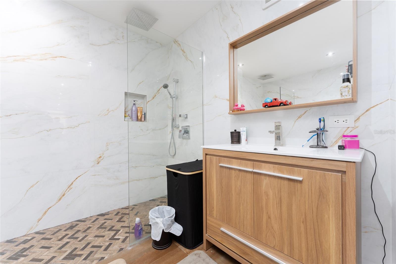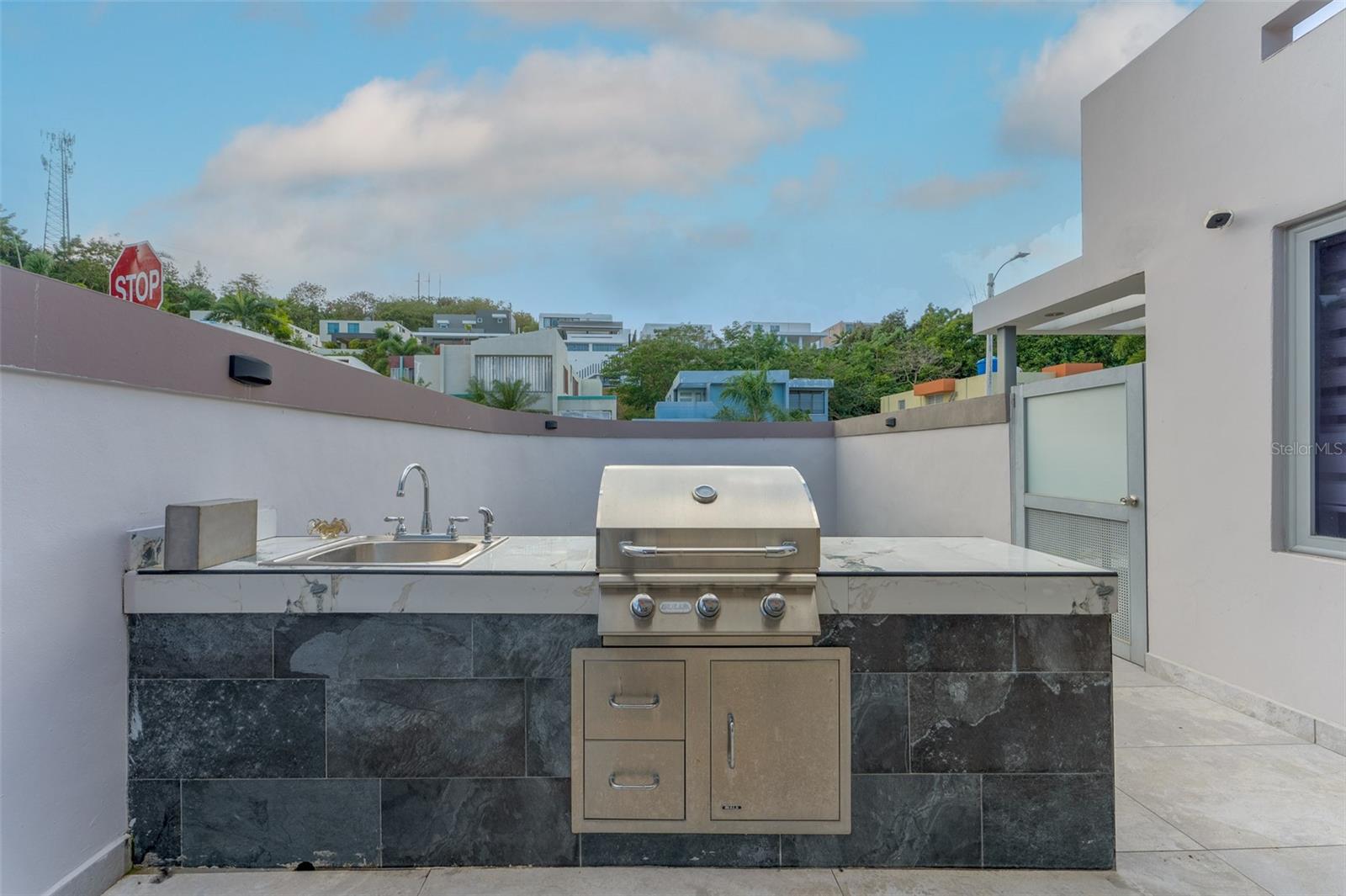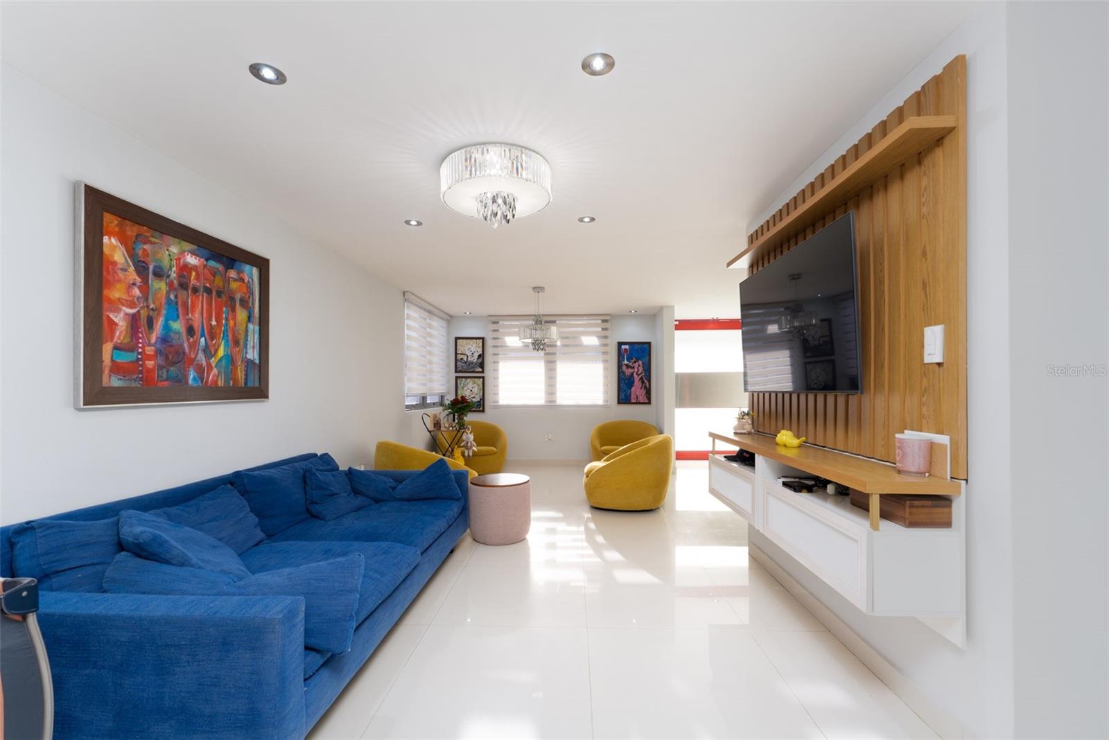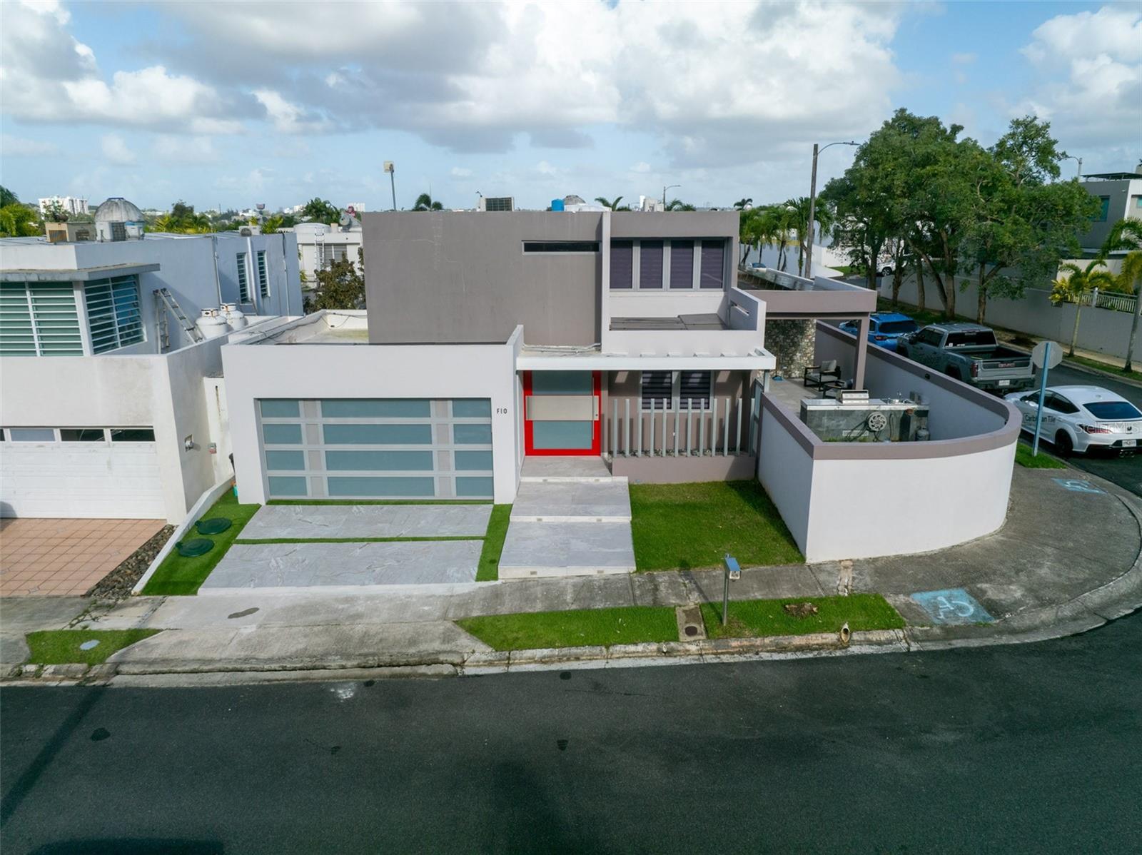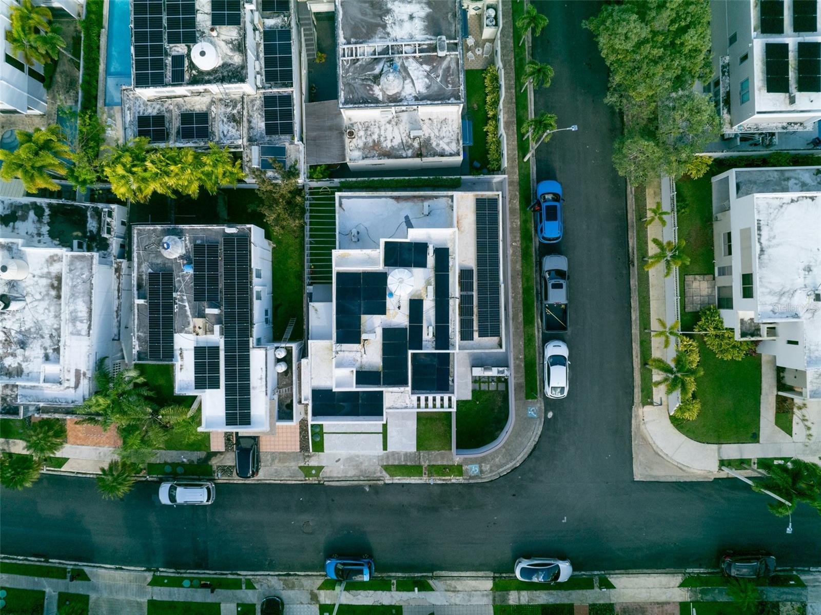 Fully updated 3-bedroom, 2.5-bathroom home in Quintas Reales, Guaynabo. This property includes a solar energy system with 48 panels, two Tesla batteries, one Solar Edge battery, all maintained under a transferable SunRun contract which includes a 25-year warranty covering equipment, maintenance, and insurance. The kitchen features PVC cabinets, quartz countertops, and comes equipped with a gas stove, refrigerator, microwave, extractor hood, along with a washer and dryer. Additional features include LED lighting throughout, furnished dining, living, and family areas from West Elm, a PVC walk-in closet in the master bedroom, and polished 32x32 floors. Outdoors, enjoy a concrete-covered terrace, a built-in BBQ grill, and secure windows and doors. A 600-gallon cistern and an inline water heater are also included, enhancing this home’s practicality and comfort.