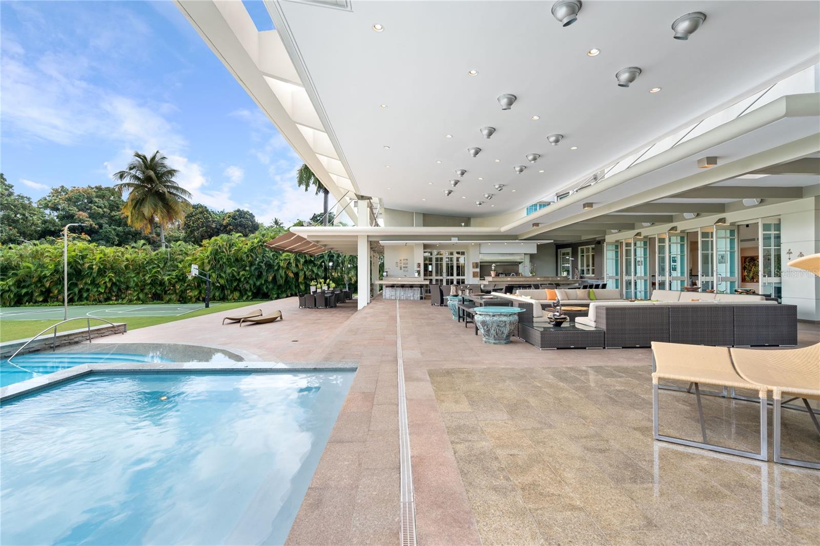 Located in the upscale San Patricio area of Guaynabo, this masterpiece of modern architecture was designed by award-winning architect Carlos Betancourt, epitomizing sophistication and exclusivity. Spanning 10,000 sqft of interior space and nestled on 1.2 acres of meticulously manicured grounds, this home features soaring vaulted ceilings, imported Italian flooring, and custom-designed interiors, including a bespoke kitchen and cabinetry. Expansive living spaces, an executive office, and an entertainment room seamlessly blend elegance and functionality. Inside, seven luxurious bedroom suites—including an opulent master sanctuary—, eight luxurious full bathrooms and two half bathrooms, provide unparalleled comfort, while Valcor high-impact windows and premium finishes enhance the home’s timeless beauty. The grand layout, enriched with exquisite craftsmanship, creates a refined ambiance for both daily living and entertaining. Beyond the interiors, the estate extends to a fully air-conditioned outdoor terrace, a heated pool with a gas-heated jacuzzi, and a professional-grade basketball/pickleball court, all designed for both relaxation and recreation. A hidden gem in an elite community, this estate embodies prestige, refinement, and architectural excellence. Beyond the home, San Patricio presents a vibrant lifestyle with proximity to the exclusive Mall of San Juan, San Patricio Plaza, and top-tier restaurants such as Bottles and Ruth’s Chris Steak House. Distinguished private schools, business hubs, and easy access to major highways make this an exceptional location for those seeking luxury, convenience, and a thriving community. Maintenance: $550/mo. Taxes: $5,410/yr.