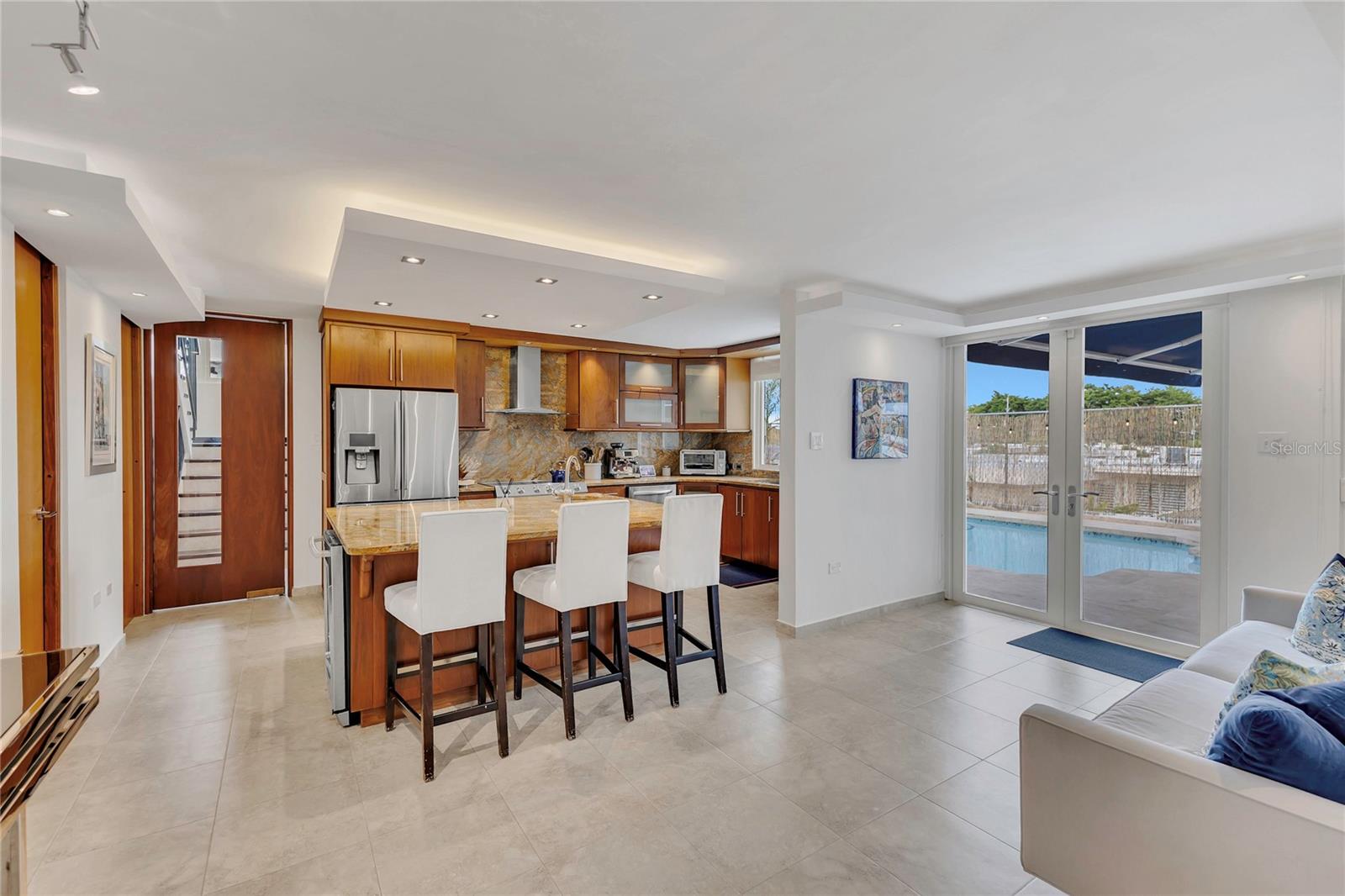 This two-story home in the gated community of Estancias Reales in Guaynabo features 4 bedrooms, 2 full bathrooms, and 1 half bathroom. The open-concept living and dining areas provide ample space for everyday living and entertaining. The kitchen includes quality appliances and functional layout. The primary suite has a walk-in closet and private bathroom. Outdoors, the home includes a terrace with a built-in bar and a backyard with a swimming pool. A 2-car garage plus additional parking for two vehicles adds convenience. Estancias Reales provides 24/7 security and updated amenities such as a clubhouse, pool, gym, tennis, pickleball and basketball courts, a pet park, and walking trails. The location offers easy access to Bayamón Golf Center, Los Filtros, El Tablado de Guaynabo, major highways, shopping centers, and schools. Available for sale at $1,200,000 or for rent at $7,900/month. Immediate occupancy available.