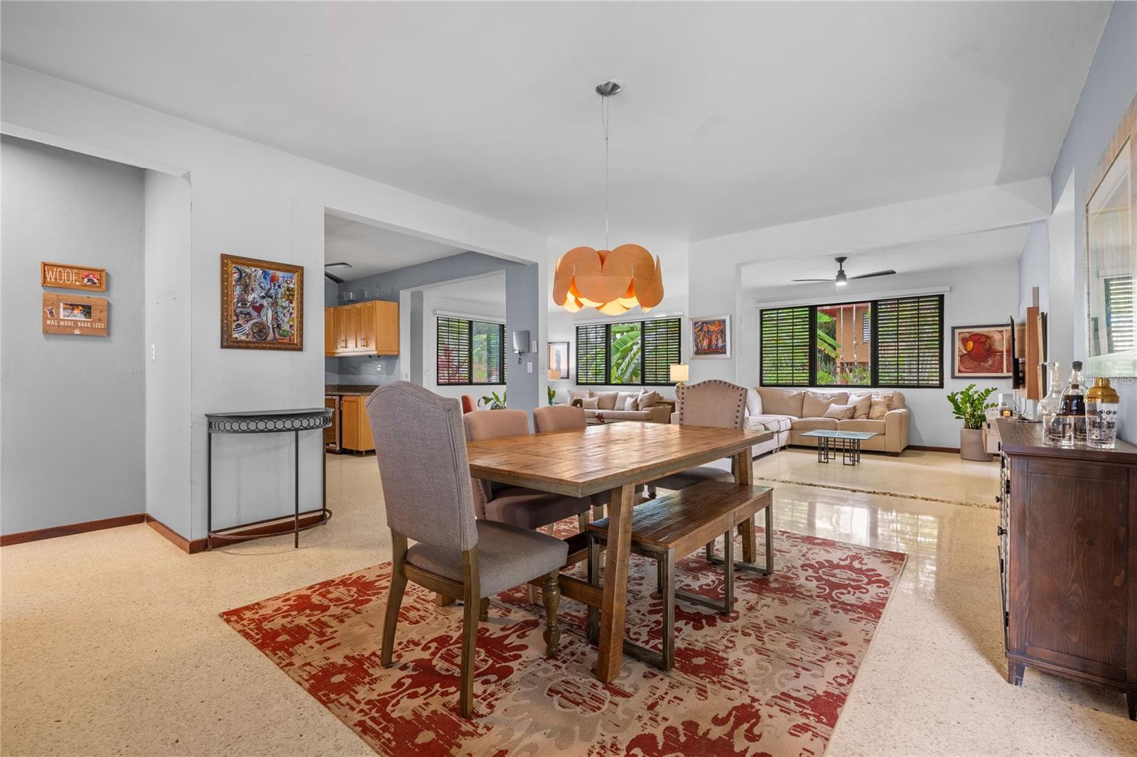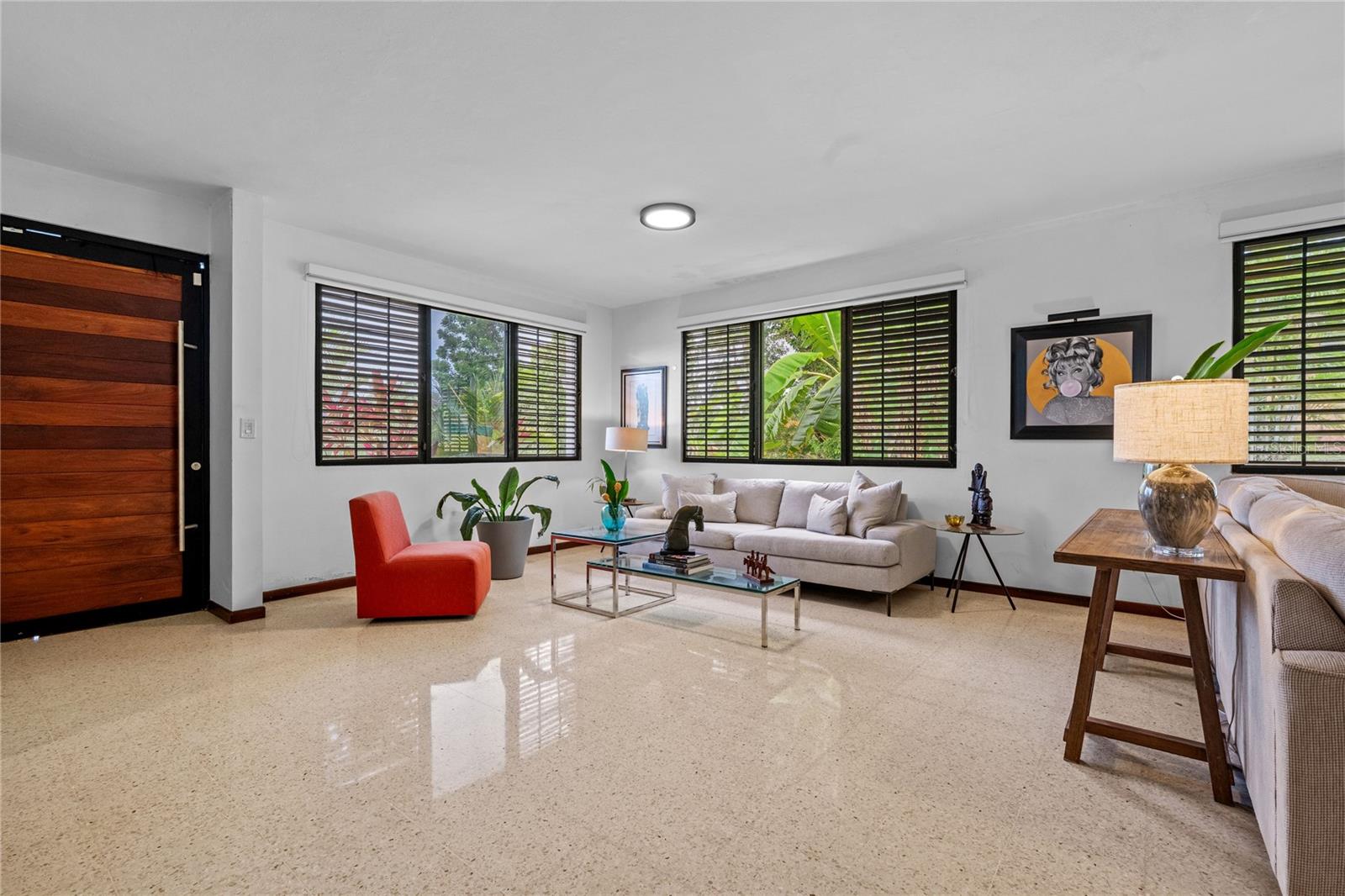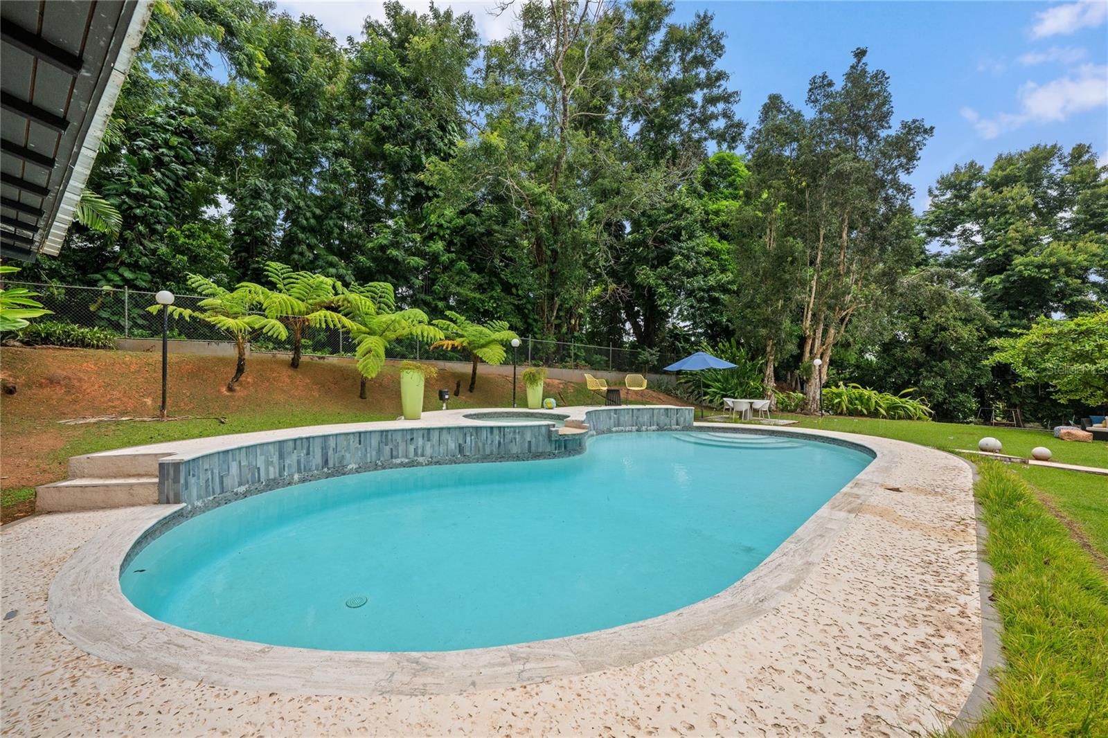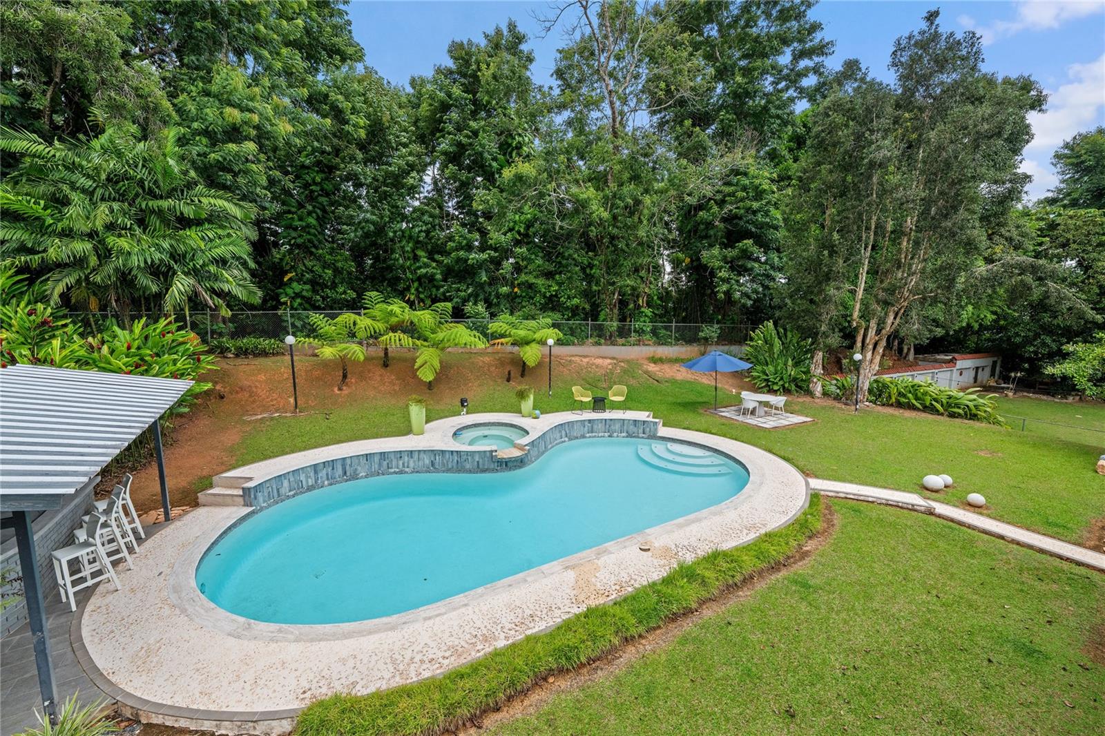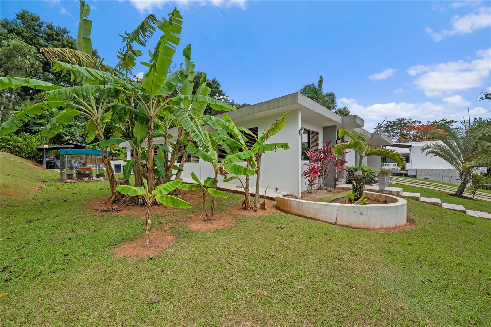 Discover the perfect blend of city convenience and tranquil countryside living in this beautiful one-story home in Lomas del Sol, Guaynabo. This property offers the best of both worlds—easy access to urban life while being surrounded by nature, lush vegetation, and fresh breezes. Situated on an expansive 2,182 m² lot, this contemporary residence boasts 1,864sq ft. The property features impressive outdoor oasis great for entertaining. The interior showcases an open-concept layout, including a living room, dining area, an inviting family room, and kitchen with top-of-the-line appliances. The house spans three bedrooms with two bathrooms, and a powder room, additionally two flex rooms currently used as an office and storage room, convertible to a private apartment. Enjoy resort-style amenities including a Salt Water Pool with an Inverter Motor, an outdoor bar with BBQ area, and a fire-pit or lechónera. Designed for comfort and sustainability, the property is fully equipped with a 12k Generator, 23 Solar Panels, 2 Tesla batteries, and a Solar Water Heater. This home invites you to live a lifestyle that seamlessly combines nature, comfort, and convenience. Don’t miss this rare opportunity, call today to schedule your private showing!