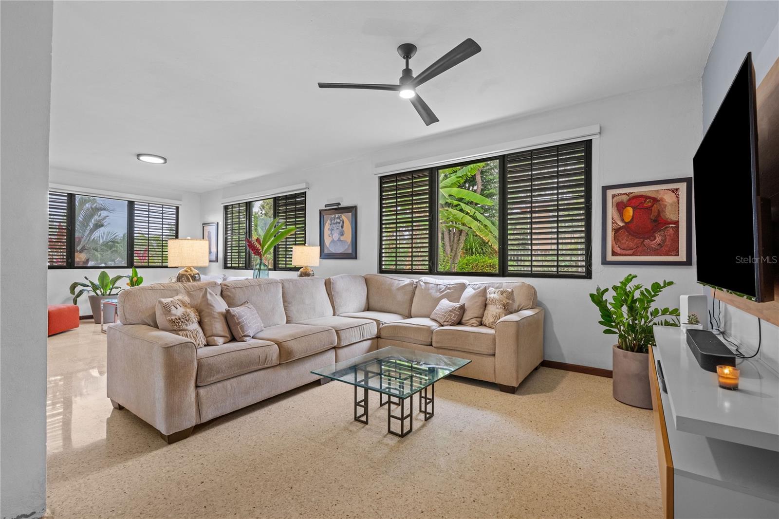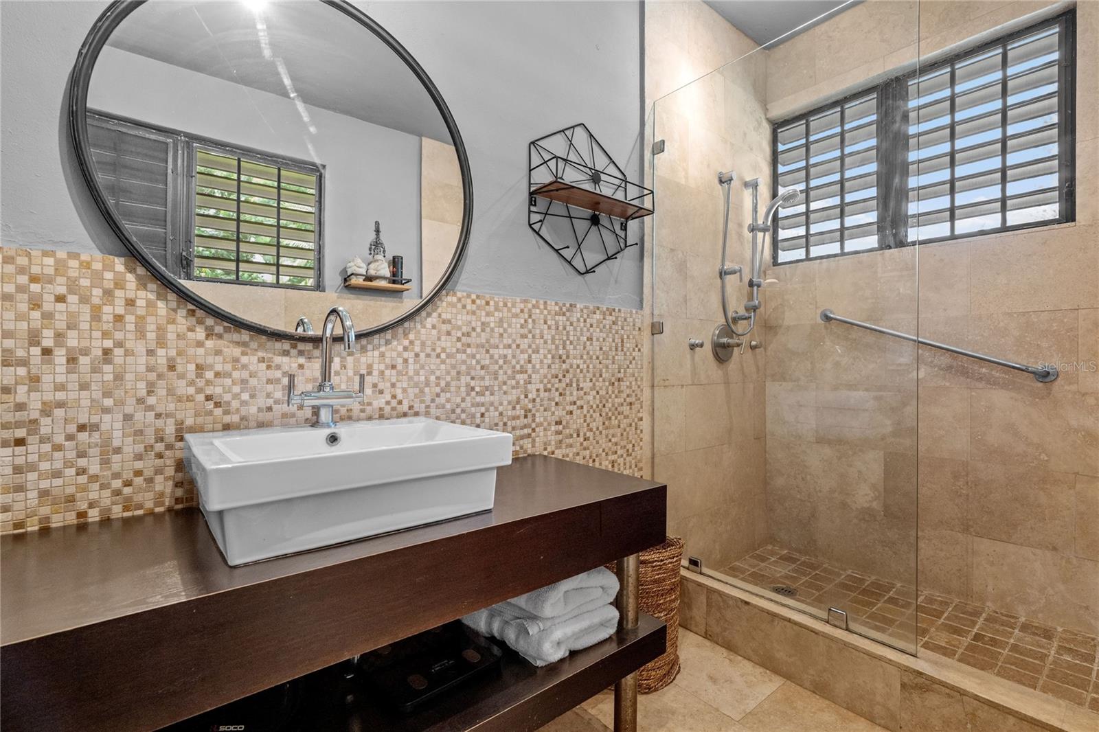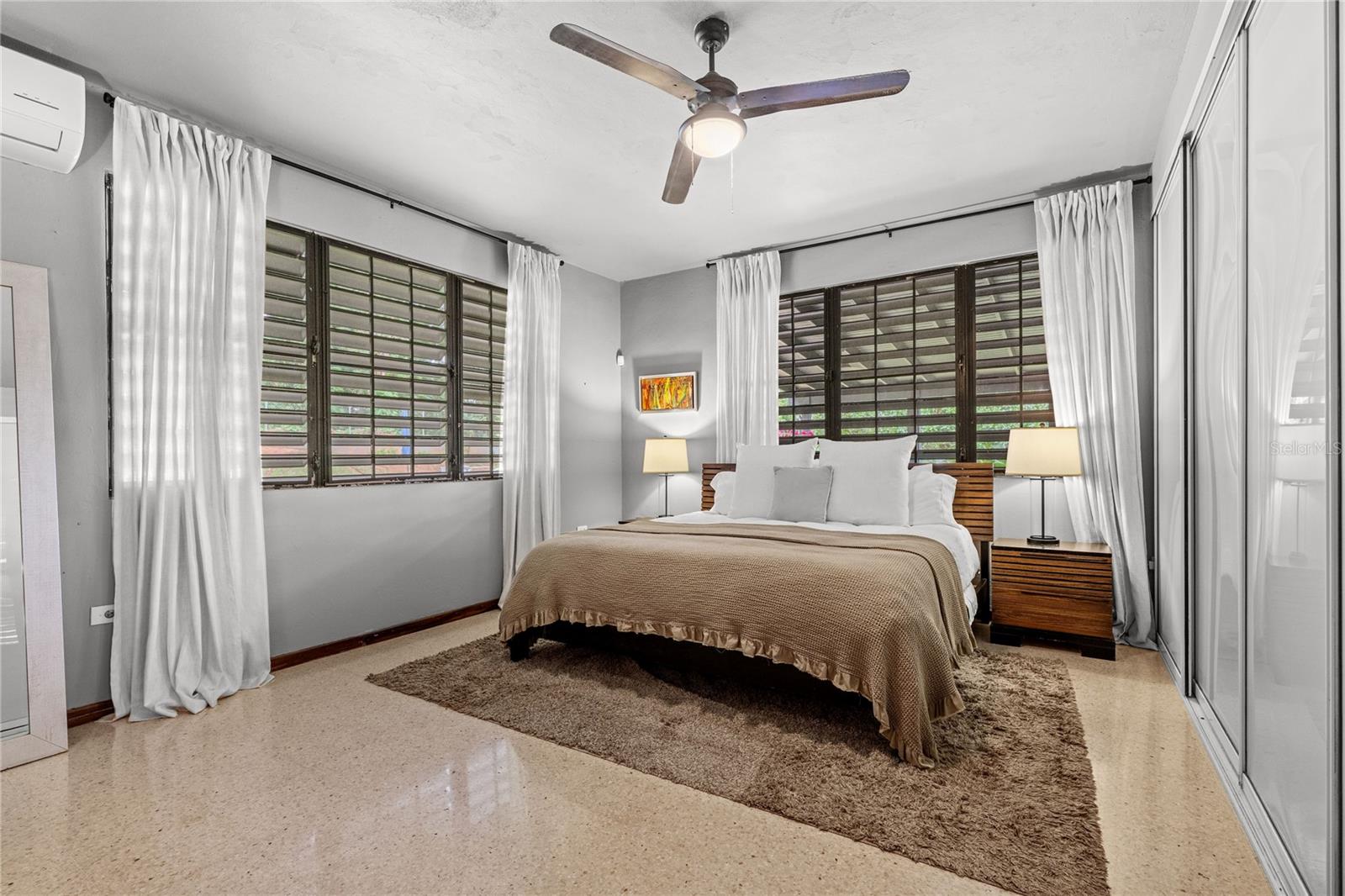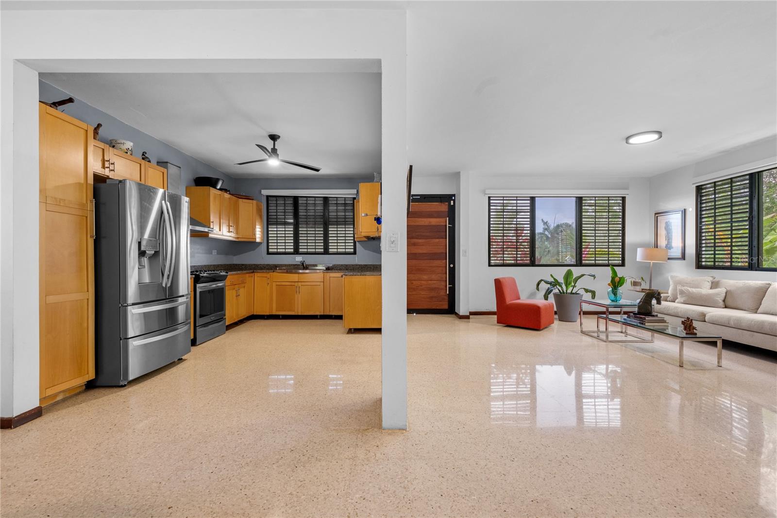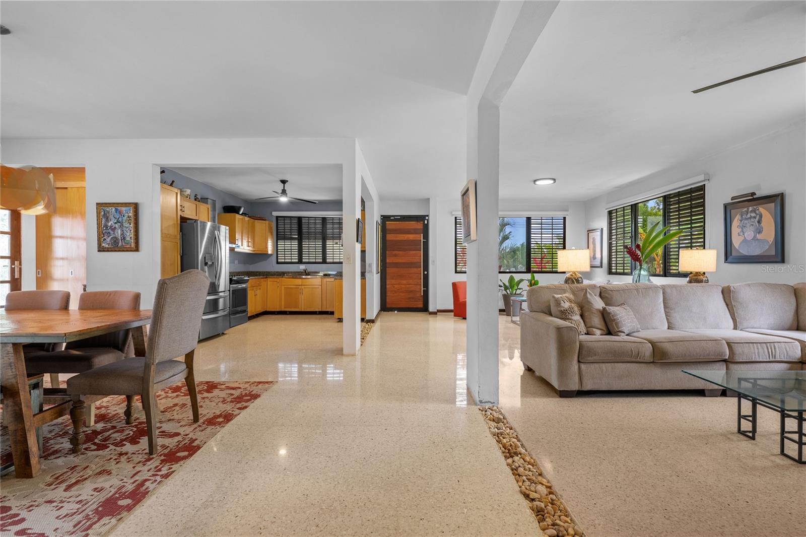 Discover the perfect blend of city convenience and tranquil countryside living in this beautiful one-story home in Lomas del Sol, Guaynabo. This property offers the best of both worlds—easy access to urban life while being surrounded by nature, lush vegetation, and fresh breezes. Situated on an expansive 2,182 m² lot, this contemporary residence boasts 1,864sq ft. The property features impressive outdoor oasis great for entertaining. The interior showcases an open-concept layout, including a living room, dining area, an inviting family room, and kitchen with top-of-the-line appliances. The house spans three bedrooms with two bathrooms, and a powder room, additionally two flex rooms currently used as an office and storage room, convertible to a private apartment. Enjoy resort-style amenities including a Salt Water Pool with an Inverter Motor, an outdoor bar with BBQ area, and a fire-pit or lechónera. Designed for comfort and sustainability, the property is fully equipped with a 12k Generator, 23 Solar Panels, 2 Tesla batteries, and a Solar Water Heater. This home invites you to live a lifestyle that seamlessly combines nature, comfort, and convenience. Don’t miss this rare opportunity, call today to schedule your private showing!