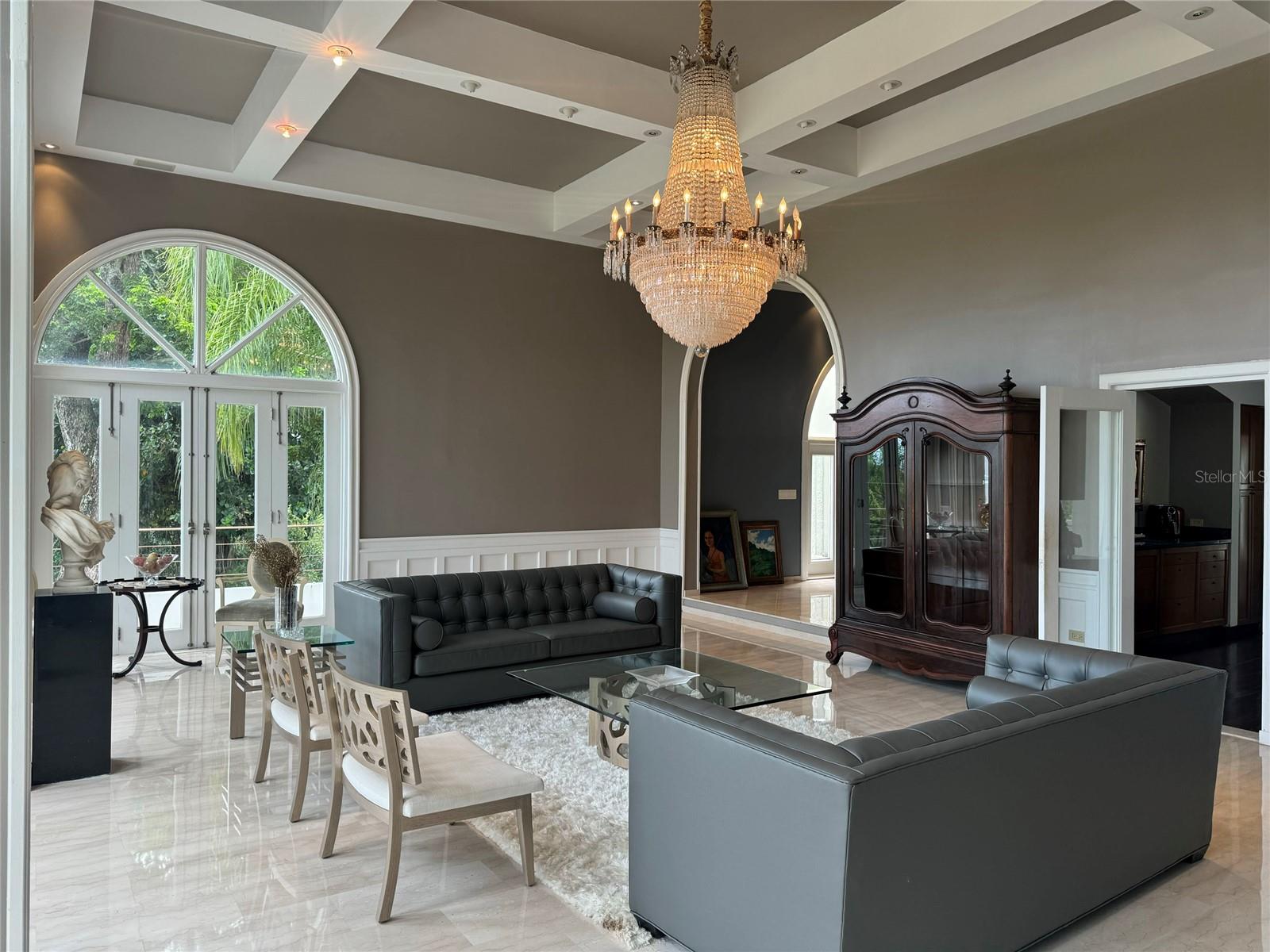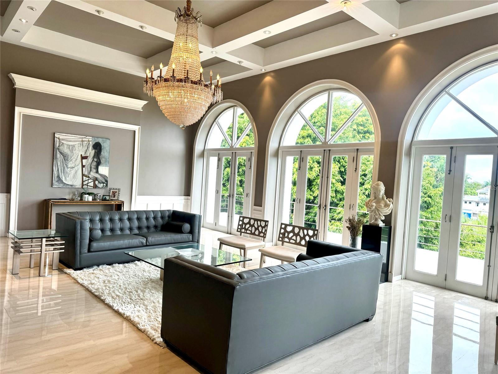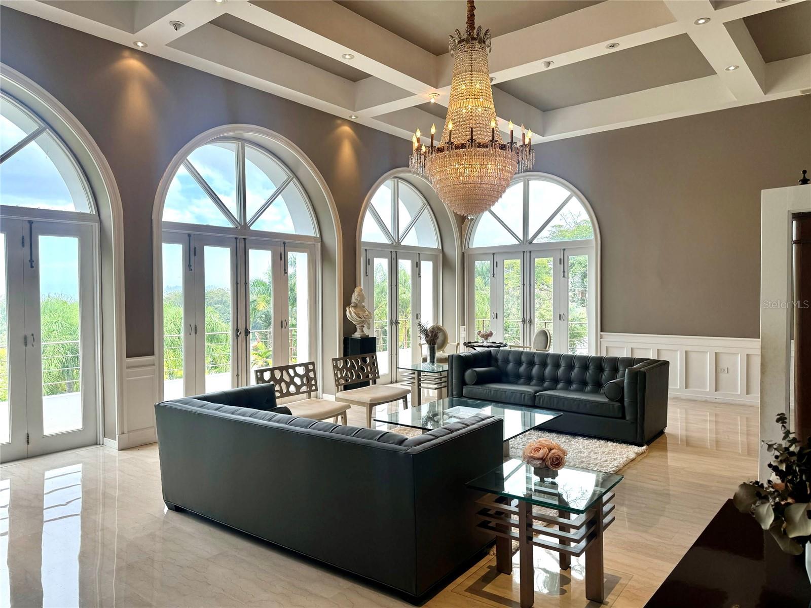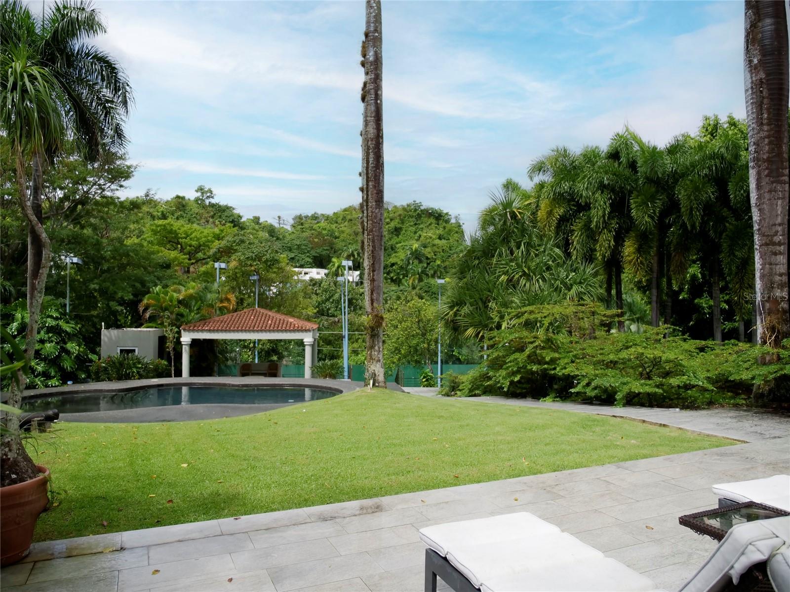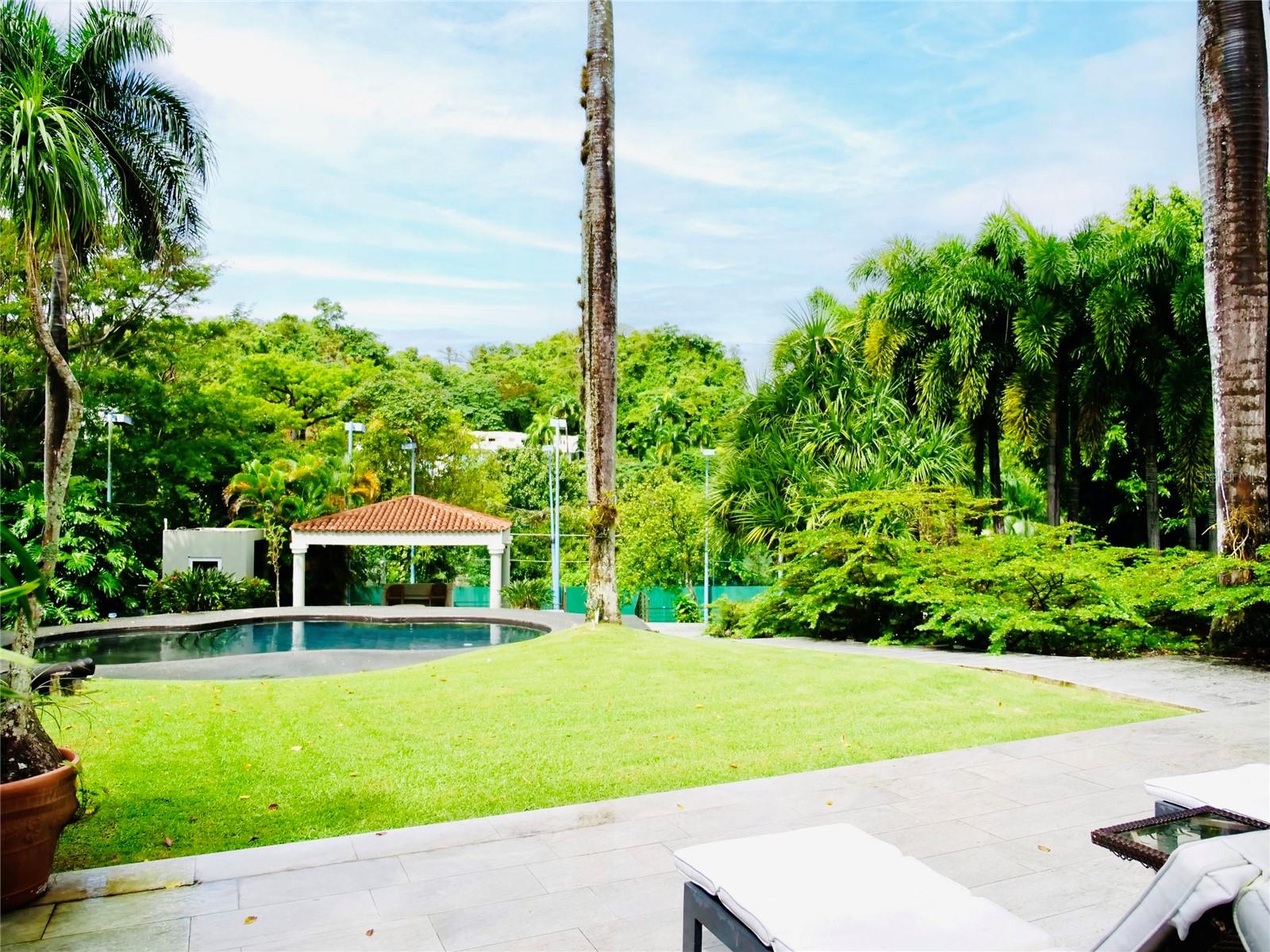 Enjoy living in this tropical Paradise, in your own private resort on a hilltop overlooking San Juan and the ocean in the distance, and yet only 6 miles from San Juan. This impressive 7,538 S/M luxurious estate is a true oasis surrounded by lush gardens and century old trees. The residence boasts magnificent marble floors throughout, majestic cathedral ceilings in the commanding Great Room, a chef's kitchen with top of the line appliances opening up to a modern dining room and a huge covered terrace, great for entertaining, and all overlooking the pool, tennis court (being renovated), a fire pit, a gazebo, a bar and wine room. The home also features an office or library, a large fully equipped media family room, also all overlooking the terrace, pool and tennis court. The home boasts seven bedrooms with en-suite baths, including a complete separate apartment, or guest quarter with its own entrance. An oversized laundry room, a caretaker’s bedroom (now a gym) with en-suite bath, three separate garages, a large full generator and a cistern complete this magnificent one of a kind suburban estate. Tintillo Hills is an exclusive enclave and one of the most secure double-gated communities in Guaynabo. This unique estate benefits from close proximity to Condado and Guaynabo’s best schools, restaurants, and cosmopolitan living while you indulge living in a secluded oasis, a tropical paradise, your own private resort. For qualified buyers by appointment only.