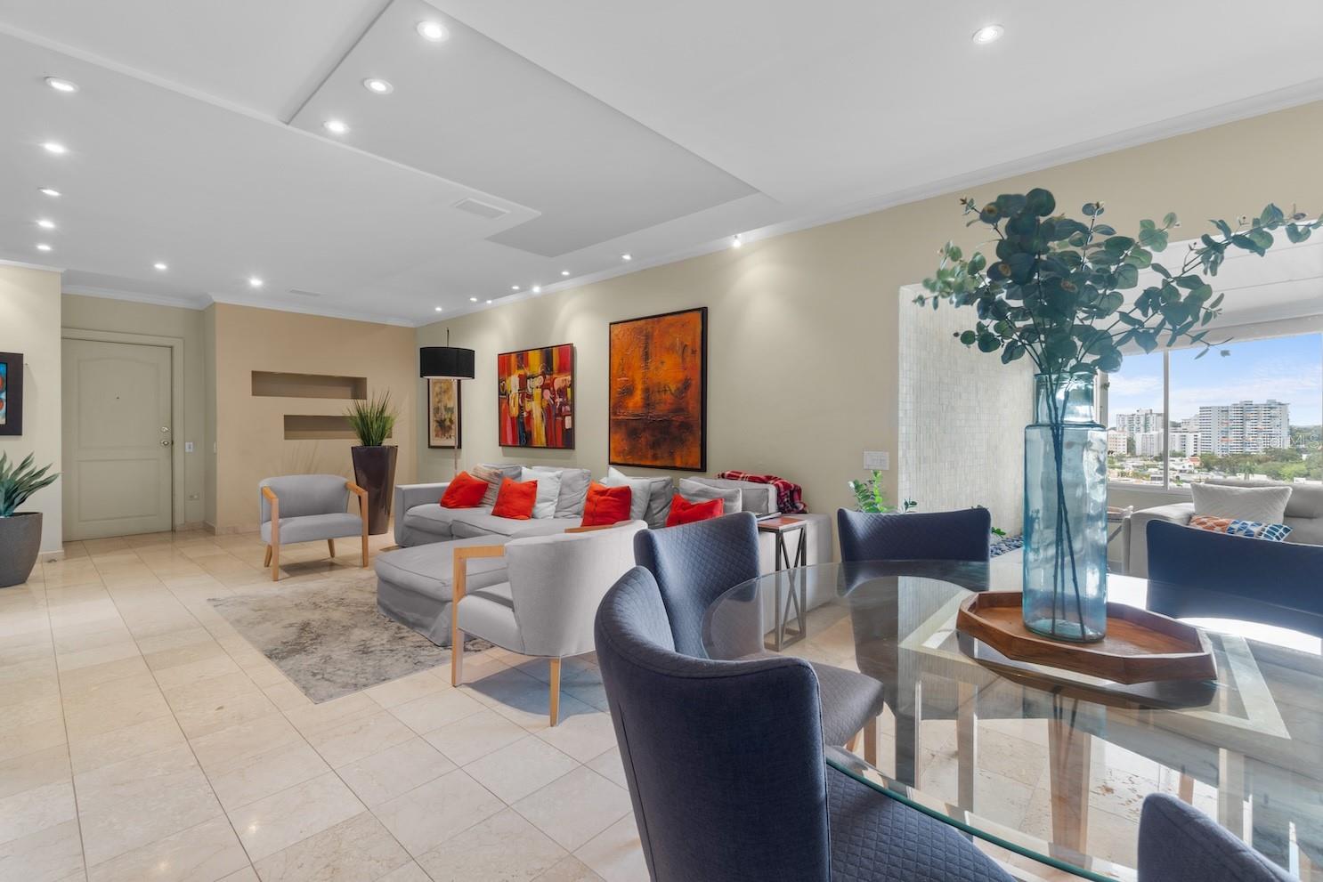 Welcome to Plaza Athenee Condominium, a distinguished full-service building in one of Guaynabo’s most convenient and desirable locations, just moments from San Patricio Plaza and major access roads. This elegant residence combines panoramic views, refined finishes, and exceptional comfort in a private, boutique-style setting. Offering approximately 2,238 square feet of thoughtfully designed living space, the apartment showcases marble flooring throughout, expansive open living and dining areas, and a beautifully finished granite kitchen with a cozy breakfast nook, ideal for intimate mornings or stylish entertaining. The residence features three spacious bedrooms and two full bathrooms, along with stainless-steel appliances, a dedicated laundry room with utility sink, two parking spaces, and a private storage closet. With only three units in floor, Plaza Athenee offers a rare sense of privacy and exclusivity. Residents enjoy resort-style amenities, including a pool, gym, lounge, 24-hour security, full backup power generator, and water cistern. Ideally positioned near renowned schools, fine dining, shopping, medical centers, San Juan’s Financial District, and the international airport, this exceptional home delivers a seamless blend of luxury, convenience, and everyday sophistication.