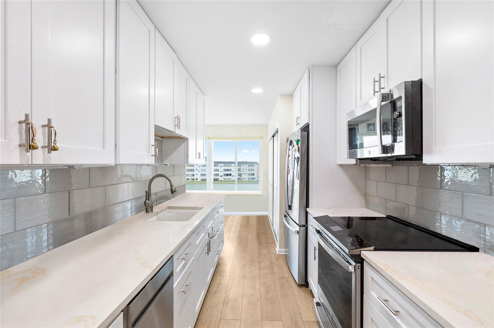 One or more photo(s) has been virtually staged. Experience waterfront living at its finest in this stunning 2-bedroom, 2-bath condo located in the desirable Manchester community of Gulfport, Florida. Boasting 1,120 square feet of beautifully updated living space, this home offers breathtaking sunset views right from your living room and master bedroom. Step inside to an open, airy layout highlighted by luxury vinyl plank flooring, hurricane-impact windows, and abundant natural light. The gourmet kitchen is equipped with stainless steel appliances, sleek cabinetry, and a breakfast bar perfect for casual dining or entertaining. The spacious primary suite features tranquil water views, a generous closet, and an en-suite bath complete with a modern walk-in shower. A second bedroom and full bath provide comfort and privacy for guests or family. Enjoy evenings overlooking the water, or take a short stroll to the exclusive community pool. This unit also includes a private storage unit, ideal for beach gear, kayaks, paddleboards, or bikes. With a low HOA, beautifully maintained grounds, and close proximity to downtown Gulfport’s vibrant arts district, dining, and beaches — this is coastal Florida living at its best.