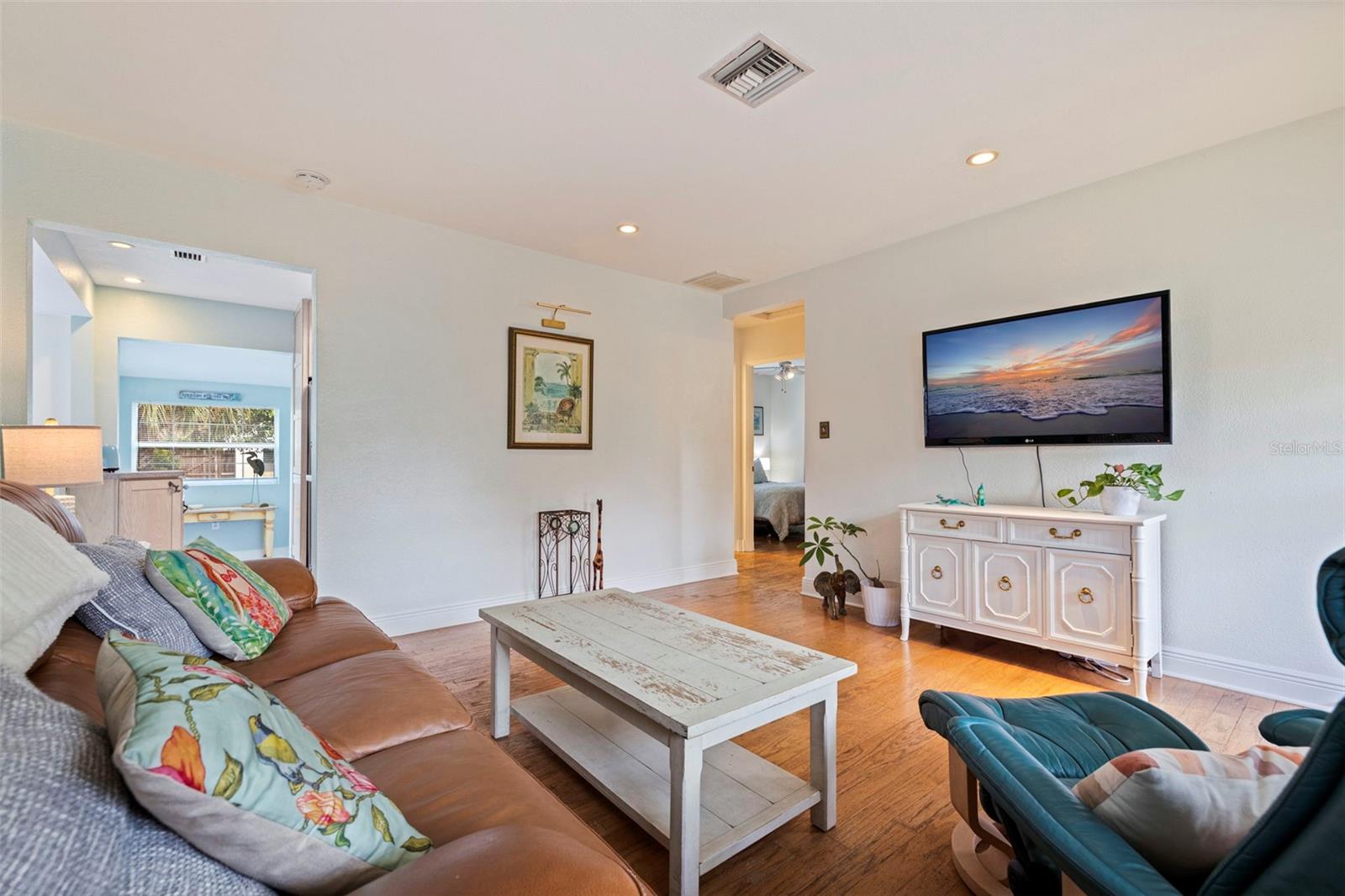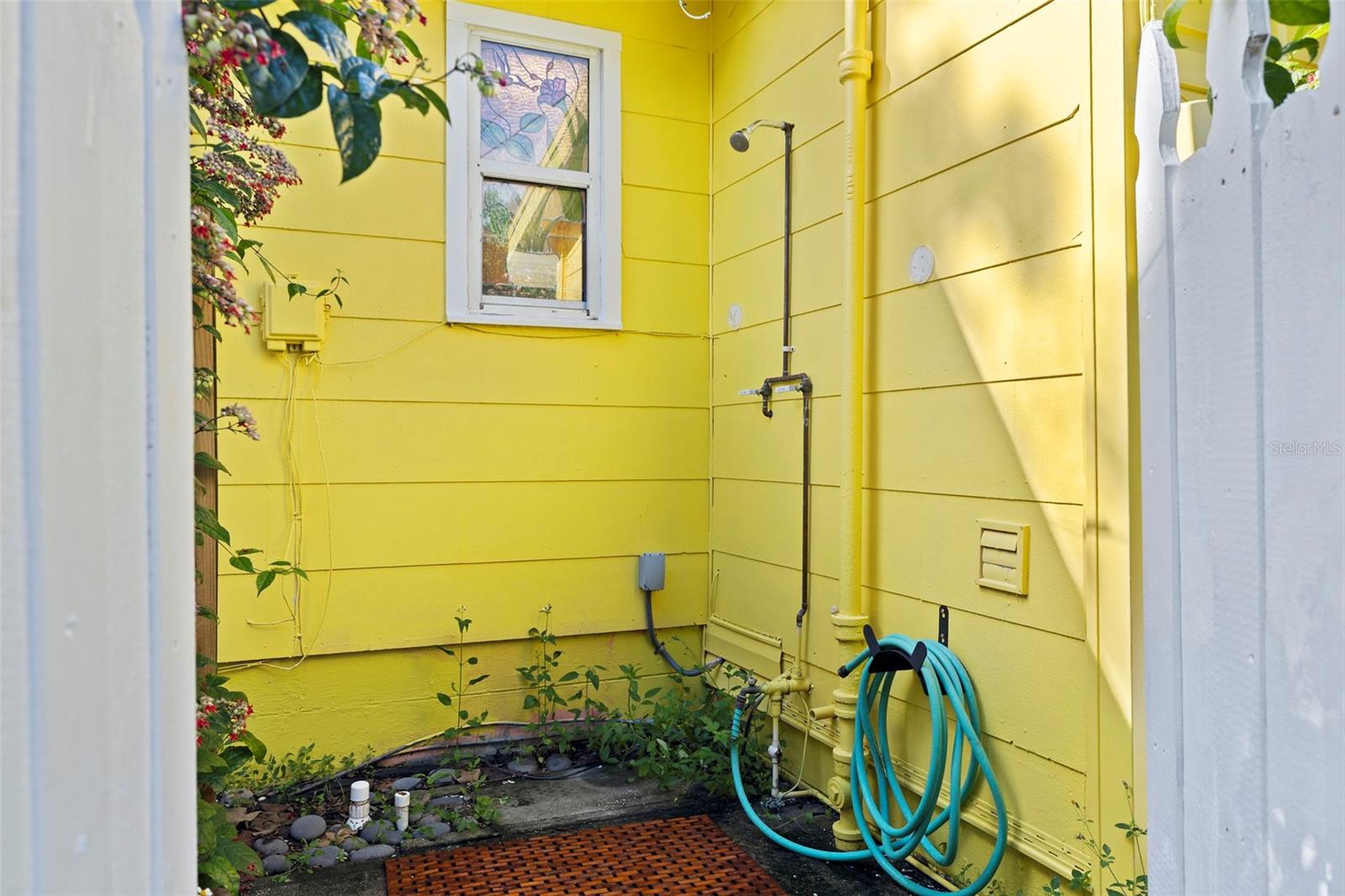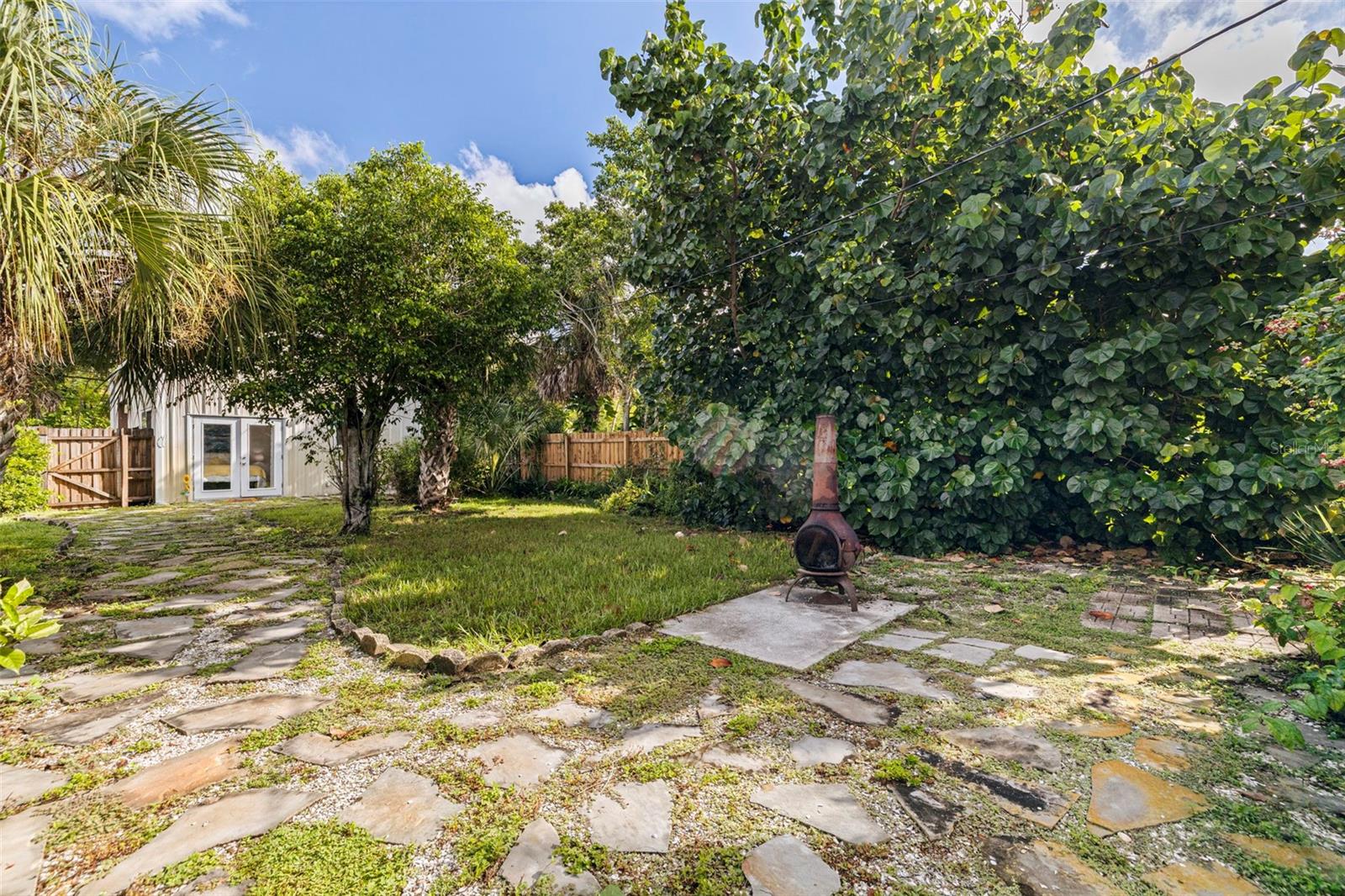 LOVABLE GULFPORT BUNGALOW with OVERSIZED LOT, GARAGE SUITE & TROPICAL OASIS. This delightful 2-BR, 1-BA bungalow is perfectly situated on a 50x172 lot w/ ALLEY ACCESS and NOT IN A FLOOD ZONE. The property offers abundant parking off the alley, plus a spacious 580 sq. ft. DETACHED garage/outbuilding featuring both a large & small roll-up door. The GARAGE is an added gem, offering its own FULL BATHROOM with shower (plumbing upgrades in 2025) and wall-unit A/C (2), making it ideal as a workshop, studio, guest space, or future conversion opportunity. Inside, this home exudes WARMTH & CHARACTER. The living room & bedrooms feature original HARDWOOD floors, while the kitchen & dining areas are finished with durable CERAMIC. The kitchen offers expansive STONE COUNTERTOP space, abundant cabinetry and STAINLESS STEEL appliances including a 2024 DISHWASHER and separate dining room provides plenty of room for entertaining. The interior paint was refreshed just three years ago, giving the home a bright & inviting feel. The bathroom has been tastefully updated with a new toilet, vanity, refinished tile, freshly painted walls, & PLUMBING UPGRADES, while a distinctive artisanal stained-glass window fills the space with light, color, and charm. The home also includes an INDOOR LAUNDRY room for everyday convenience. The CENTRAL A/C system is in good working order, complete with new capacitor in 2025, ensuring comfort year-round. A screened & covered PORCH extends your living space, freshly painted along w/ the front porch, and re-screened in 2022. Beyond, the yard is a lush TROPICAL oasis with mature landscaping, professionally maintained trees, & thoughtful plantings that create a SERENE AND PRIVATE environment. Best of all, the entire backyard is FULLY FENCED for privacy, pets, & peace of mind. Outdoor living is taken up a notch with a PRIVATE OUTDOOR SHOWER—a refreshing feature for beach days or gardening. An OUTDOOR PATIO and ample room for fire pit seating make this the perfect setting for gatherings, relaxing evenings, or weekend barbecues. Addt’l highlights inc. a full EXTERIOR REPAINT in 2024, plus a new white picket fence in the front yard, adding instant curb appeal. Gulfport is one of Tampa Bay’s most beloved WATERFRONT COMMUNITIES, where Old Florida charm meets artistic flair & small-town hospitality. Known for its vibrant downtown, arts district, weekly farmers markets, eclectic shops, & waterfront dining, Gulfport offers a LIFESTYLE unlike anywhere else in the region. Just minutes from St. Pete Beach & downtown St. Petersburg, this colorful COASTAL COMMUNITY is a destination all its own — and now you can call it home. The property is offered completely furnished, making it MOVE-IN READY or ideal as a TURN-KEY VACATION RETREAT. This bungalow has been responsibly maintained and thoughtfully updated, offering a RARE blend of character, functionality, & modern convenience. From the oversized lot and versatile 580 sq. ft. outbuilding to the artisanal details & vibrant Gulfport location, this home is truly a TREASURE ready to welcome its next owner.