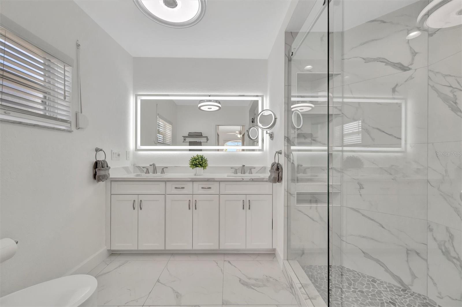 Welcome to a true waterfront paradise offering spectacular, unobstructed open bay views—the ideal setting for the Florida lifestyle, perfect for kayaking, swimming, and quiet enjoyment. Discover unparalleled luxury in this exquisite, fully renovated waterfront estate nestled within a spectacular GATED COMMUNITY. Enjoy the beautiful amenities of the renowned Pasadena Yacht & Country Club, all while benefiting from an incredible location with less than a 15-minute commute to vibrant Downtown St. Pete! This estate has been renovated top-to-bottom and offers 5 spacious en-suite bedrooms plus a 1/2 bathroom, providing comfort and privacy for all. The exterior boasts an entertainer’s dream with an extended deck overlooking the bay, a resurfaced pool, and a brand new, unused pool bar area. This ultimate outdoor kitchen features two new refrigerators, a dedicated ice maker, dishwasher, and a 3-tap system for premixed beverages. The waterfront is ready for your toys with a new dock system featuring a confirmed 16,000 lb fully loaded boat lift and a separate lift for two jet skis. Anglers will appreciate the brand new installed fish cleaning station with a dedicated water line. Inside, the home is appointed with the highest level of luxury finishes. The flooring is brand new throughout, featuring elegant new carpet and premium luxury vinyl plank (LVP). The living room offers a grand scale with high ceilings, complemented by tasteful Hunter fans and high-end Moen fixtures in the baths. Every bathroom features the exquisite Cambria Brittanica Quartz from the Luxury Collection. The gourmet kitchen is equipped with top-of-the-line KitchenAid appliances (including a new dishwasher), and the laundry room features the largest capacity Samsung washer and dryer set available. Practical amenities abound, including a 4-car garage that is convertible to 5-car capacity for the collector or enthusiast. Crucially, the home features a dedicated craft room—completely separate from the bedrooms and den—offering an invaluable space for hobbies without sacrificing a bedroom. The primary suite is a true retreat, featuring a large walk-in closet and a convenient wet bar area with a fridge and sink. This is not just a house; it's a completely renovated, ready-to-enjoy luxury compound.