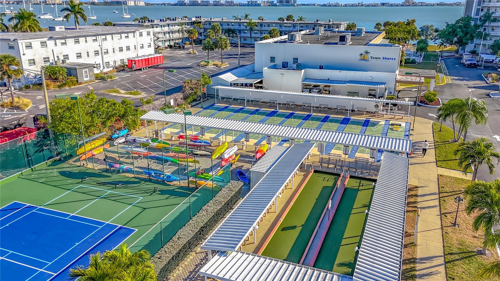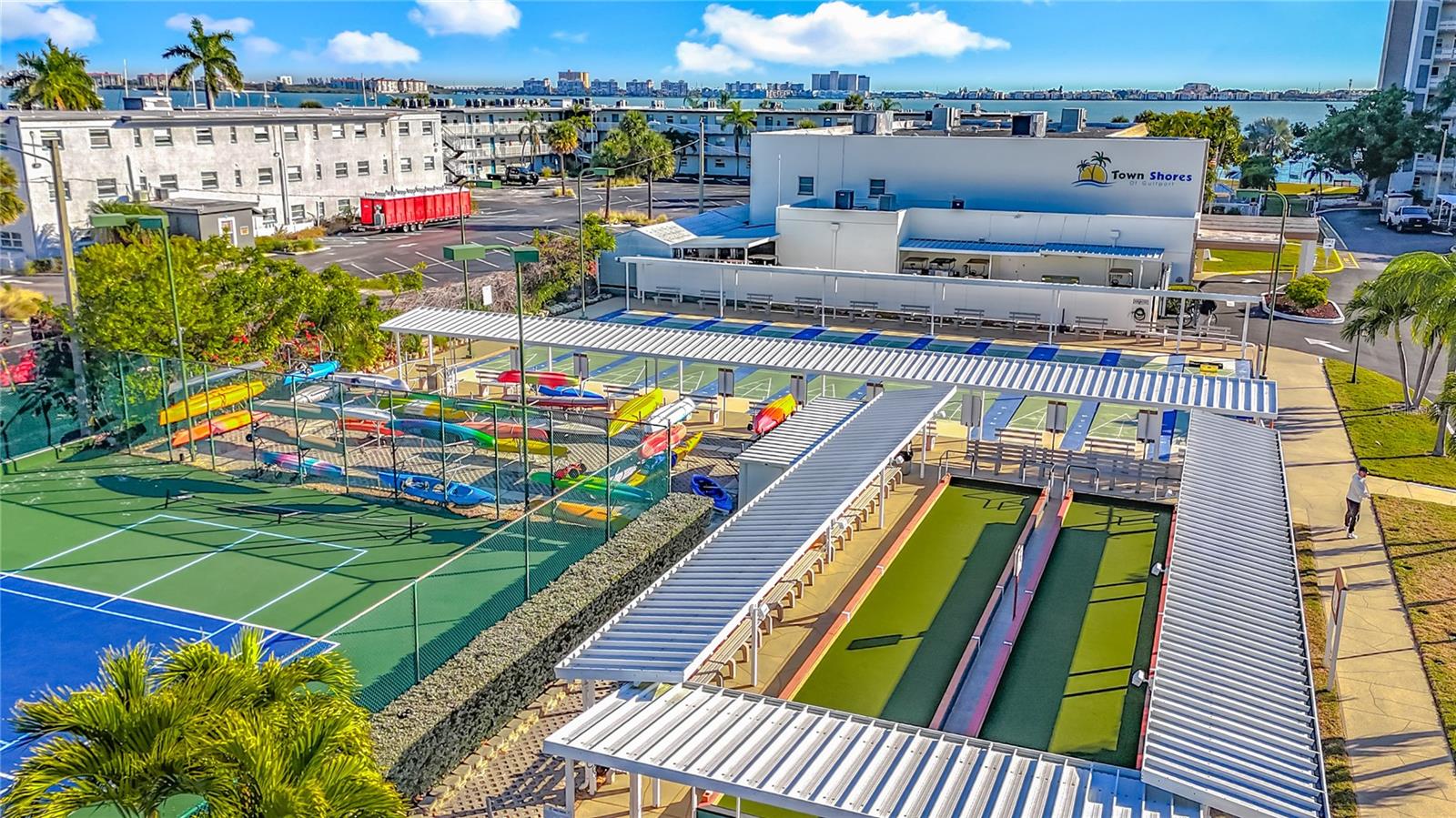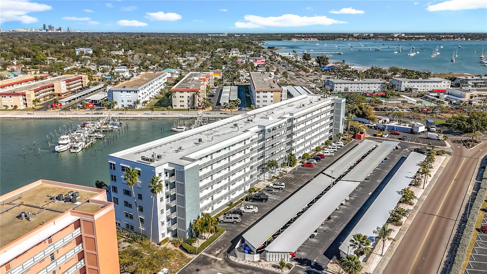 GORGEOUS WATERFRONT VIEWS await in this beautifully updated condo located in the popular Town Shores community of Gulfport, Florida. Offering carefree, low-maintenance living, this inviting home is ideal as a seasonal retreat or a comfortable year-round residence. From the moment you enter through the new front door with its fanlight window, your attention is drawn straight to the spectacular views of the Town Shores marina and the Intracoastal Waterway. Whether enjoying your morning coffee or unwinding at the end of the day, this peaceful setting invites you to slow down and enjoy the Florida lifestyle — dolphins, boats, and sparkling water included. The stylishly updated kitchen features gray wood cabinetry, quartz countertops, and stainless steel appliances including a gas range, refrigerator, microwave, and new dishwasher. The open dining and living areas flow naturally into a bright “zen den” framed by a full picture window overlooking the marina cove and Intracoastal — the perfect spot to relax while taking in the view. Two generously sized bedrooms and two updated baths provide comfort and flexibility for visiting family or friends. The guest bedroom easily accommodates a queen-size bed and includes a large built-in wall closet. A spacious owner’s suite features tranquil water views, room for a king-size bed, a walk-in closet, and a completely updated en-suite bath. With approximately 1,250 square feet, this well-proportioned condo offers excellent space and storage — a rare find for waterfront living. Assigned covered parking is included, and updated multi-pane windows throughout provide quiet, comfort, and energy efficiency, making it easy to lock up and travel. Located on the second floor, this unit offers added peace of mind for waterfront living. The building is equipped with elevators, providing easy access to the residence. Town Shores is a well-managed waterfront community known for its active social lifestyle and outstanding amenities, including four swimming pools, tennis and pickleball courts, shuffleboard, clubhouse facilities, and a full calendar of community events — ideal for seasonal residents looking to connect and enjoy their time in Florida. Located in charming Gulfport, you are just blocks from the vibrant waterfront district with its shops, restaurants, art scene, and beach area. Pass-A-Grille, the Don CeSar Resort, and South Pasadena are only minutes away, with St. Pete Beach and downtown St. Petersburg approximately 15 minutes from home. Tastefully updated waterfront condos with this level of comfort, views, and lifestyle appeal are rarely available. Whether you’re seeking a winter escape or a place to call home, this property truly delivers.