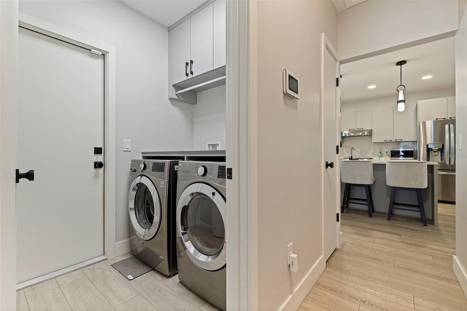 Located just minutes from the historic waterfront village of Gulfport, this contemporary residence offers designer details and enhanced outdoor living. Built in 2019 and thoughtfully upgraded since, the single-level, 1,709-square-foot home features three bedrooms, two baths and a seamless indoor-outdoor layout ideal for modern Florida living. The open-concept main living area connects to a private saltwater pool with both heating and cooling systems, a beach chair ledge and an upgraded covered and lighted pergola, enhanced further by new outdoor lighting and tropical mature landscaping added in 2025. Inside, the kitchen is equipped with stylish cabinets, an oversized island, and ample seating for guests. A reverse osmosis water purification system, electric shades and hurricane-impact doors and windows underscore the home?s functional luxury.Additional features include a newly installed air conditioning system and pool pump (2025), gutters (2024), and a spacious attached garage connected by an interior laundry room. The property remained unaffected by past storms and is located in flood zone X. Positioned between the white sands of the Gulf beaches and vibrant downtown St. Petersburg, this Gulfport offering merges privacy, design and proximity to local attractions.