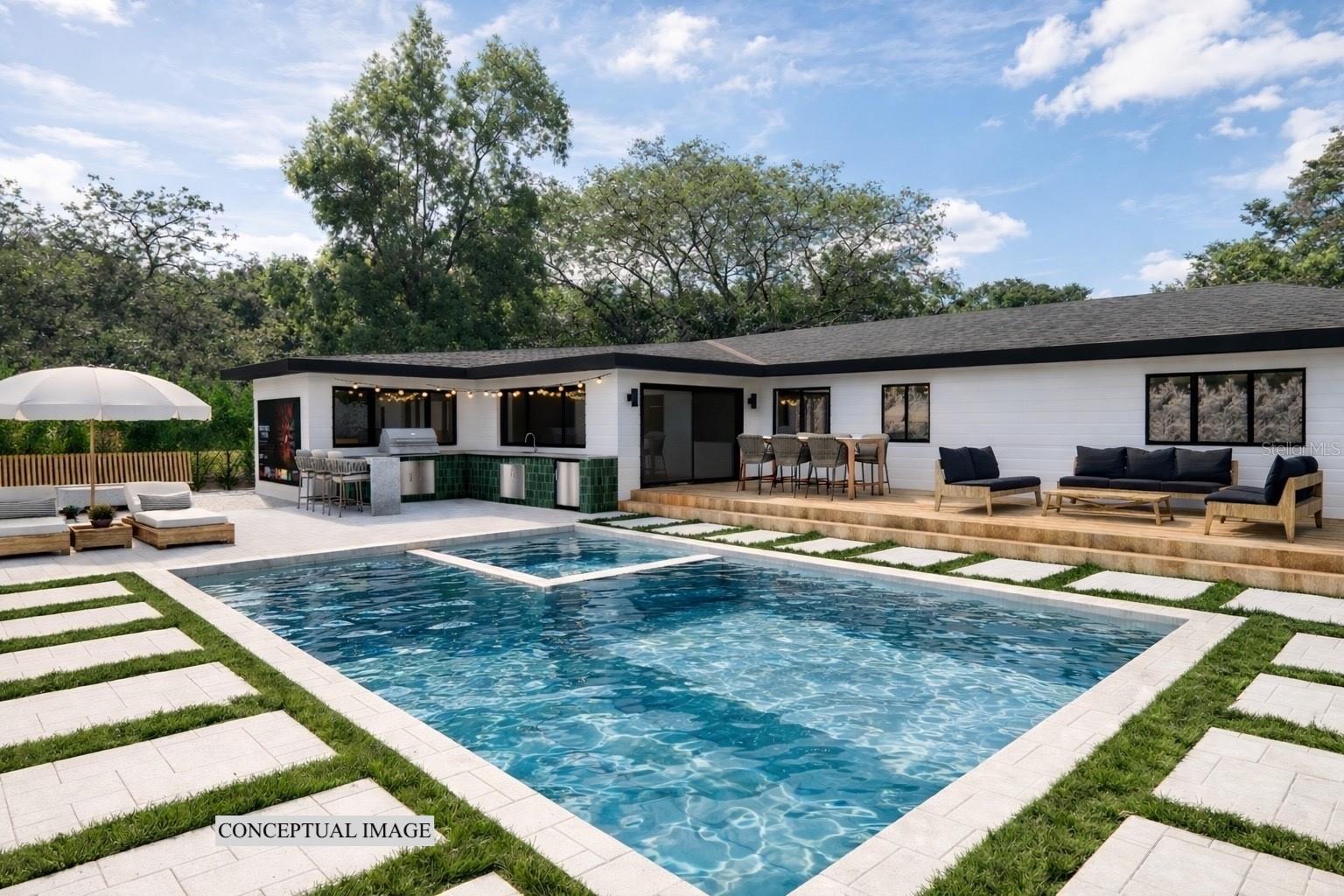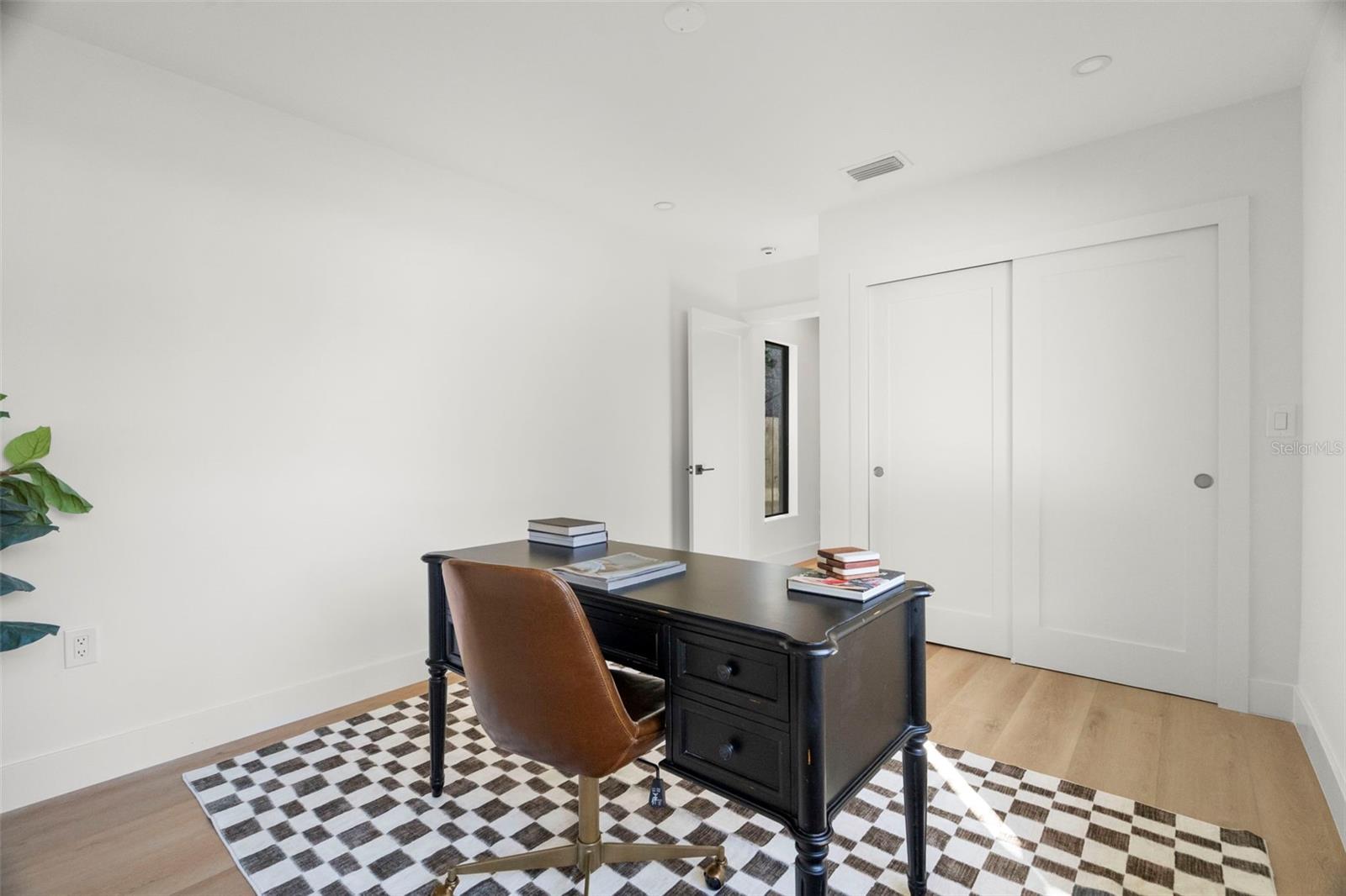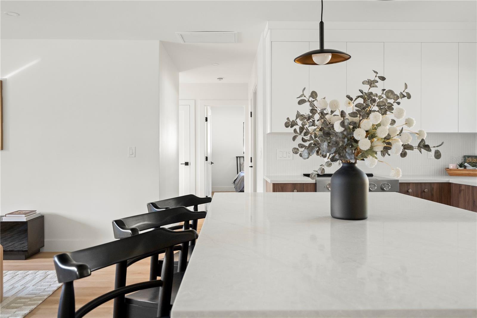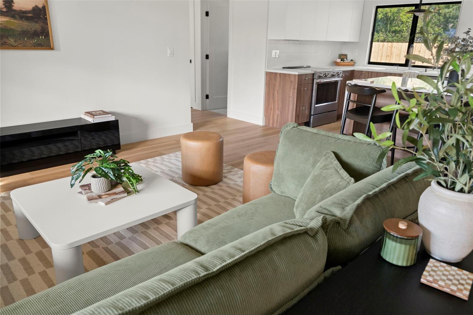 Welcome to this beautifully reimagined home in the heart of Gulfport’s coveted Marina District. Thoughtfully renovated inside and out, this 3-bedroom, 2-bath residence blends timeless mid-century modern design with today’s expectations for comfort, efficiency, and functionality. Clean lines, intentional flow, and abundant natural light define the interior. The open-concept kitchen anchors the home, seamlessly connecting the living and dining spaces for effortless everyday living and entertaining. A built-in pantry surrounds the refrigerator, maximizing storage while maintaining a sleek, integrated look. Top-of-the-line stainless KitchenAid appliances, level-8 quartz countertops, walnut lower cabinetry, and matte white uppers create a warm, modern palette that feels both elevated and inviting. The dining area comfortably accommodates an 80” table and six chairs, while expansive aluminum impact-rated windows flood the home with light from every angle. From the kitchen and dining room, glass doors open to a 30-foot deck overlooking a spacious backyard—ideal for indoor-outdoor living and offering plenty of room for a future pool. A covered front porch with a tongue-and-groove cedar ceiling adds a warm architectural touch at the home’s entry. The home features a fully built-out laundry room with generous counter space, a slop sink, and new Samsung washer and dryer. A large picture window brings in backyard views, making even daily chores feel bright and pleasant. The third bedroom doubles beautifully as a home office, overlooking the backyard and future pool area. The primary suite is a true retreat, featuring a custom built-in closet with automatic lighting designed to sit flush within the wall for maximum functionality. The en-suite bath offers dual vanities, a zero-entry shower with dual shower heads and wands, and an LED-lit niche—spa-like and thoughtfully executed. High-end details throughout the home—including push-to-open cabinetry, fluted glass accents, and level-5 drywall—reflect the exceptional care and craftsmanship that went into this renovation. Beyond the aesthetics, the systems have been comprehensively updated. Though the home has never flooded and is not in a flood zone, it was fully re-wired and re-plumbed. Additional upgrades include a new electrical panel, a brand-new architectural shingle roof plus TPO flat roof, a 2019 water heater with new conduit connections, and an HVAC system originally installed in 2016 with all major components—motor, ductwork, supplies, returns, and thermostat—replaced during renovation. New blown-in R-38 attic insulation enhances comfort and efficiency year-round. Outside, the transformation continues with new sod, podocarpus hedges, fresh fencing, and newly designed plant beds, creating privacy and curb appeal that perfectly complement the home’s modern character. This is a rare opportunity to own a truly turn-key, design-forward home in one of Gulfport’s most desirable neighborhoods—where style, function, and peace of mind come together effortlessly.