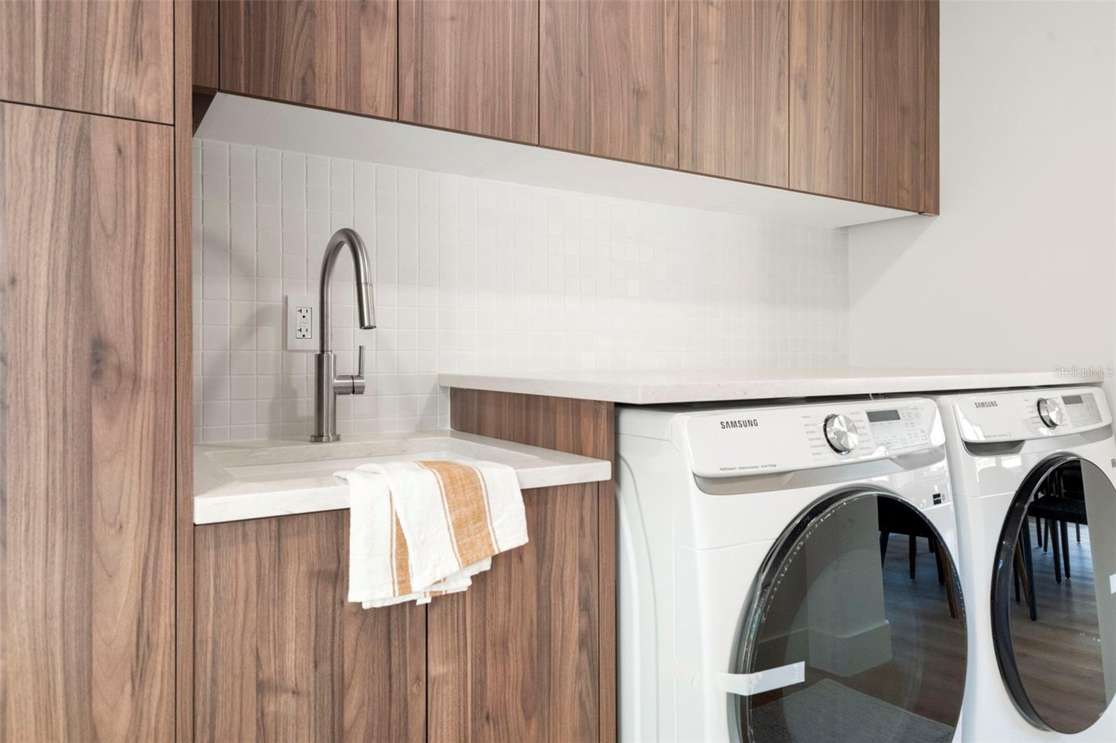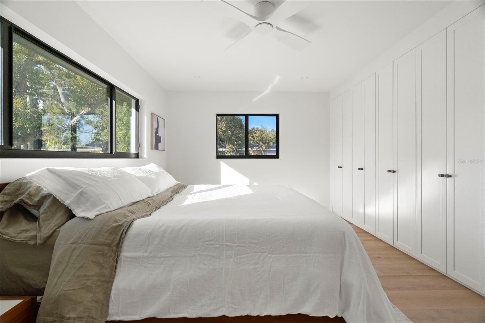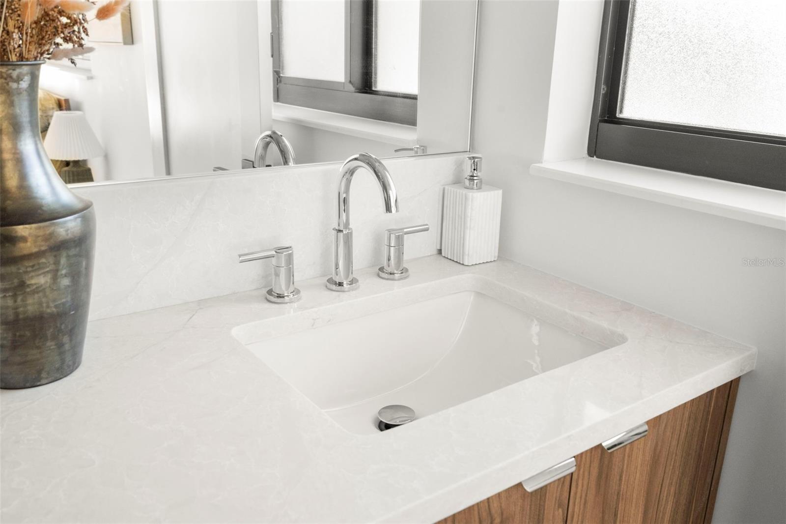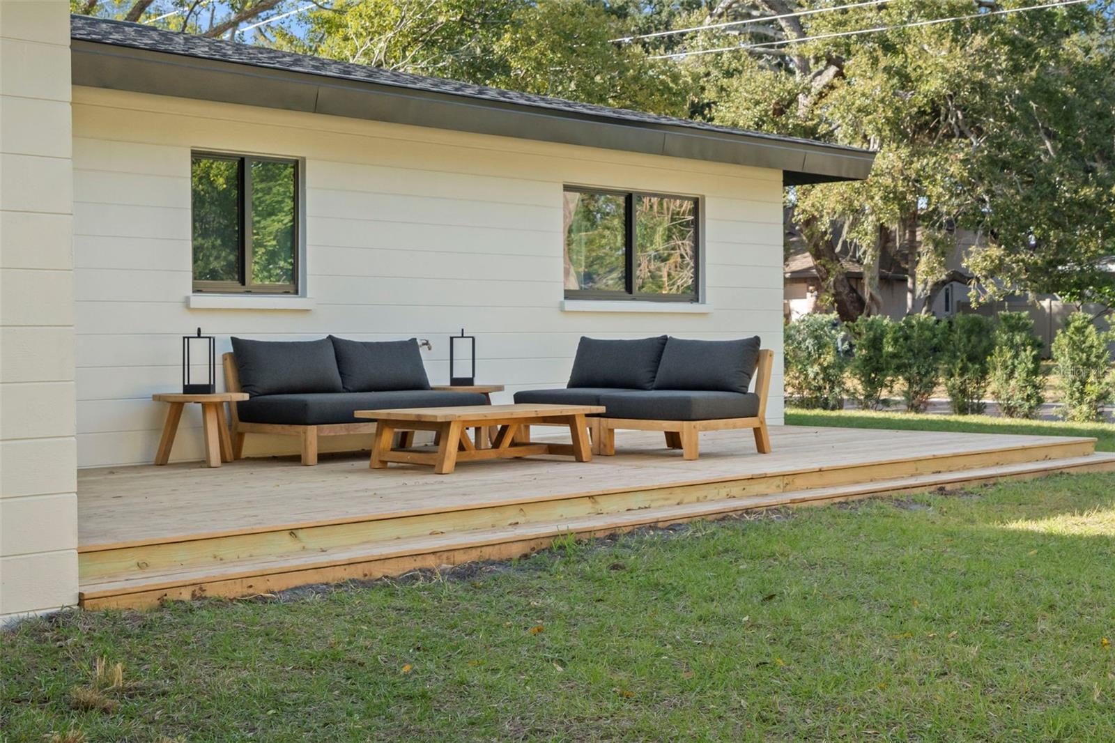 Welcome to this beautifully reimagined home in the heart of Gulfport’s coveted Marina District. Thoughtfully renovated inside and out, this 3-bedroom, 2-bath residence blends timeless mid-century modern design with today’s expectations for comfort, efficiency, and functionality. Clean lines, intentional flow, and abundant natural light define the interior. The open-concept kitchen anchors the home, seamlessly connecting the living and dining spaces for effortless everyday living and entertaining. A built-in pantry surrounds the refrigerator, maximizing storage while maintaining a sleek, integrated look. Top-of-the-line stainless KitchenAid appliances, level-8 quartz countertops, walnut lower cabinetry, and matte white uppers create a warm, modern palette that feels both elevated and inviting. The dining area comfortably accommodates an 80” table and six chairs, while expansive aluminum impact-rated windows flood the home with light from every angle. From the kitchen and dining room, glass doors open to a 30-foot deck overlooking a spacious backyard—ideal for indoor-outdoor living and offering plenty of room for a future pool. A covered front porch with a tongue-and-groove cedar ceiling adds a warm architectural touch at the home’s entry. The home features a fully built-out laundry room with generous counter space, a slop sink, and new Samsung washer and dryer. A large picture window brings in backyard views, making even daily chores feel bright and pleasant. The third bedroom doubles beautifully as a home office, overlooking the backyard and future pool area. The primary suite is a true retreat, featuring a custom built-in closet with automatic lighting designed to sit flush within the wall for maximum functionality. The en-suite bath offers dual vanities, a zero-entry shower with dual shower heads and wands, and an LED-lit niche—spa-like and thoughtfully executed. High-end details throughout the home—including push-to-open cabinetry, fluted glass accents, and level-5 drywall—reflect the exceptional care and craftsmanship that went into this renovation. Beyond the aesthetics, the systems have been comprehensively updated. Though the home has never flooded and is not in a flood zone, it was fully re-wired and re-plumbed. Additional upgrades include a new electrical panel, a brand-new architectural shingle roof plus TPO flat roof, a 2019 water heater with new conduit connections, and an HVAC system originally installed in 2016 with all major components—motor, ductwork, supplies, returns, and thermostat—replaced during renovation. New blown-in R-38 attic insulation enhances comfort and efficiency year-round. Outside, the transformation continues with new sod, podocarpus hedges, fresh fencing, and newly designed plant beds, creating privacy and curb appeal that perfectly complement the home’s modern character. This is a rare opportunity to own a truly turn-key, design-forward home in one of Gulfport’s most desirable neighborhoods—where style, function, and peace of mind come together effortlessly.