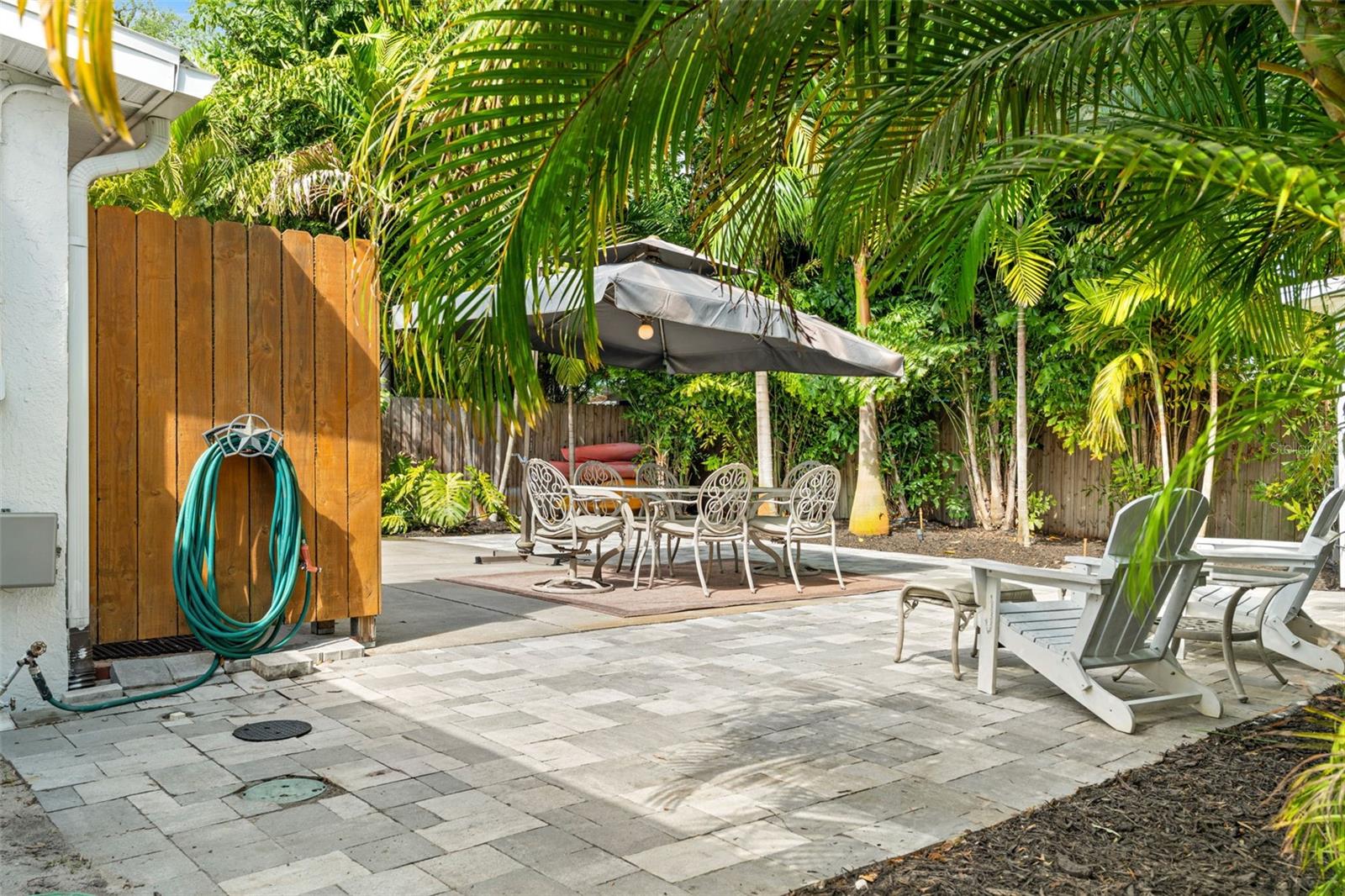 In Gulfport, mornings start with bike rides to coffee, evenings unfold by the water, and spontaneous plans rarely require a car. Local markets, art walks, live music, and waterfront sunsets are part of the weekly routine — and this home lets you step right into that rhythm. Just moments from the waterfront, this well-maintained block cottage with coastal character offers a comfortable, low-maintenance setting designed for everyday living and easy enjoyment of the Gulfport lifestyle. Inside, the home has been completely renovated with a cohesive, move-in-ready feel. Wood-look tile flooring runs throughout, paired with an updated kitchen and refreshed bathrooms that balance style and practicality. The open layout flows naturally from the living room through the kitchen and into the dining area with a custom built-in dining banquette, allowing the space to live larger than its footprint and function well for both daily life and casual entertaining. A split floor plan adds flexibility and privacy, with bedrooms positioned on opposite sides of the home. One bedroom features a separate exterior entrance and an adjacent flex space, making it ideal for guests, a home office, or a creative workspace. An interior laundry room adds everyday convenience. Out back, a private tropical setting extends the living space outdoors. Mature landscaping with uplighting and an expansive paver patio create a low-maintenance environment designed for relaxing and entertaining. Rinse off in the outdoor shower after a day on the water, then enjoy plenty of space for hosting friends or setting up a game of corn hole while taking in Gulfport’s laid-back, outdoor-friendly lifestyle. A detached backyard shed with electrical adds even more versatility, offering space for storage, a workshop, or a flexible area that could serve as an art studio, hobby room, or creative retreat. Recent and meaningful improvements include a newer roof (2021), updated electrical panel (2021), updated sewer line (2023), front porch and walkway pavers, sod, gutters with gutter guards, custom hurricane fabric panels for added peace of mind, and fully paid-off, owned solar panels (2021) that help keep electric costs low (averaging approximately $30–$50 per month). A private driveway provides convenient off-street parking. HVAC and electric tankless water heater are approximately 6-7 years old (2019/2020). Conveniently located near Beach Boulevard, the Gulfport Marina and Yacht Club, waterfront parks, and just down the block from Skyway trail and Clam Bayou Nature Park, where you can launch a kayak into the mangroves and spend time on the water — with manatees and dolphins often seen throughout Boca Ciega Bay. The area also offers easy access to local restaurants, coffee shops, breweries, markets, and community events. Well suited as a primary residence or second home, this property captures the appeal of Gulfport living — walkable, water-oriented, and centered around comfort, community, and ease. No flooding or damage from 2024 hurricanes, or ever to seller's knowledge. Flood insurance quote for under $2,500/year available upon request. Ask about our preferred lender incentive!