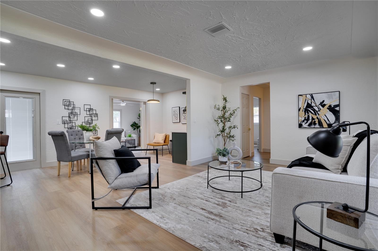 Experience modern living in this beautifully updated 3-bedroom, 2-bathroom, 1-car garage single-family home located in artsy Gulfport, Florida! Featuring LVP flooring throughout, this home showcases a stylish kitchen complete with stainless steel appliances, recessed lighting, contemporary cabinetry, stone countertops, and a peninsula with bar stool seating, along with a dedicated bar area just off the kitchen featuring a wine fridge, perfect for entertaining! The kitchen opens seamlessly to the dining and living areas for an ideal open-concept layout. A versatile bonus room provides additional space for a family room, home office, or play area, while the primary suite offers a private retreat with an en-suite bathroom highlighted by a stunning tiled walk-in shower. Situated on an oversized 0.19-acre lot, the property boasts a large fenced backyard perfect for entertaining or relaxing, all in a central location close to parks, beaches, shopping, dining, entertainment, and downtown St. Pete. Don’t miss your opportunity to own this move-in ready home, schedule your private showing today!