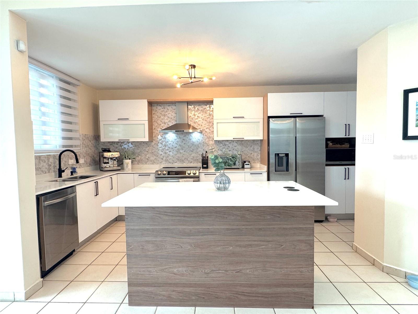 Beautiful single-story home in Veredas, Gurabo featuring a bright open-concept layout and a renovated kitchen with quartz countertops, sleek cabinetry, stainless-steel appliances, and a spacious center island ideal for entertaining and everyday living. Enjoy a covered terrace and private yard for outdoor relaxation. Energy-conscious upgrades include a 20-panel solar system and a Tesla Battery (Paid-off solar system conveys with the property) a 500-gallon cistern, and 5 A/C units for comfort throughout. Veredas is a well-established community offering resort-style amenities including a swimming pool, fitness center, tennis courts, recreational courts, and social/game areas, all within a convenient location with easy access to major roads, shopping, dining, and everyday services in Gurabo/Caguas.
